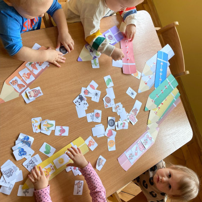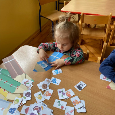 Zdjęcie przedstawia dzieci podczas jesiennych zabaw w żłobku