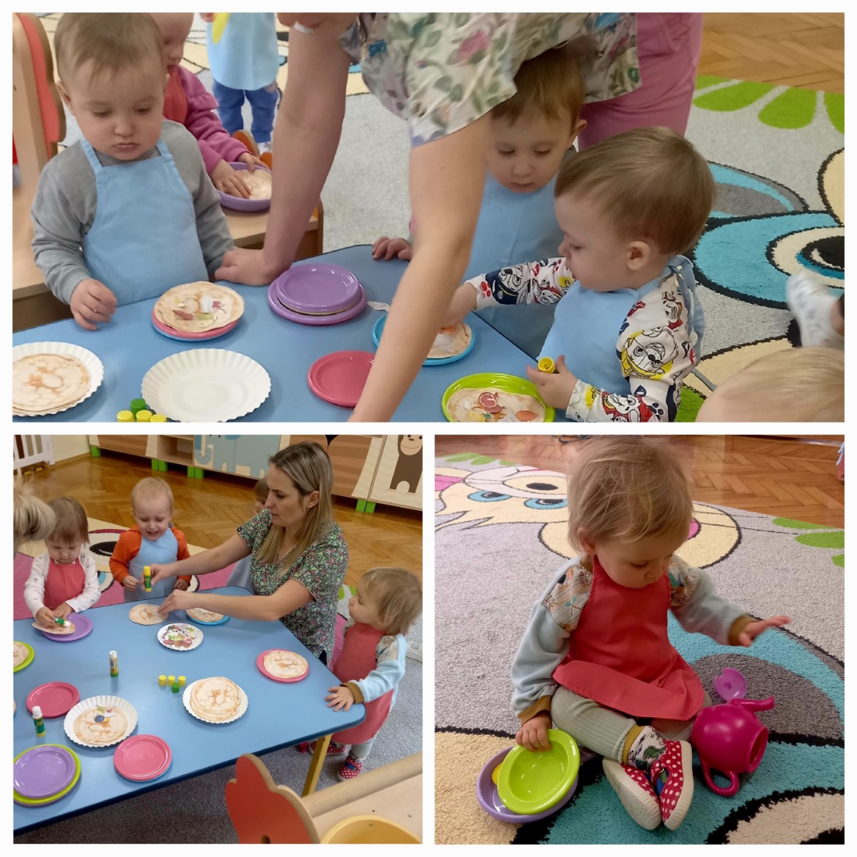 Zdjęcia przedstawiają dzieci podczas zajęć z okazji ,,Dnia naleśnika"