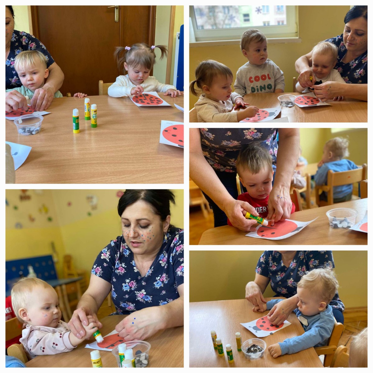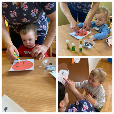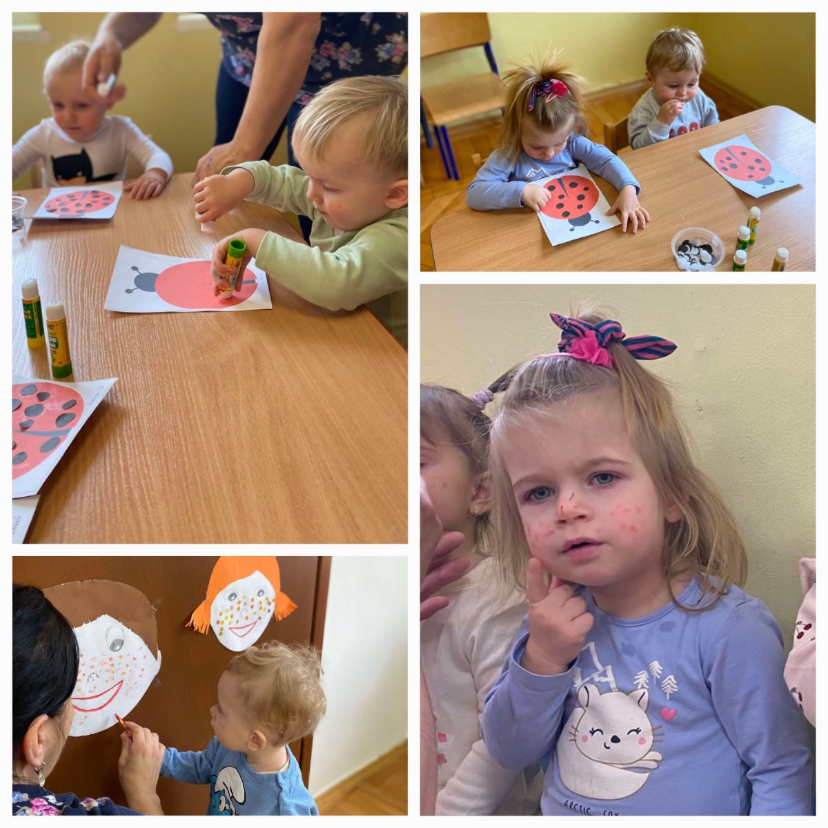 Dowiedziały się, że piegi zwane też "pocałunkami słońca" to swego rodzaju atut urody.Ozdobiły piegami dziecięce buzie, a skoro                grupa "Biedronek", to oczywiście nie mogło zabraknąć przyklejania piegów/ kropek  biedronkom.🐞😊