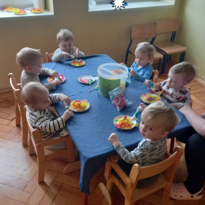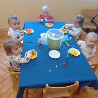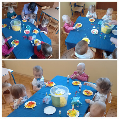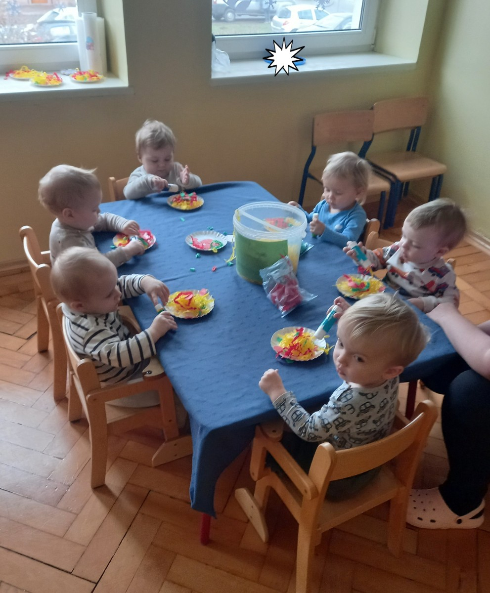 Zdjęcie przedstawia dzieci podczas zajęć w żłobku