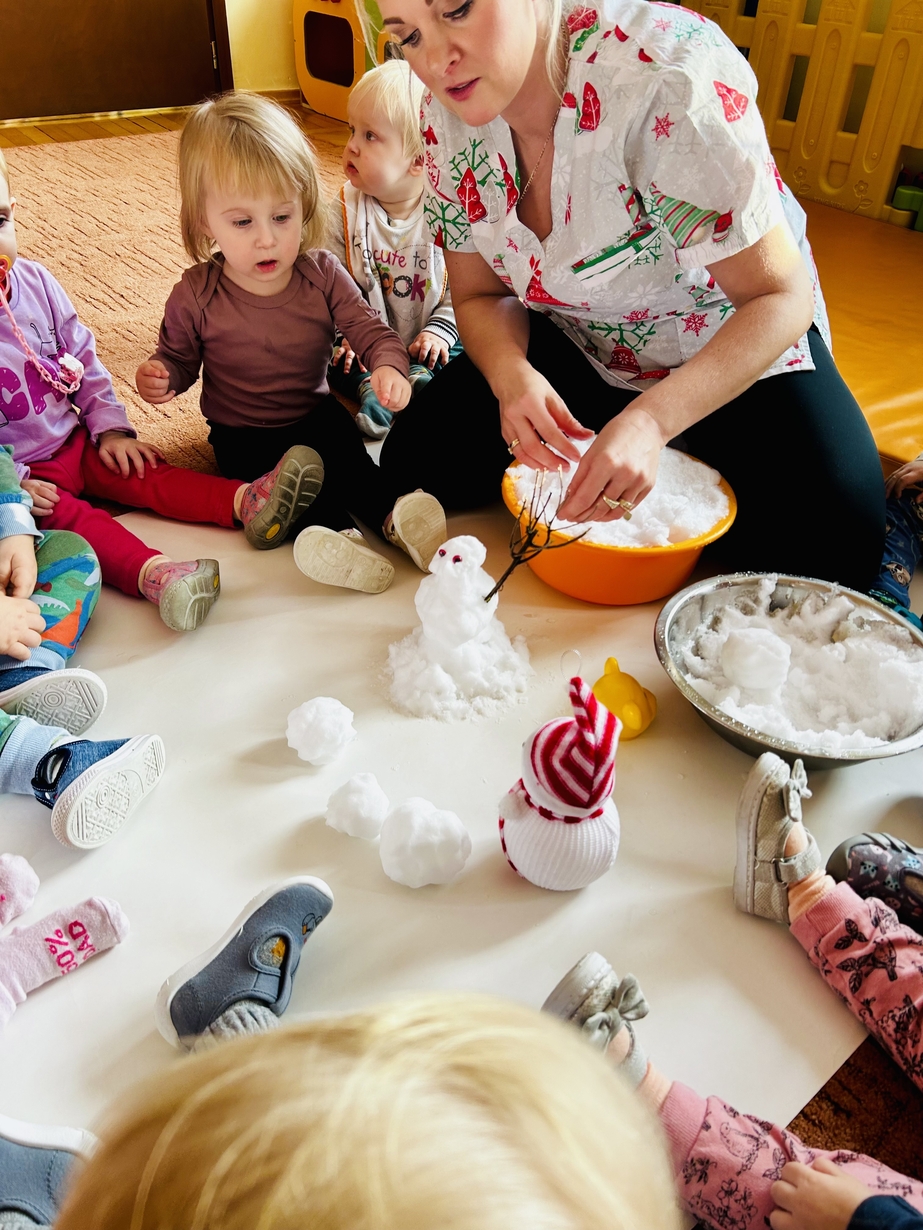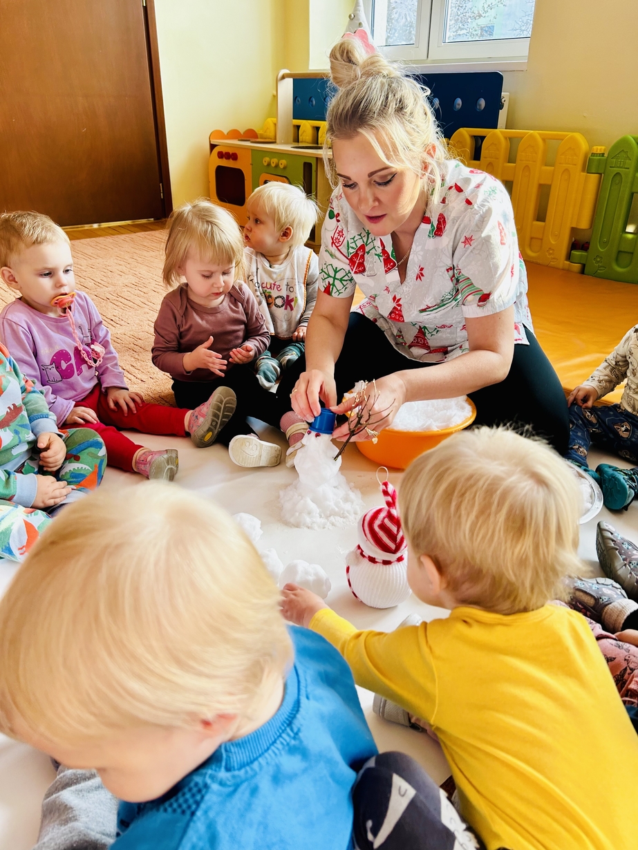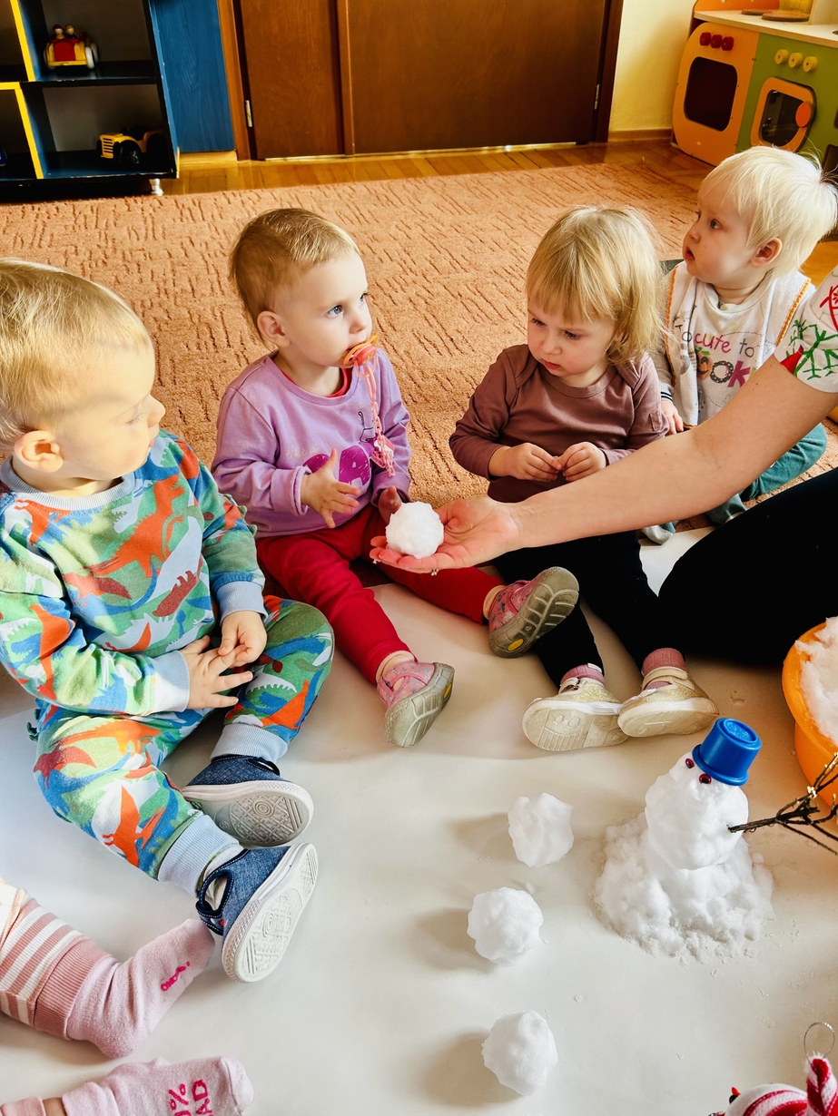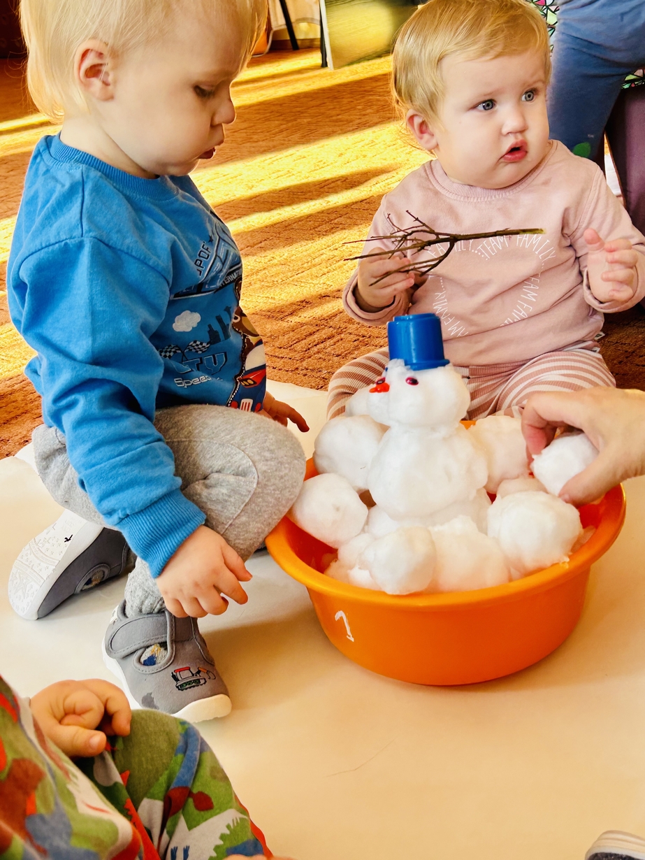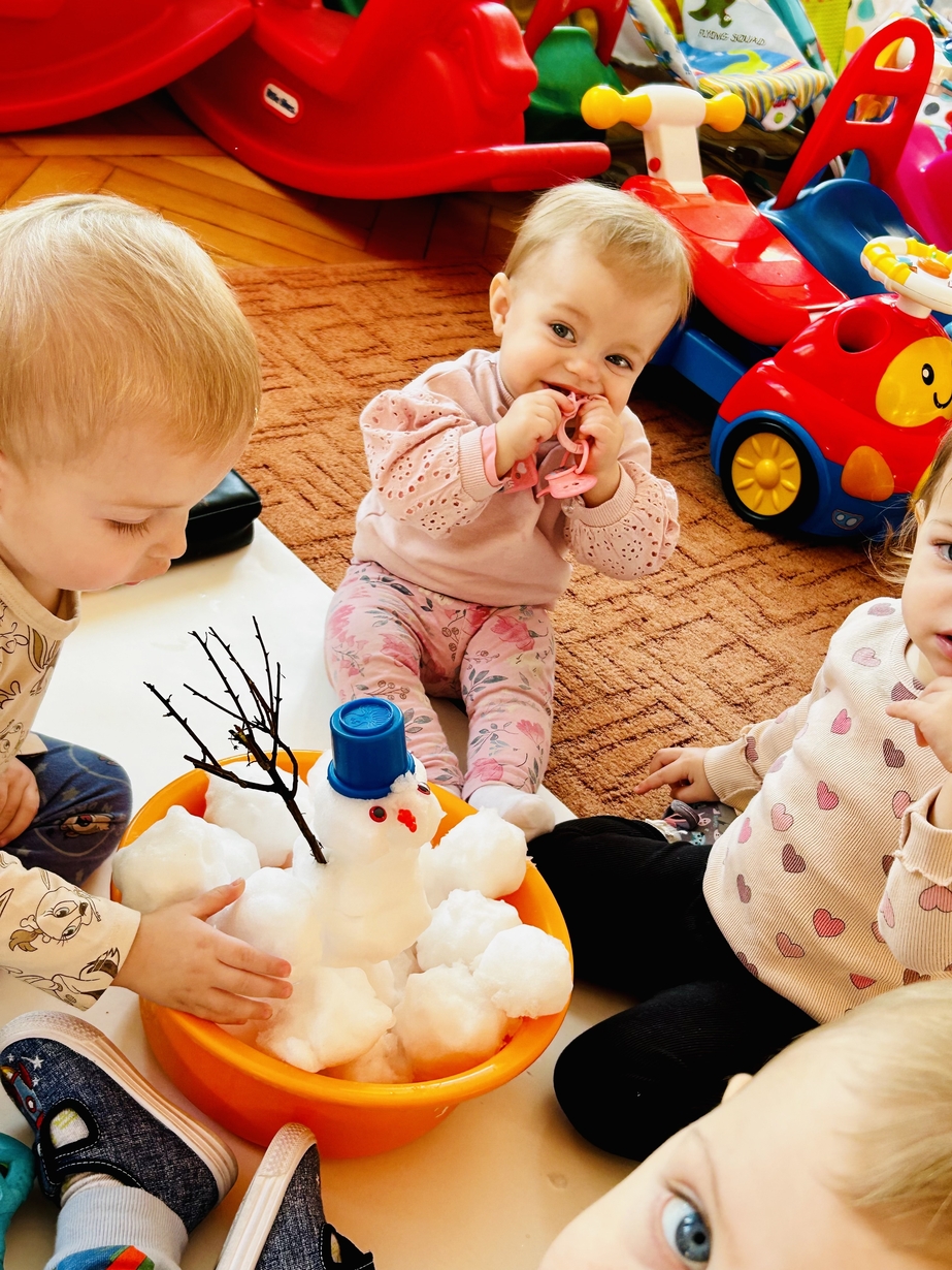 Korzystając z okazji, iż przyprószył śnieg pani wraz z dziećmi postanowiła ulepić Bałwanka. Dla dzieci zajęcia okazały się prawdziwą frajdą. Chodź Nasz Bałwanek był małej wielkości nasza wspólna radość podziwiania go była ogromna.