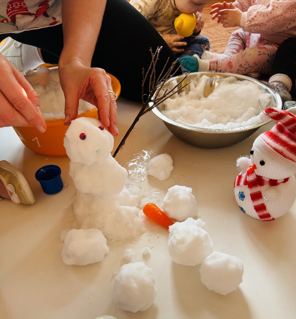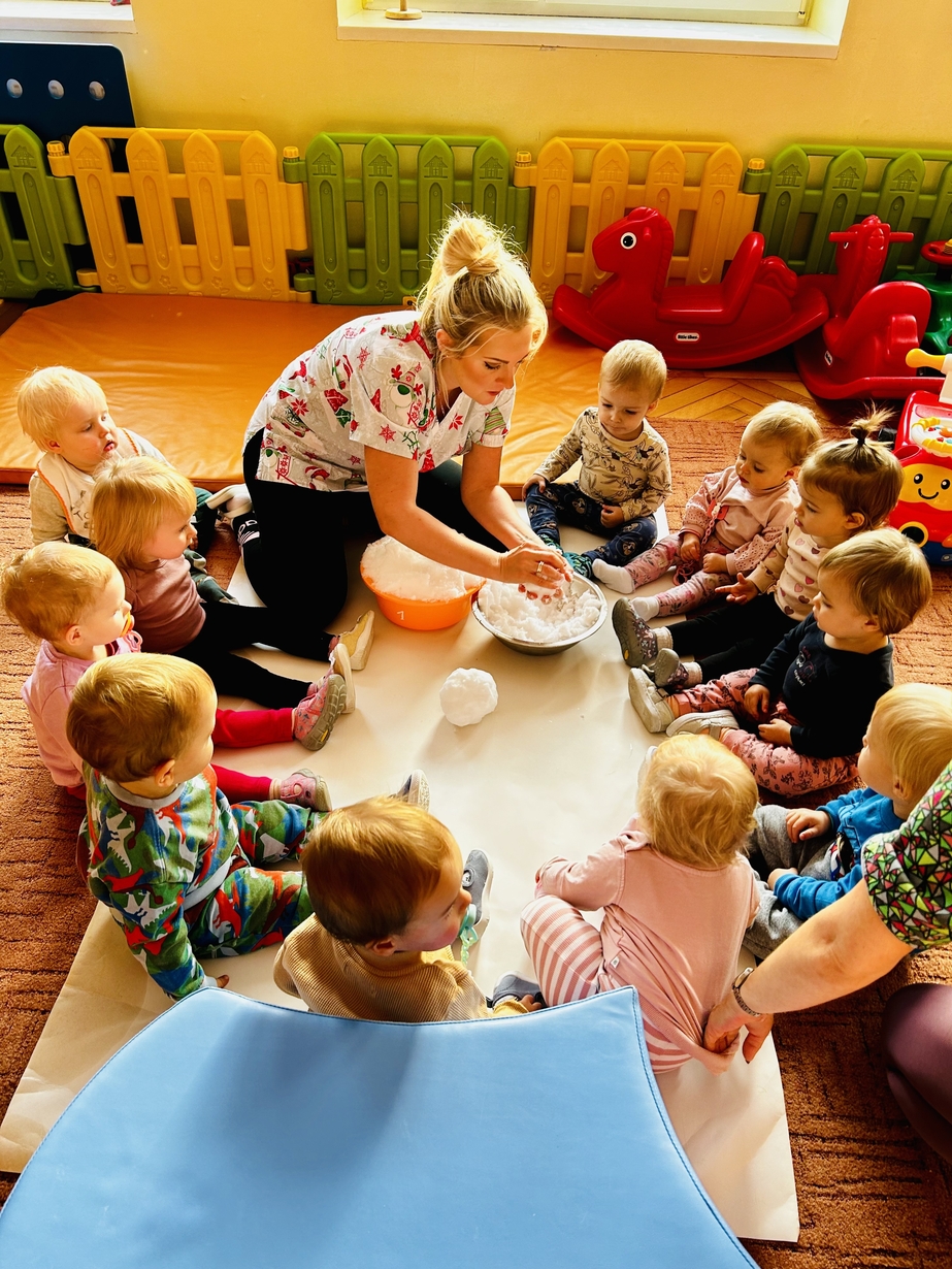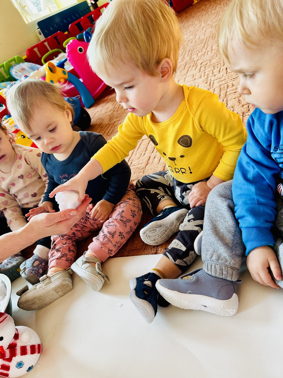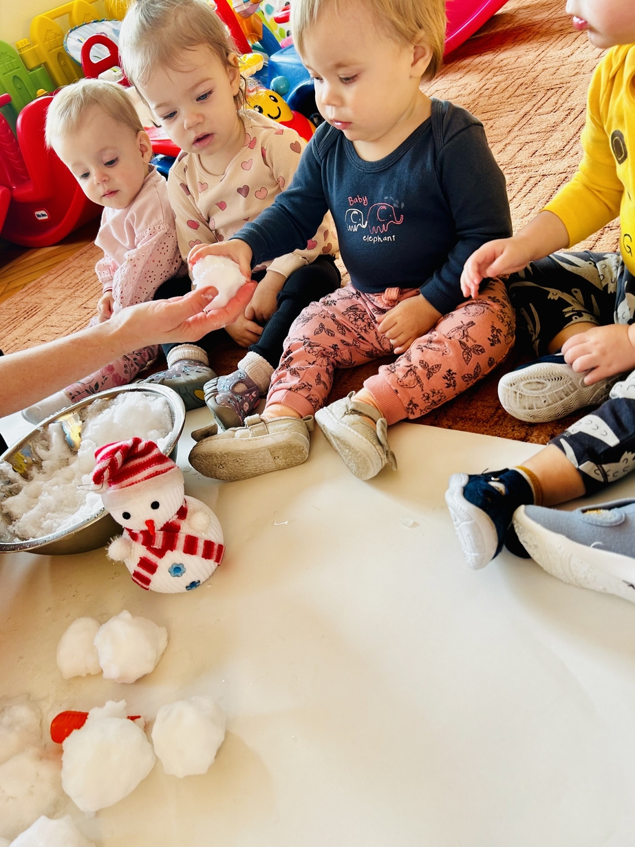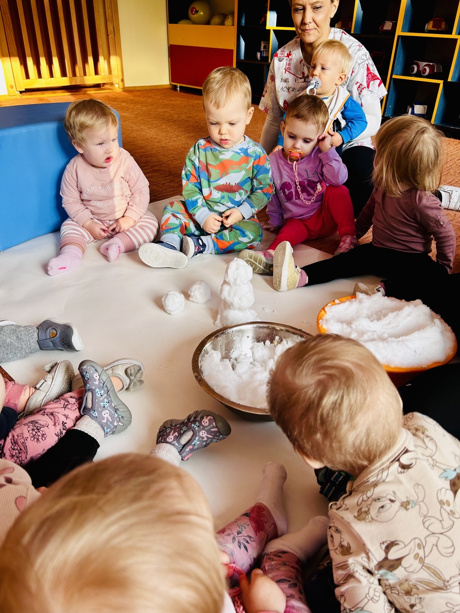 Korzystając z okazji, iż przyprószył śnieg pani wraz z dziećmi postanowiła ulepić Bałwanka. Dla dzieci zajęcia okazały się prawdziwą frajdą. Chodź Nasz Bałwanek był małej wielkości nasza wspólna radość podziwiania go była ogromna.