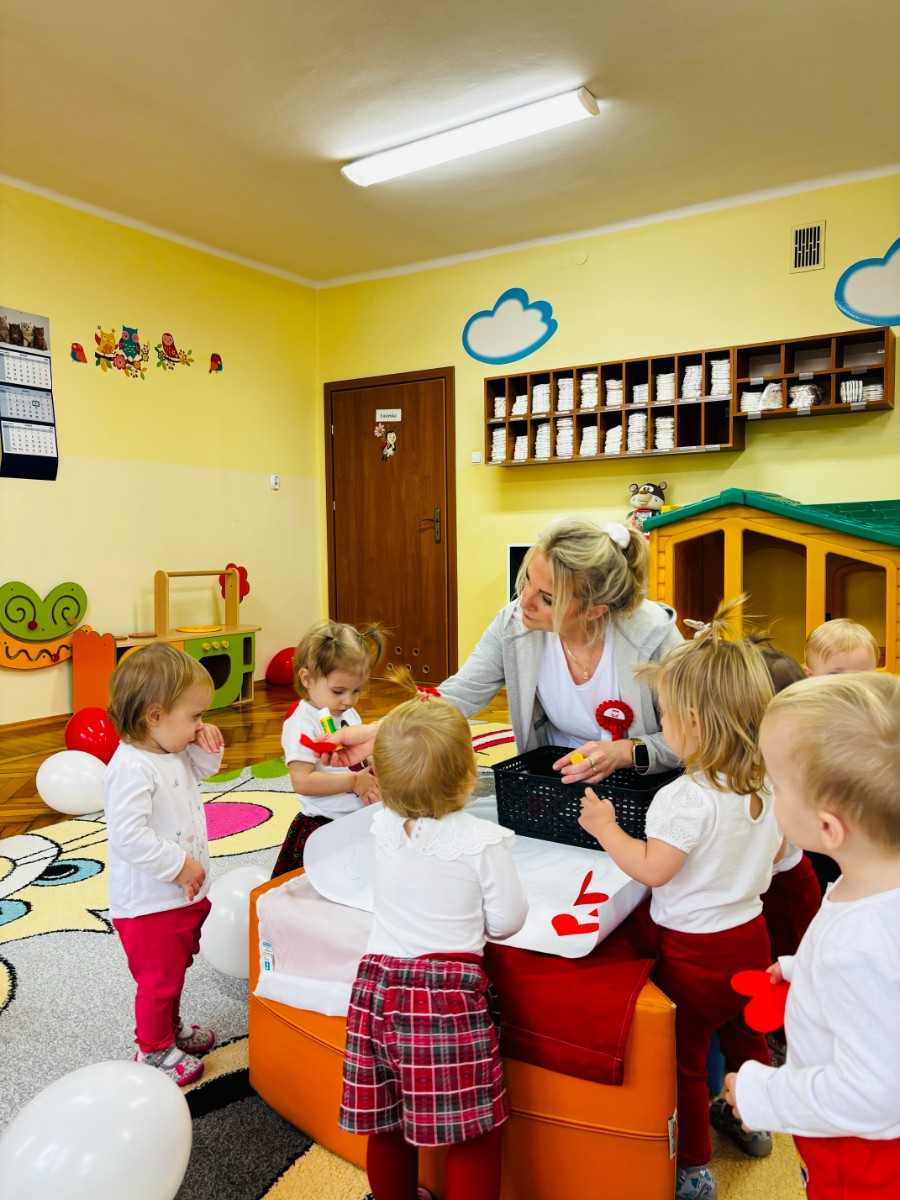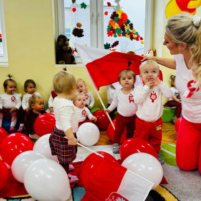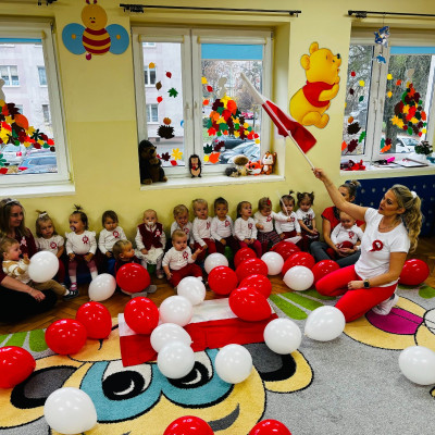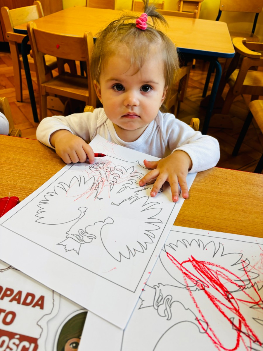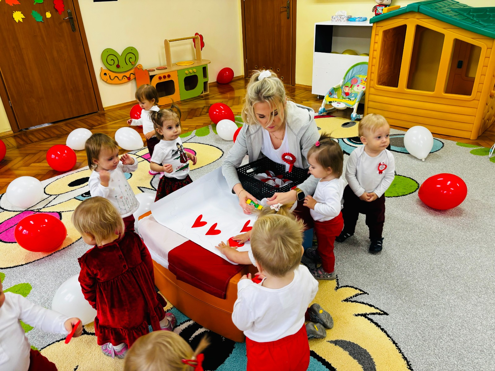 W naszym żłobeczku grupa Biedroneczki obchodziła Dzień Niepodległość . Dzieciaczki zapoznały się z symbolami narodowymi . Wspólnie wysłuchaliśmy hymnu oraz innych piosenek patriotycznych. Na koniec dzieci wykonały prace plastyczne .