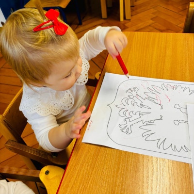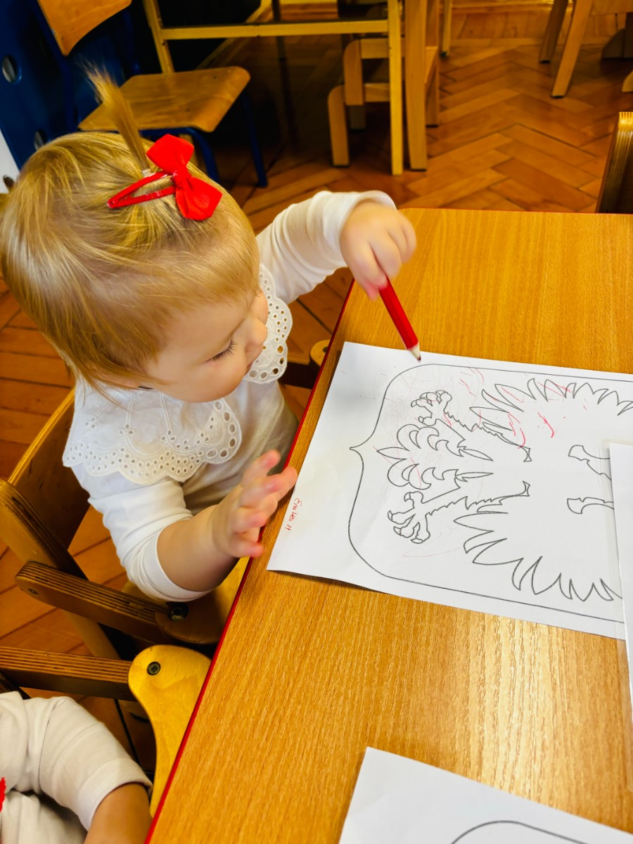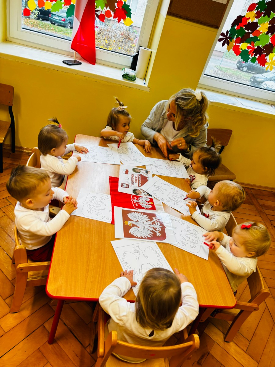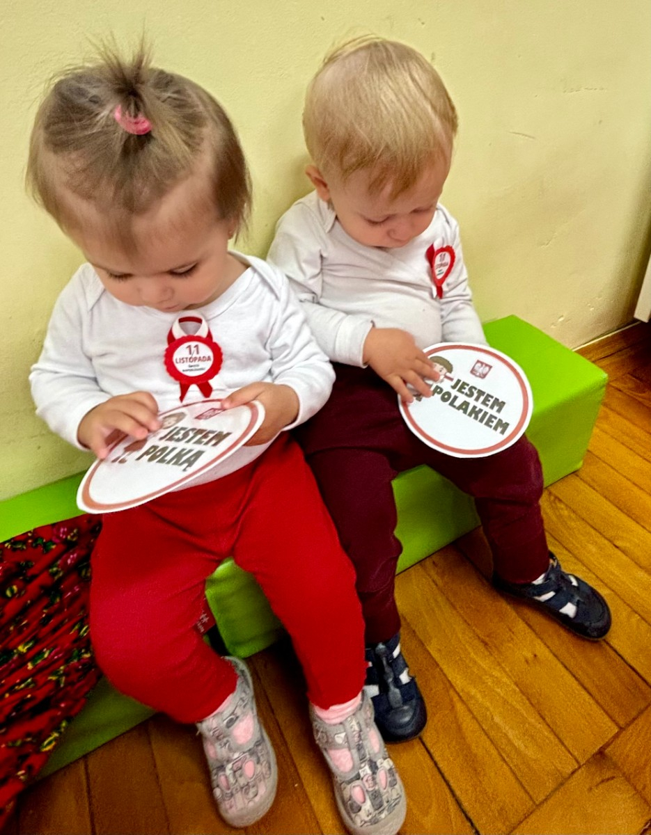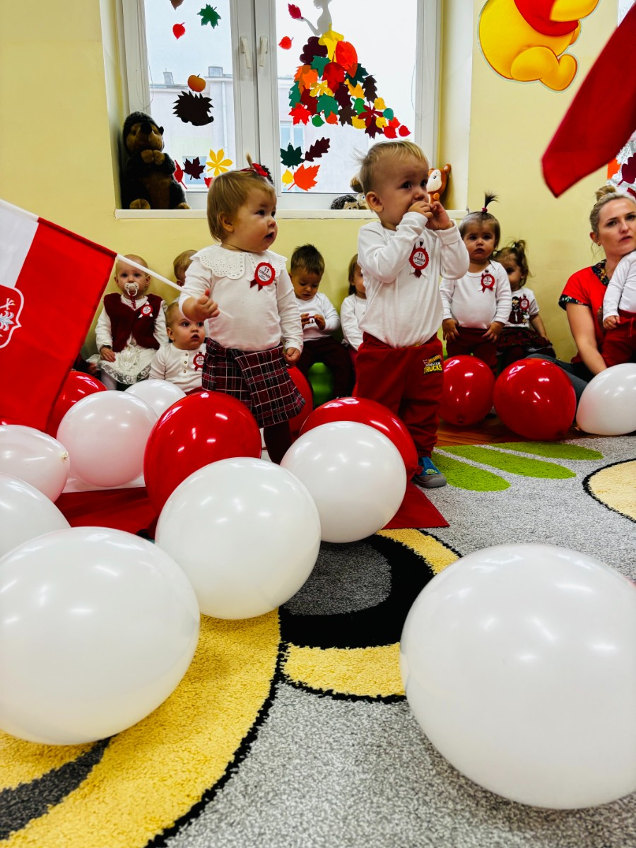 W naszym żłobeczku grupa Biedroneczki obchodziła Dzień Niepodległość . Dzieciaczki zapoznały się z symbolami narodowymi . Wspólnie wysłuchaliśmy hymnu oraz innych piosenek patriotycznych. Na koniec dzieci wykonały prace plastyczne .
