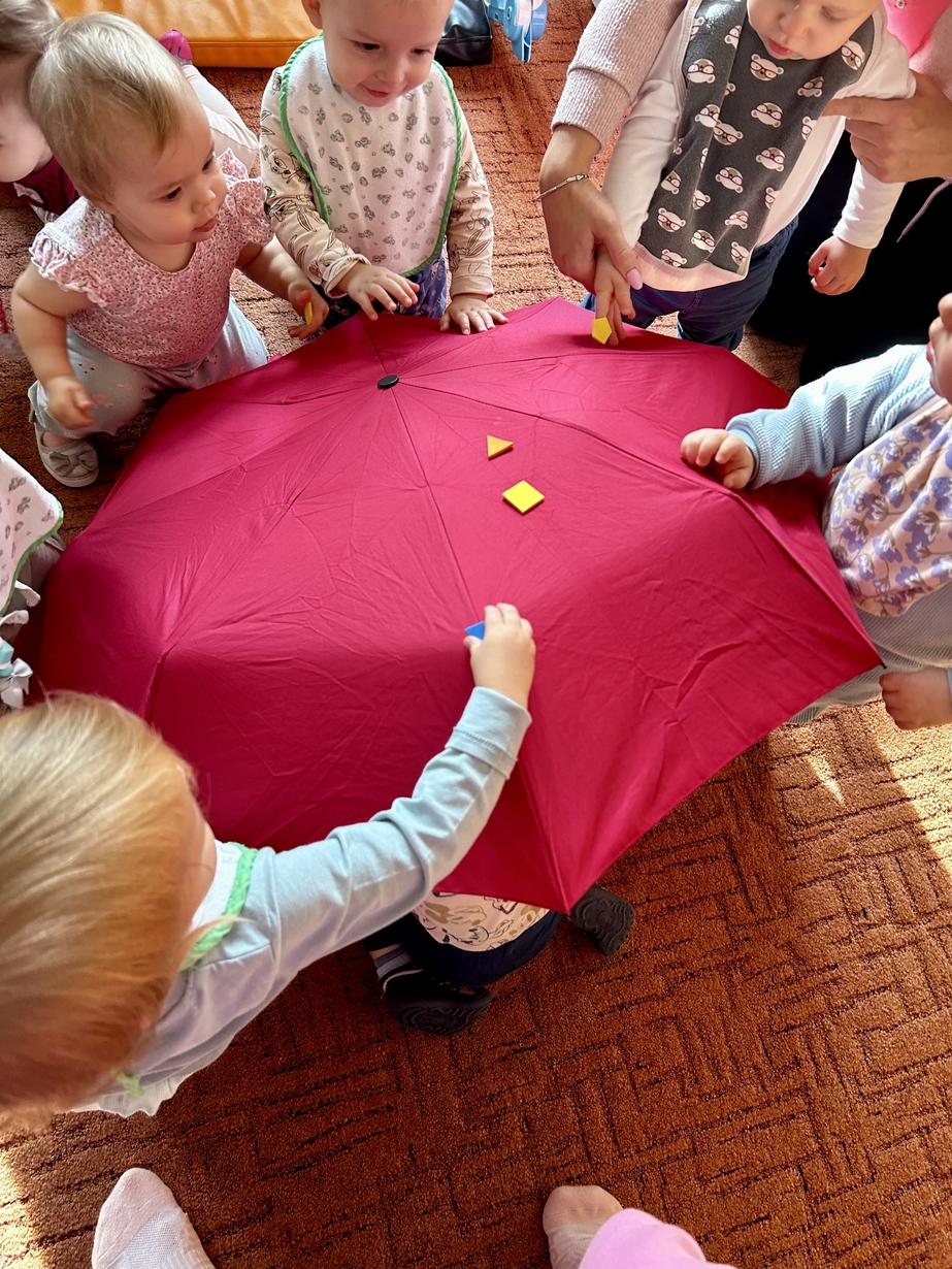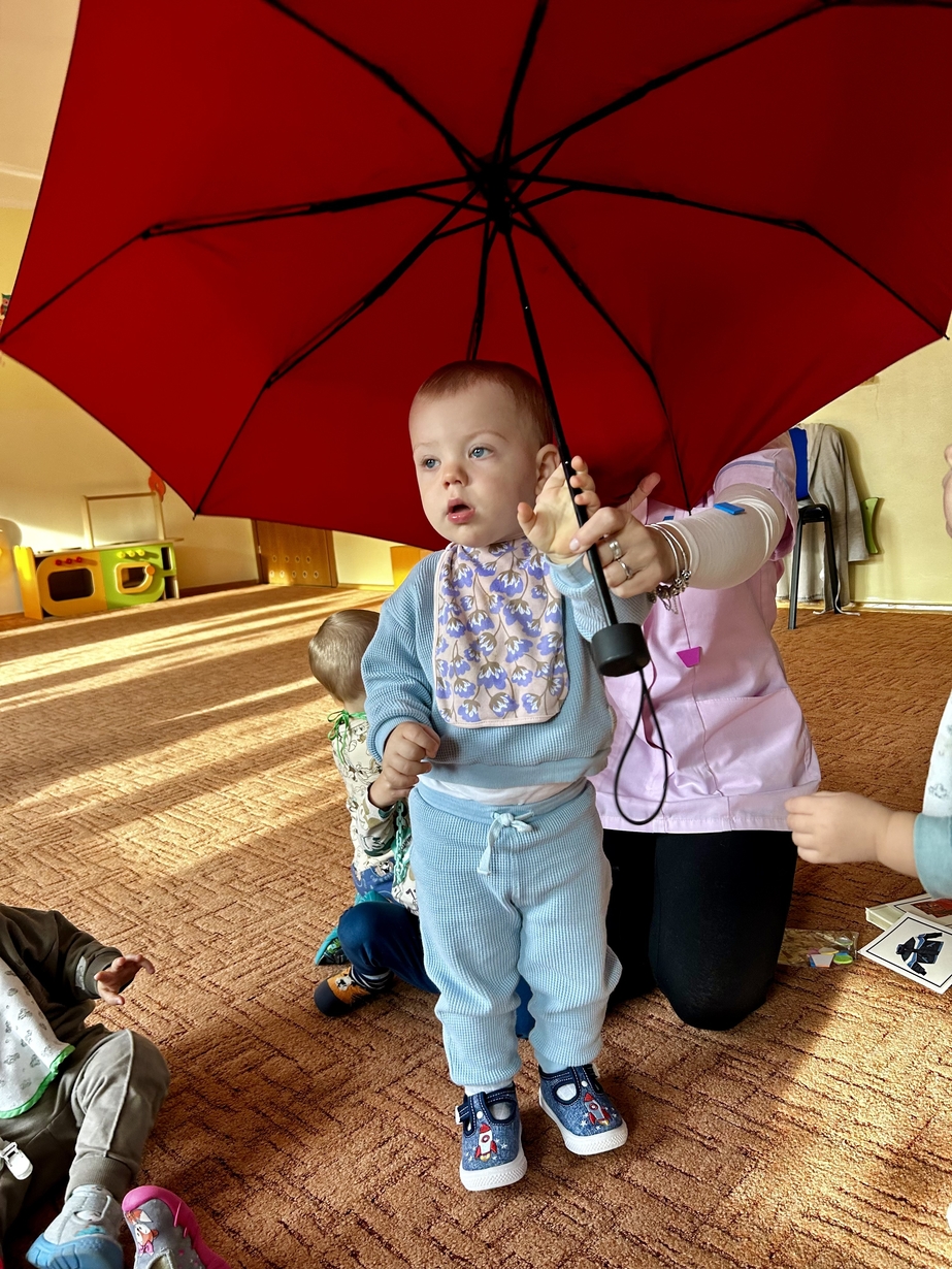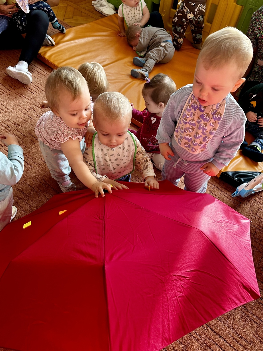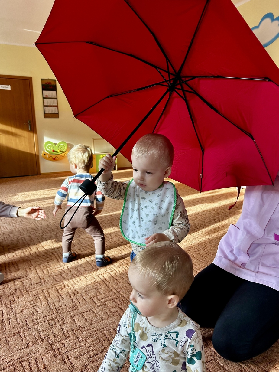 W naszym Żłobeczku odbyły się zajęcia , które zainspirowane były deszczową pogodą. Wszystkie działania skupiły się wokół parasola ?. Dzieciaczki ozdabiały parasol naklejkami co sprawiło im ogromną radość. Uczyły się również jak prawidłowo trzymać parasol. Mimo deszczowej pogody za oknem na grupie 1 było bardzo wesoło.