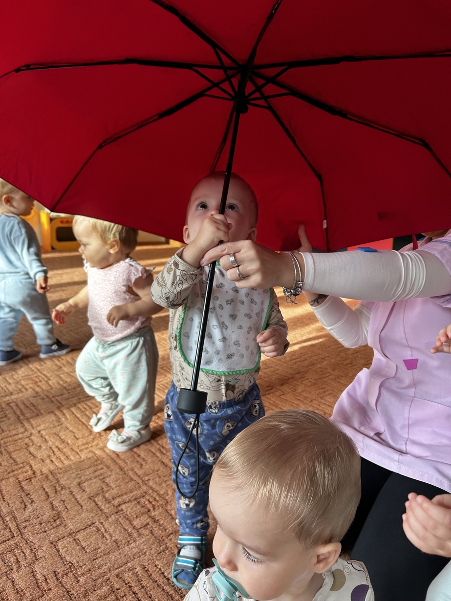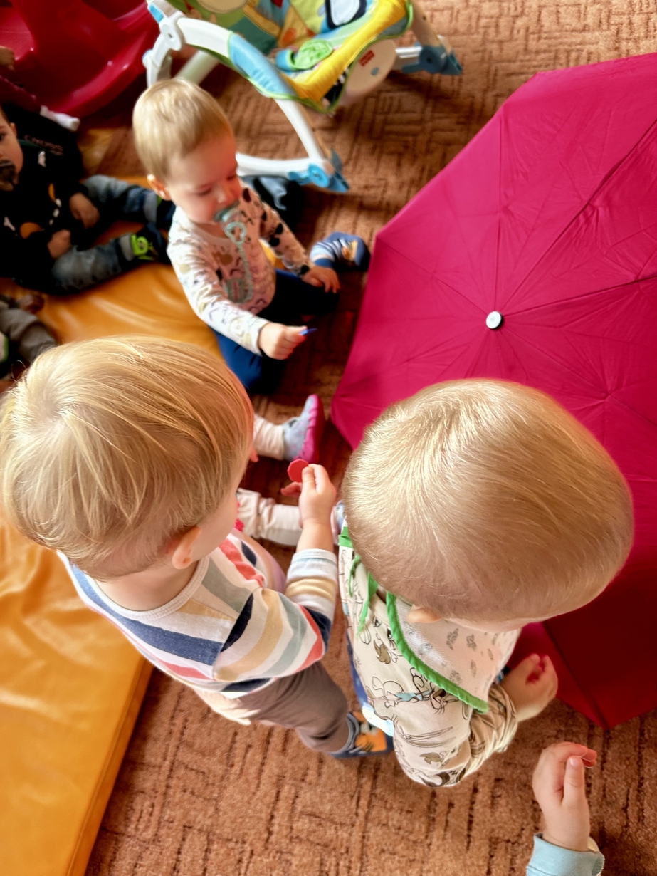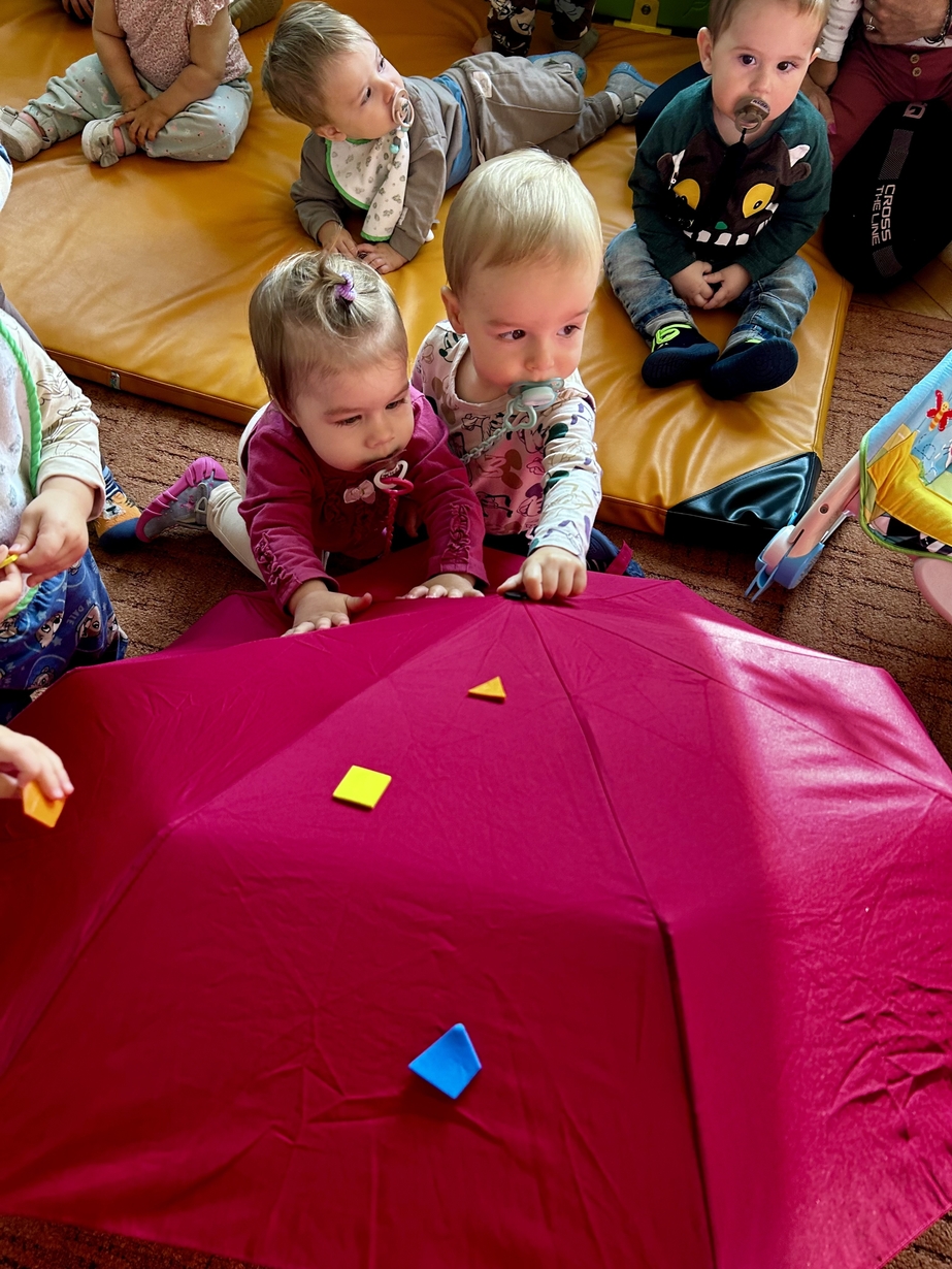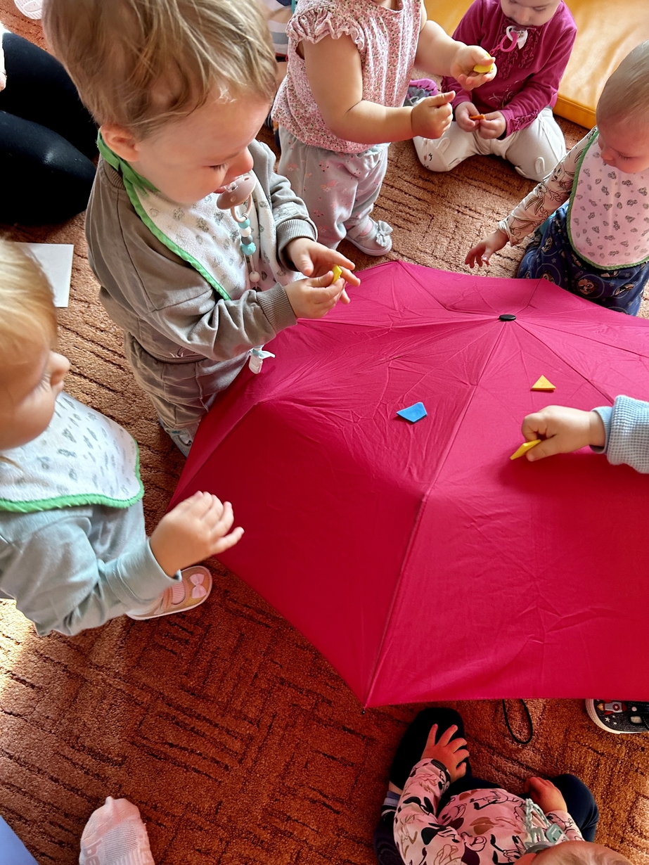W naszym Żłobeczku odbyły się zajęcia , które zainspirowane były deszczową pogodą. Wszystkie działania skupiły się wokół parasola ?. Dzieciaczki ozdabiały parasol naklejkami co sprawiło im ogromną radość. Uczyły się również jak prawidłowo trzymać parasol. Mimo deszczowej pogody za oknem na grupie 1 było bardzo wesoło.