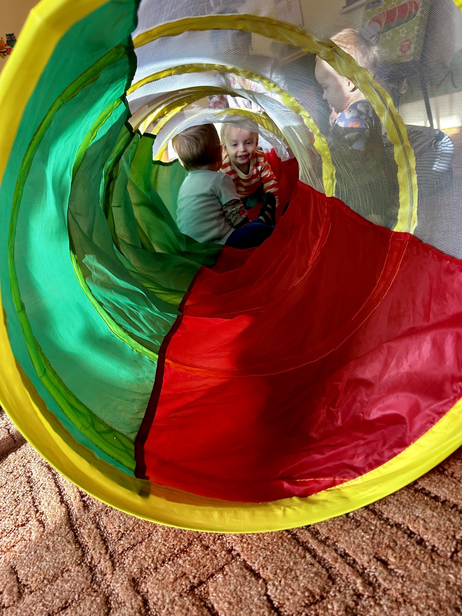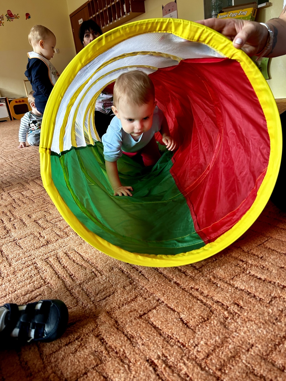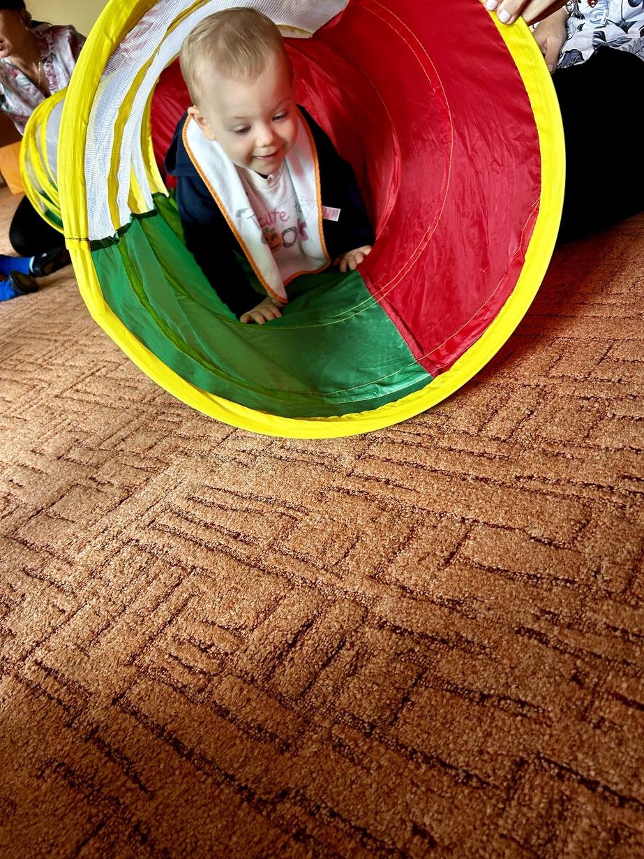 Tunel animacyjny jest bardzo przydatnym przedmiotem w zabawach ruchowych dzieci. Ulubioną zabawą jest przechodzenie na różne sposoby np: czołganie się. Biedroneczki rozwijały zwinność, orientację w przestrzeni i spostrzegawczość. Było bardzo dużo śmiechu i zabawy.