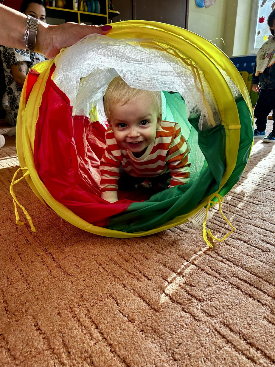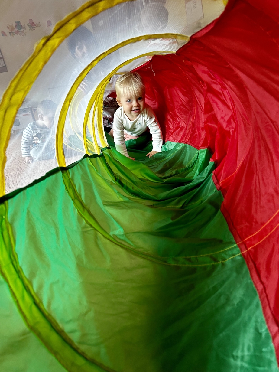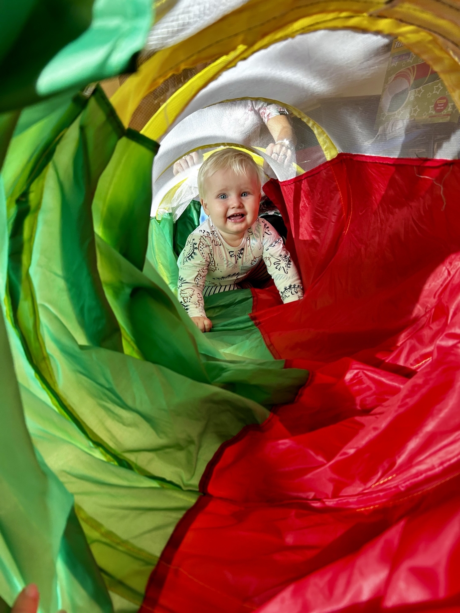 Tunel animacyjny jest bardzo przydatnym przedmiotem w zabawach ruchowych dzieci. Ulubioną zabawą jest przechodzenie na różne sposoby np: czołganie się. Biedroneczki rozwijały zwinność, orientację w przestrzeni i spostrzegawczość. Było bardzo dużo śmiechu i zabawy.