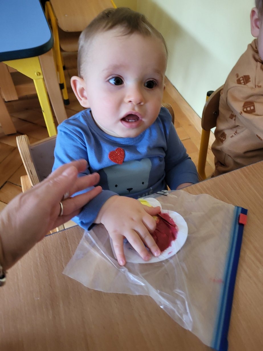 Maluszki zrobiły własne kolorowe serca ćwicząc przy tym paluszki.