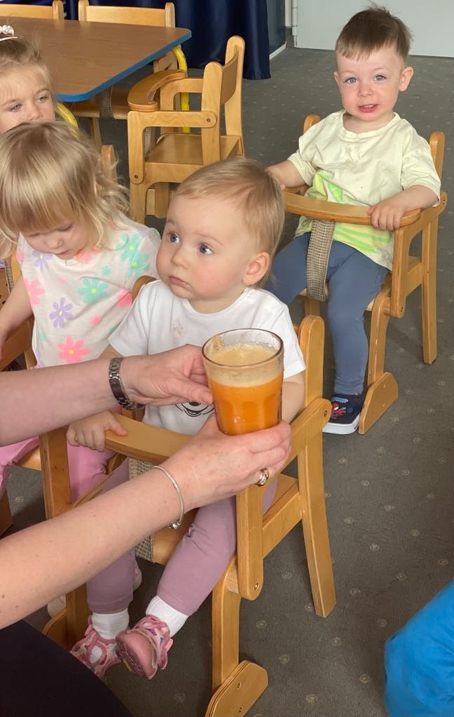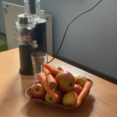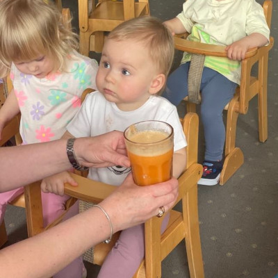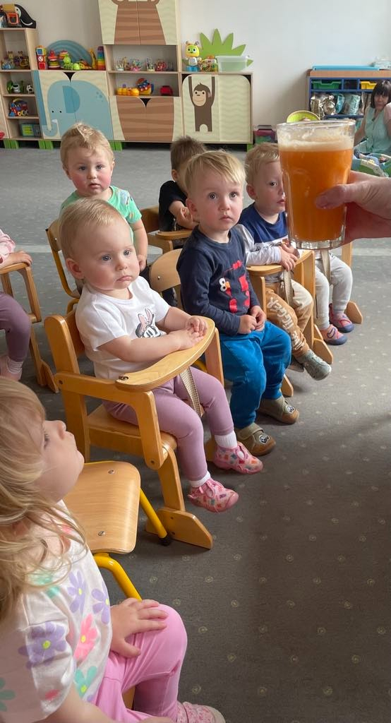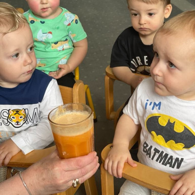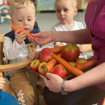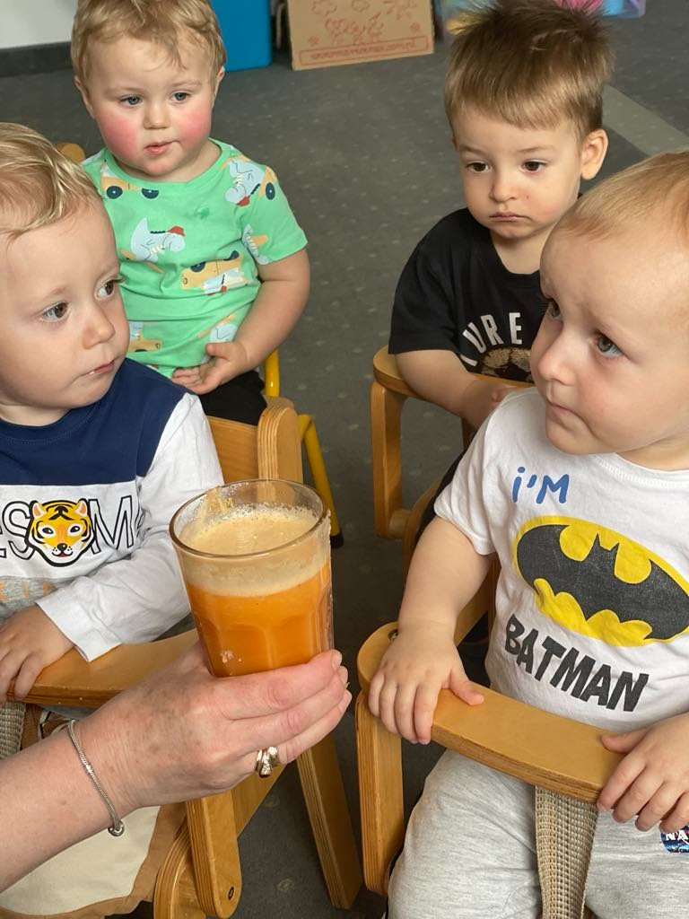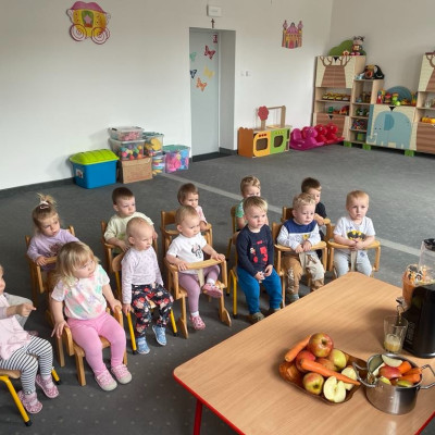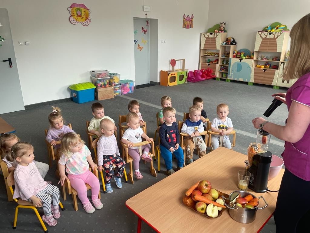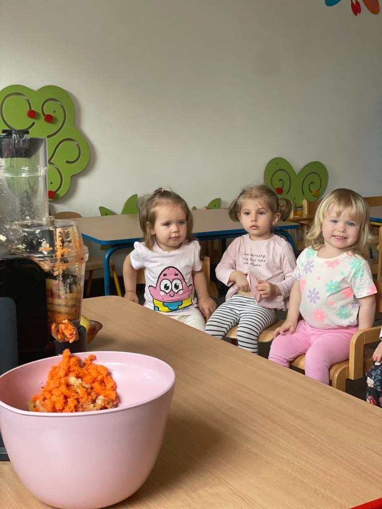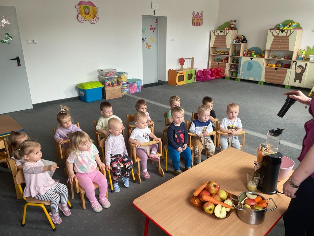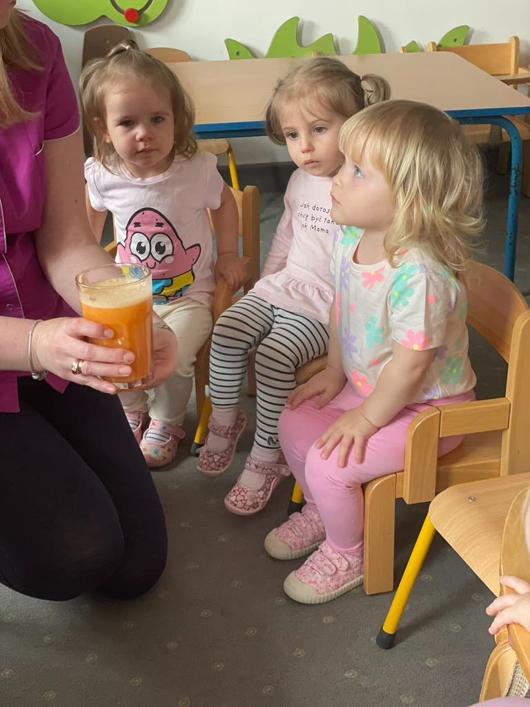 Aby być zdrowym trzeba się dobrze odżywiać, a najwięcej witamin mają owoce i warzywa. „Biedroneczki “ dowiedziały się jak zrobić pyszny sok z marchewki i jabłka. Na końcu delektowały się jego smakiem.