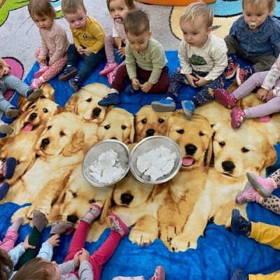 Zdjęcie przedstawia dzieci podczas zajęć w żłobku