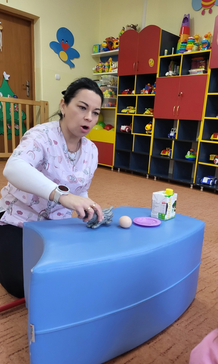 Maluchy poznawały i naśladowały odgłosy zwierząt. Było mleczko dla kotka, który stukł ogonkiem jajeczko.