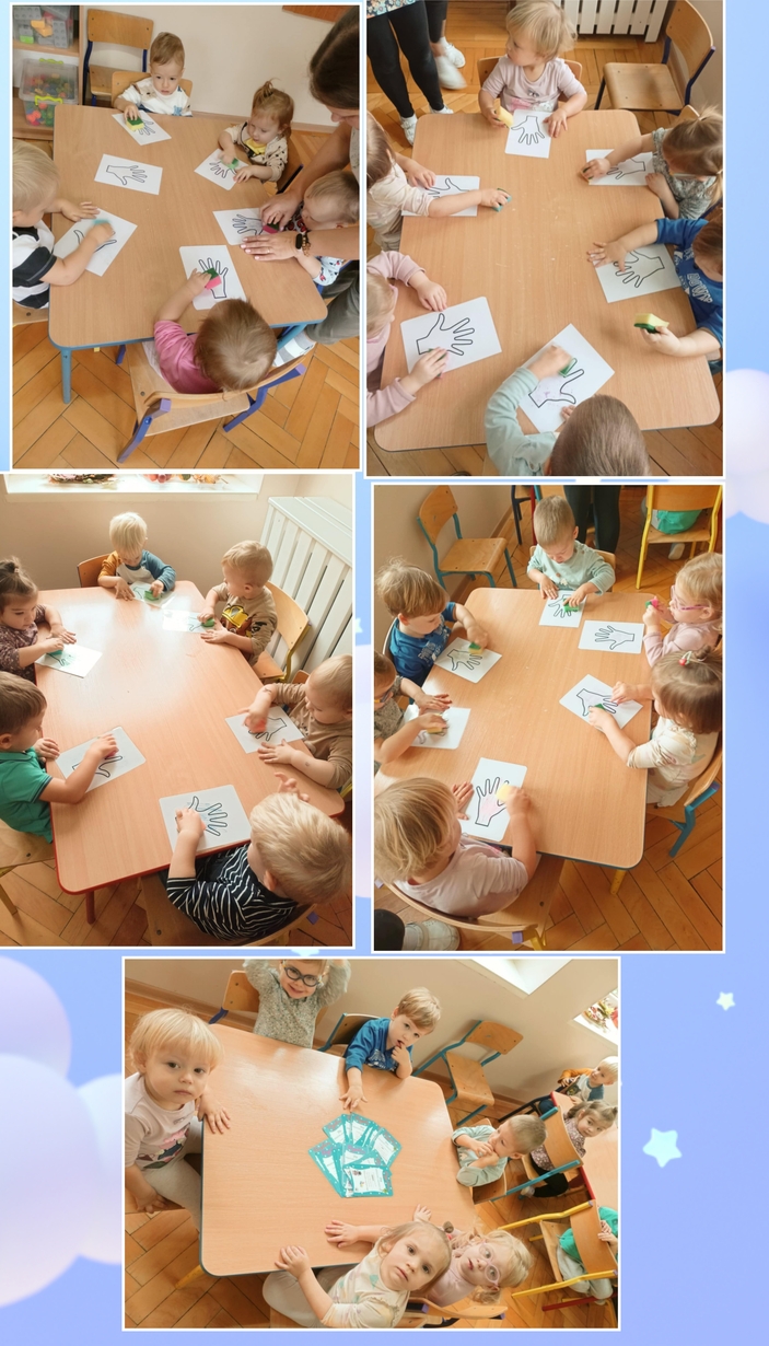 Pszczółki podczas dobrej zabawy uczyły się jak myć rączki. Słuchały też piosenki ,,Umyć ręce" naśladując gesty opiekunek. Na koniec otrzymały dyplomiki.