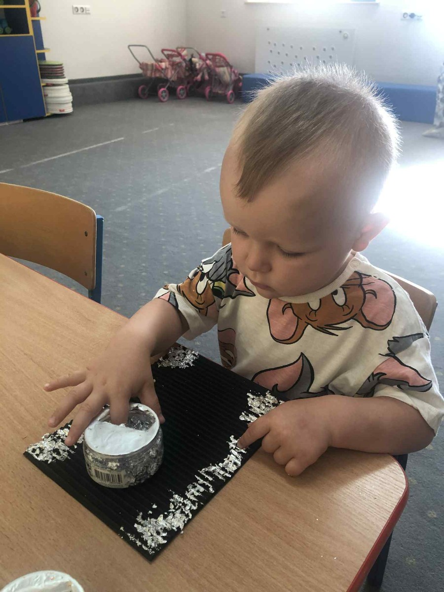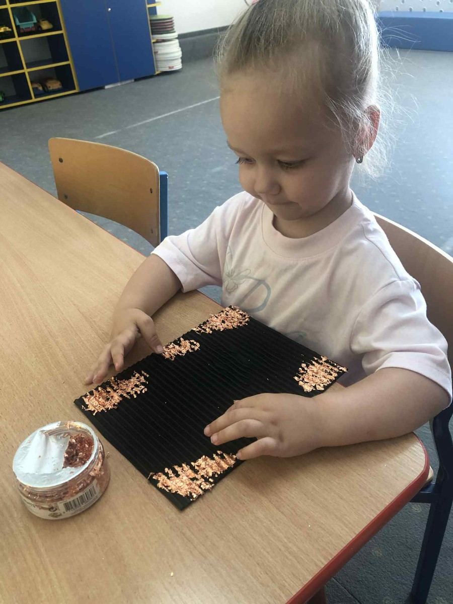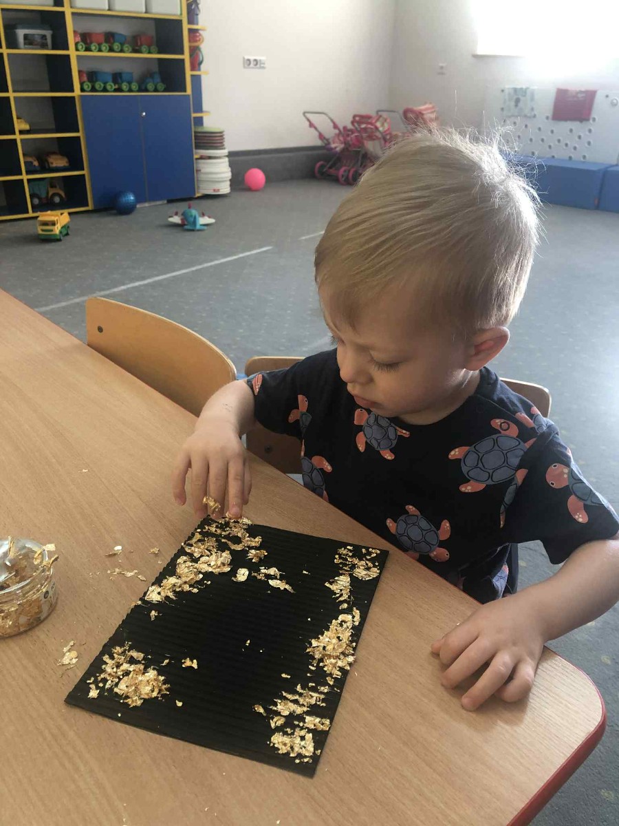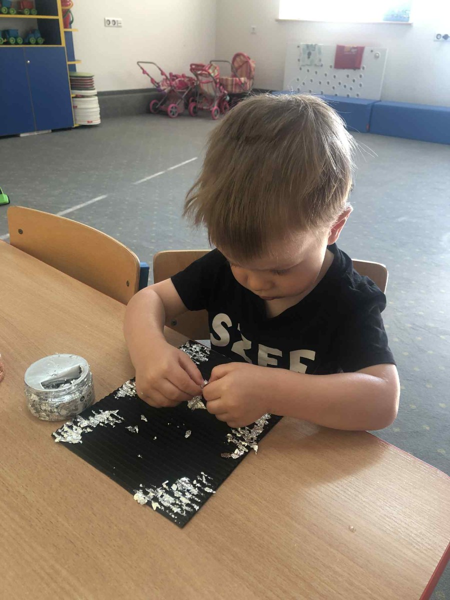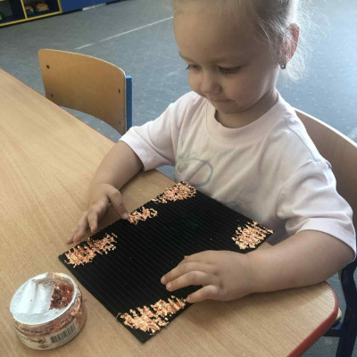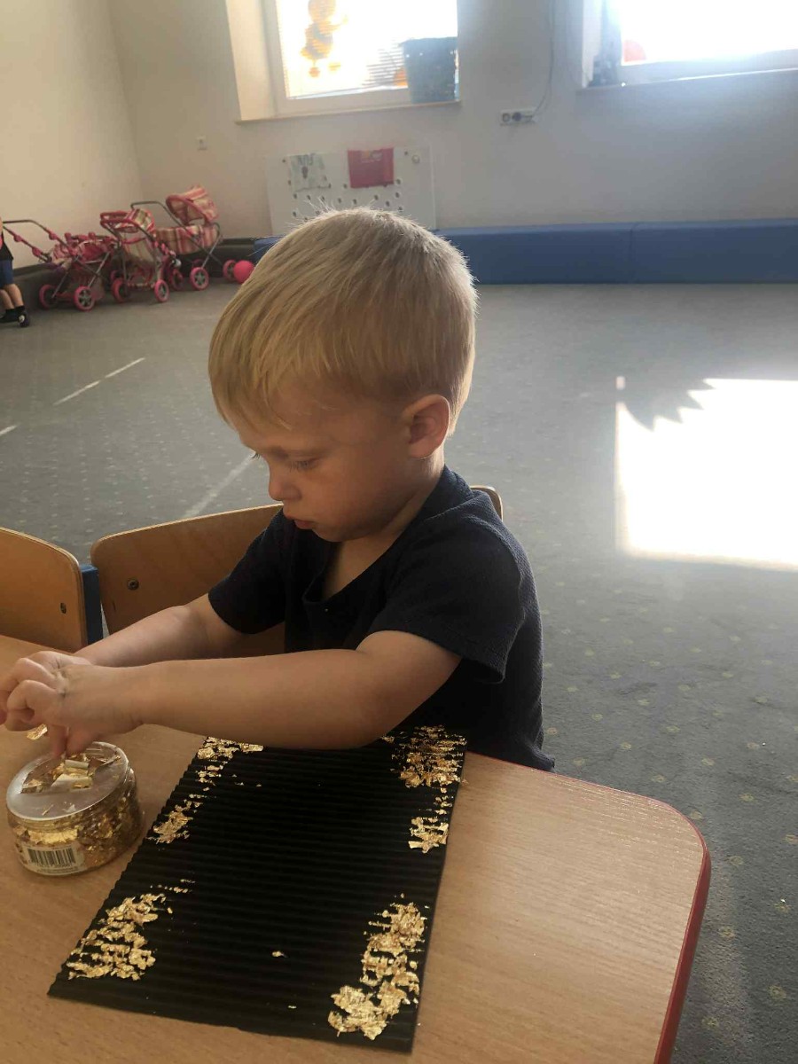 Zdjęcia przedstawiają dzieci wykonujące pracę plastyczną