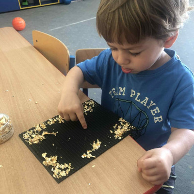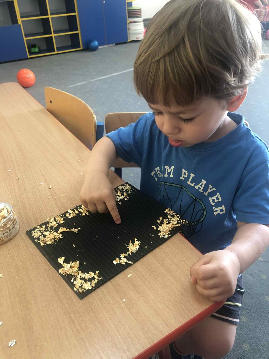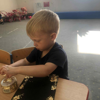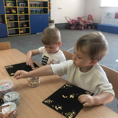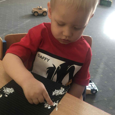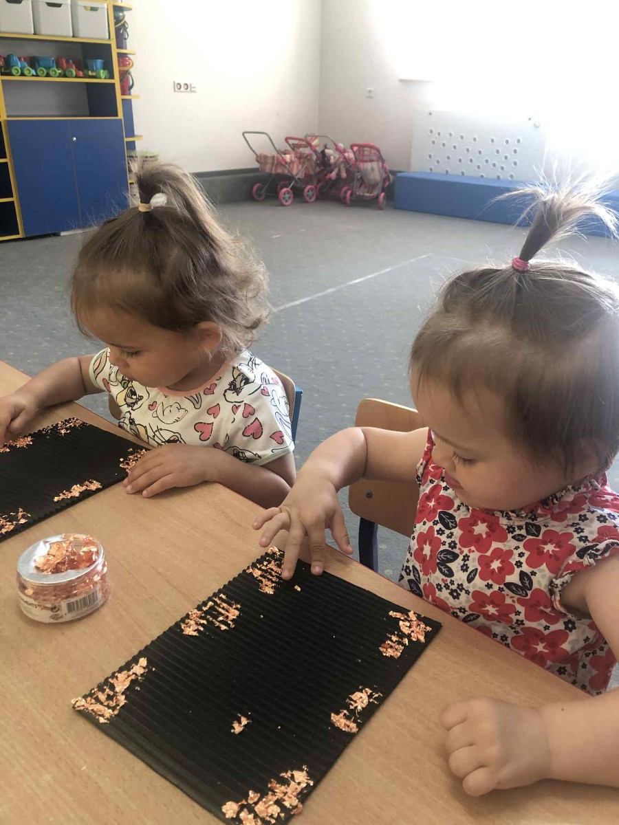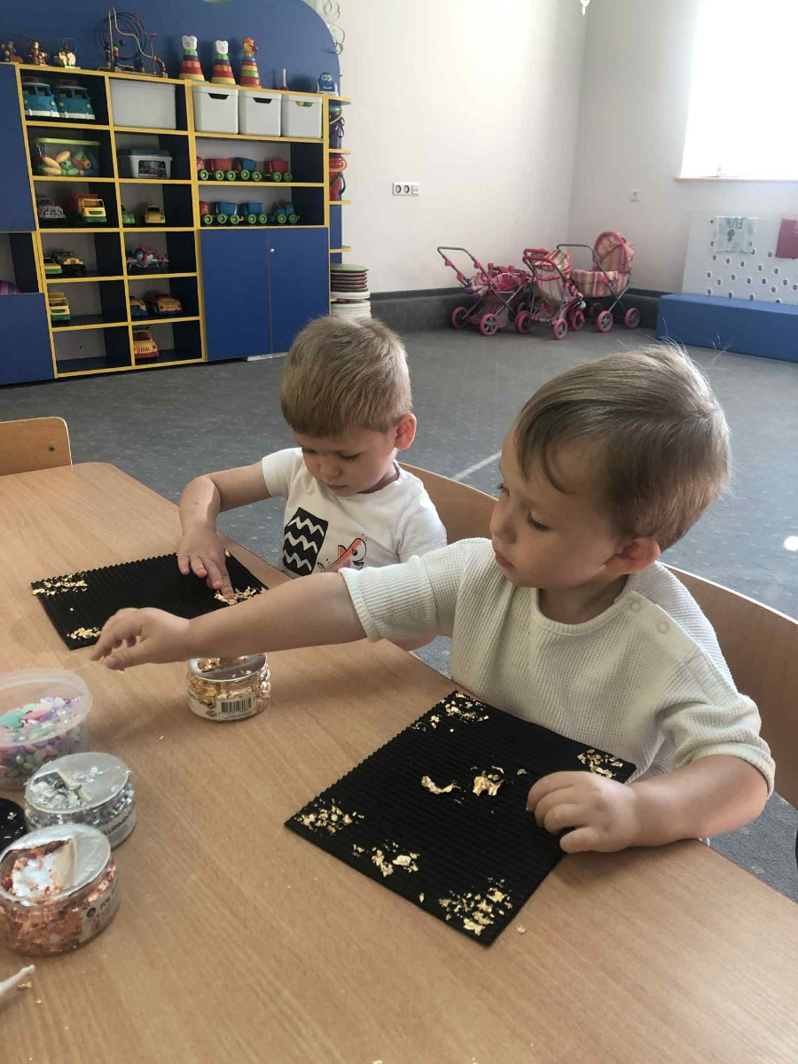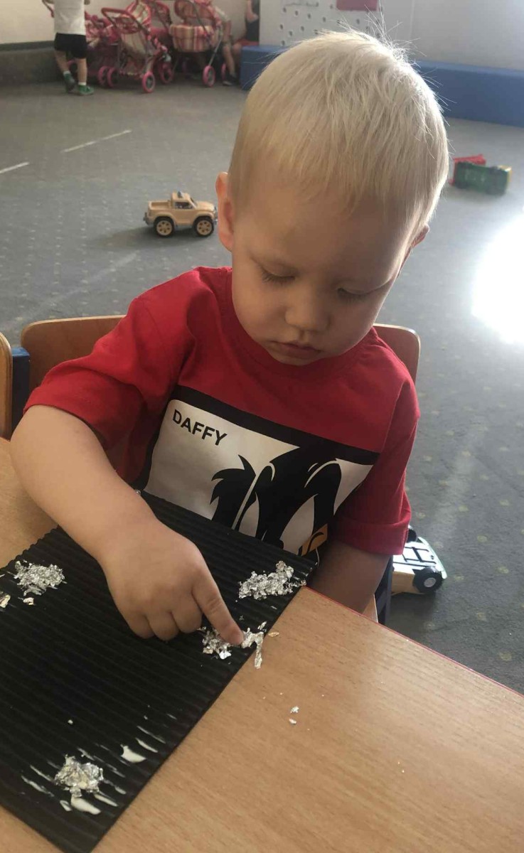 Zdjęcia przedstawiają dzieci wykonujące pracę plastyczną