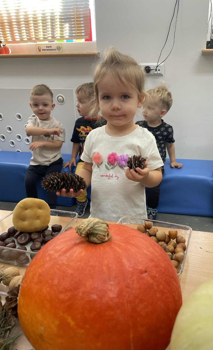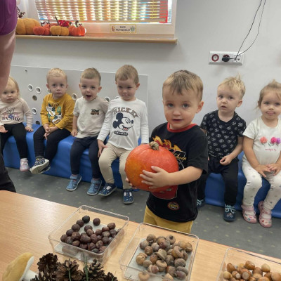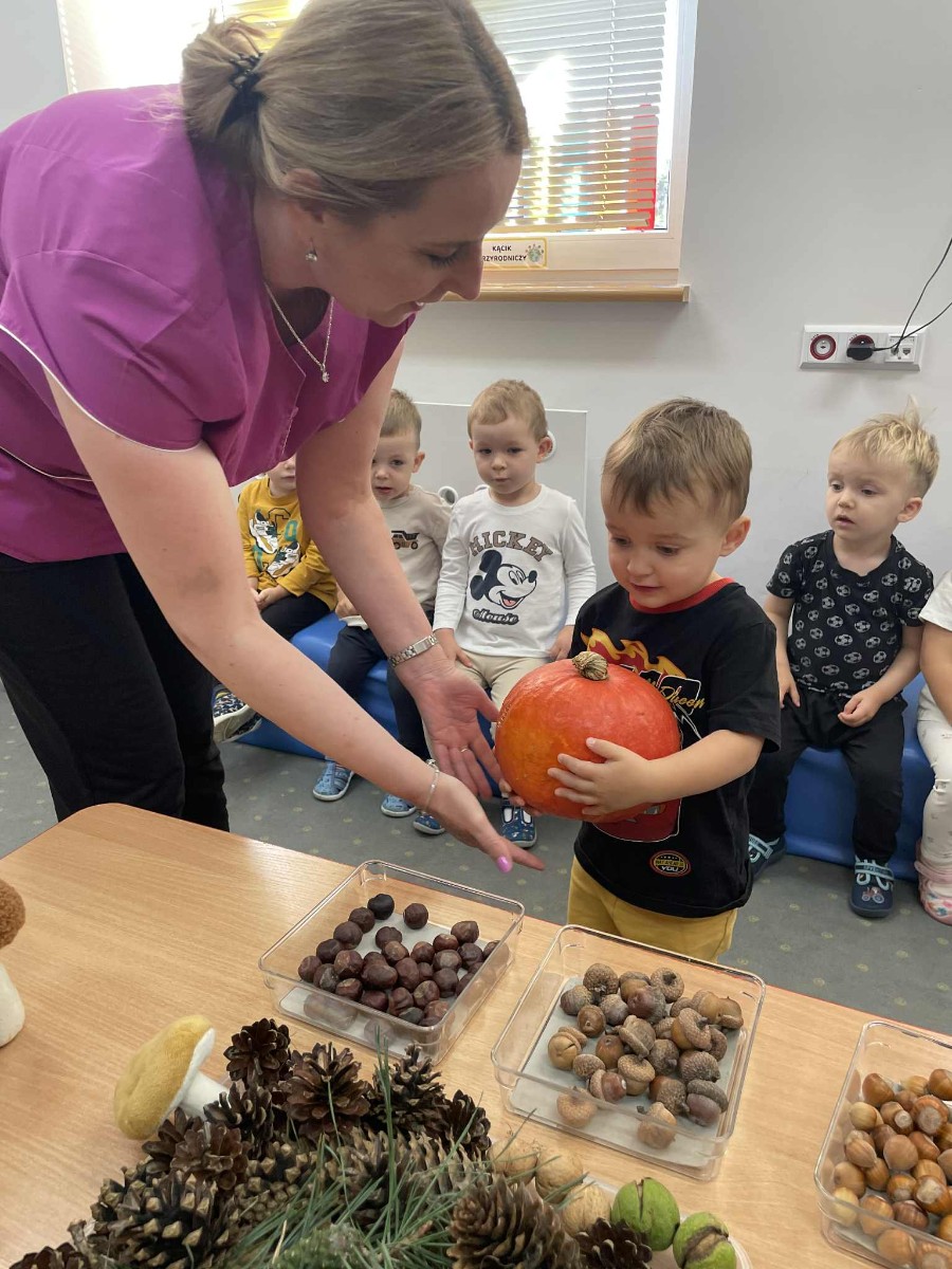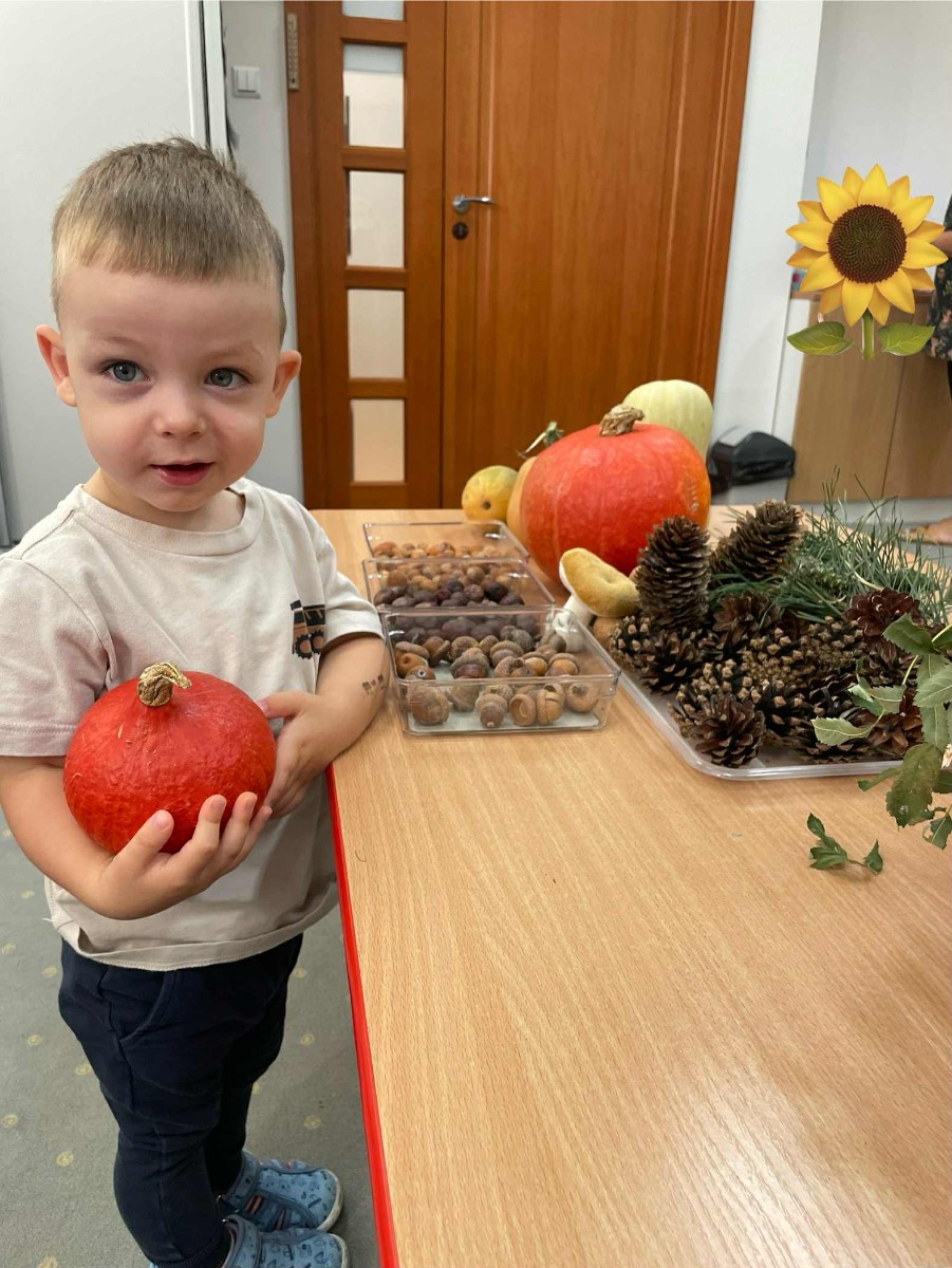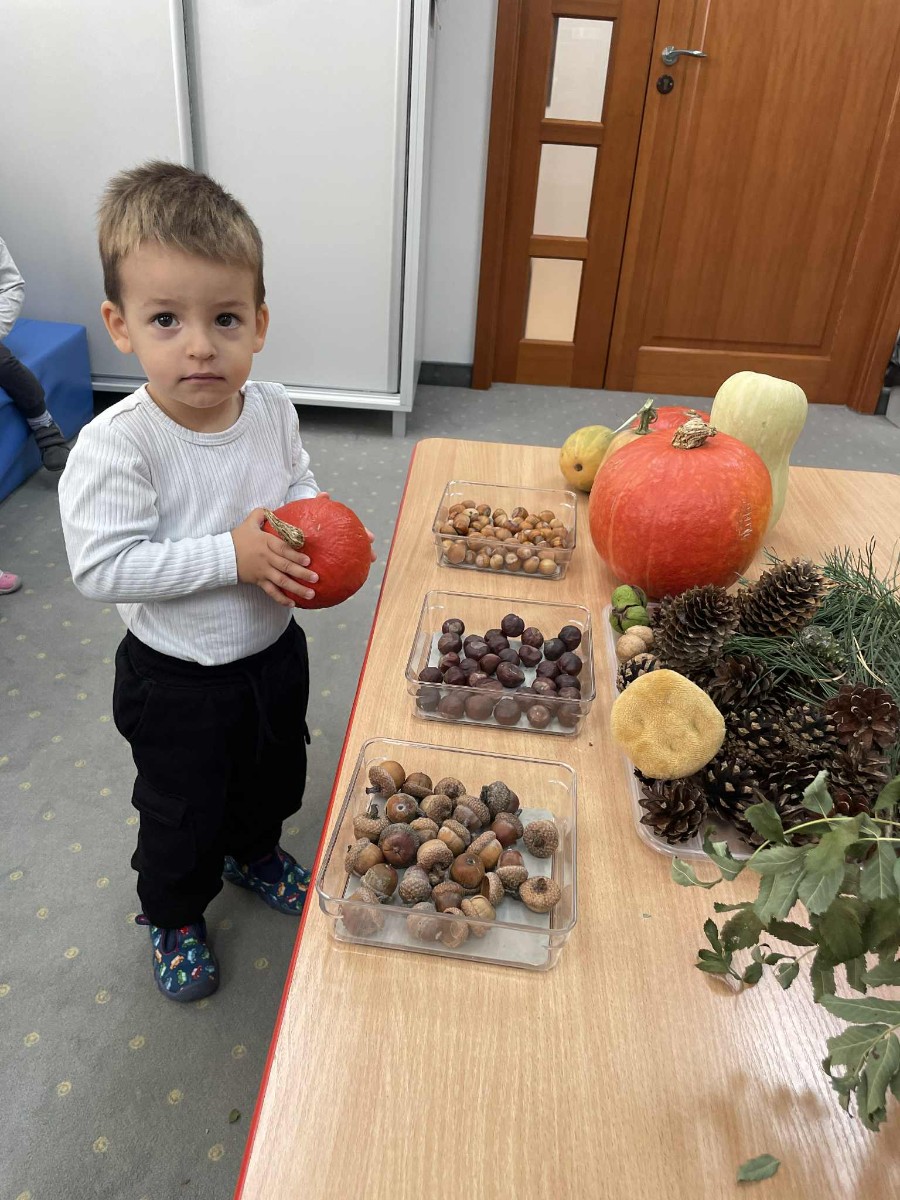 Nadeszła jesień – zrobiło się chłodniej, częściej pada deszcz i wieje wiatr. Dzieci z grupy „Pszczółki” poznały dary tej pięknej pory roku, które towarzyszyły im podczas wspólnych zabaw i zajęć.