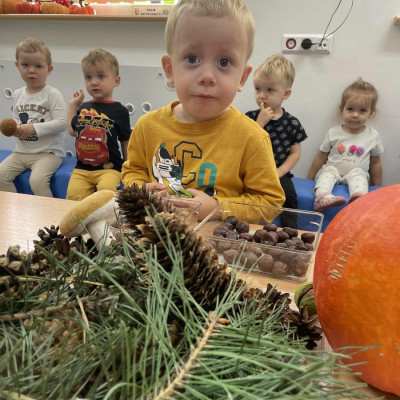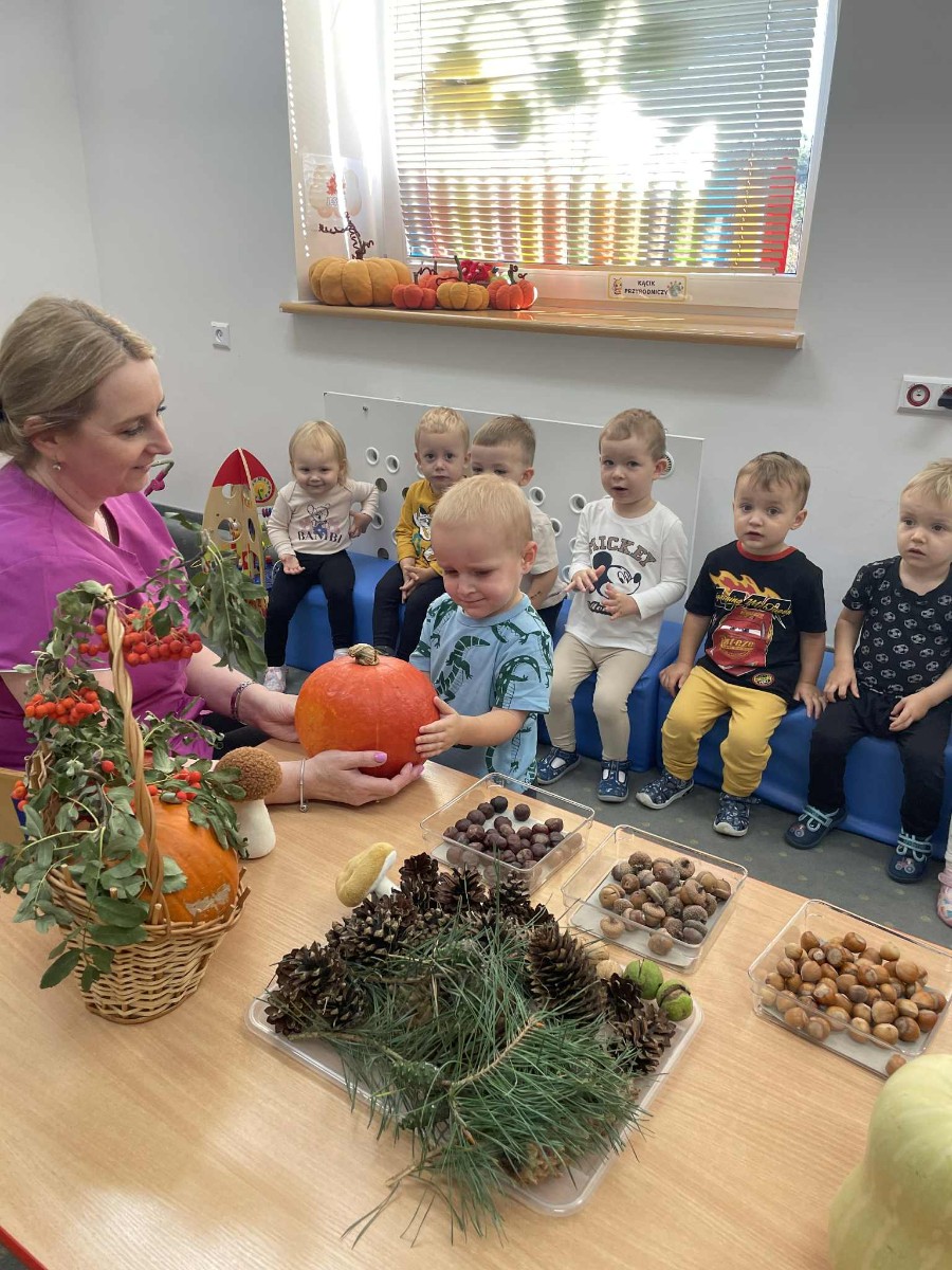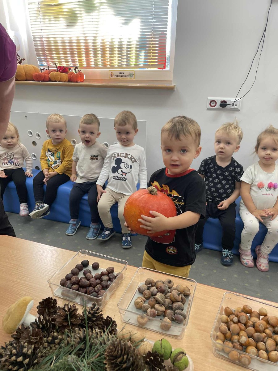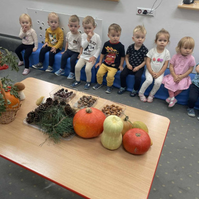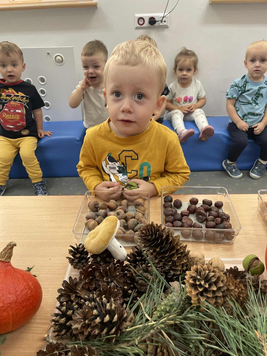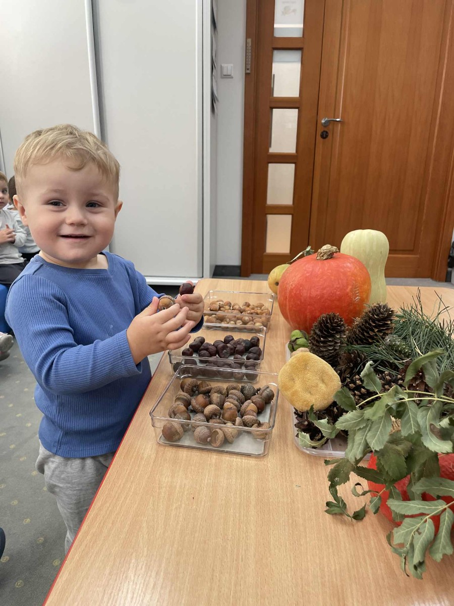 Nadeszła jesień – zrobiło się chłodniej, częściej pada deszcz i wieje wiatr. Dzieci z grupy „Pszczółki” poznały dary tej pięknej pory roku, które towarzyszyły im podczas wspólnych zabaw i zajęć.