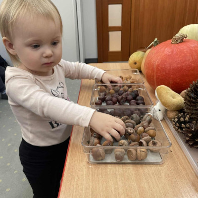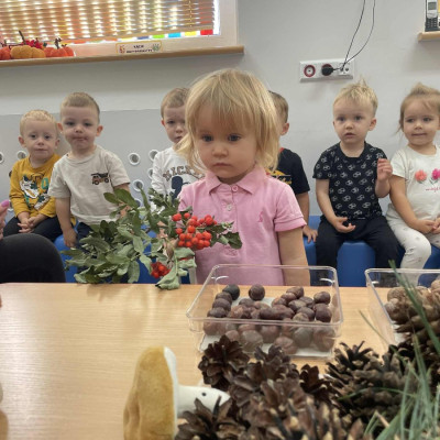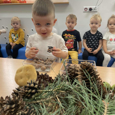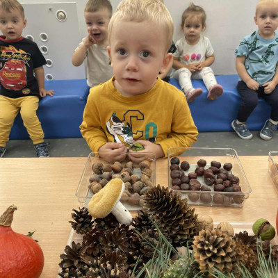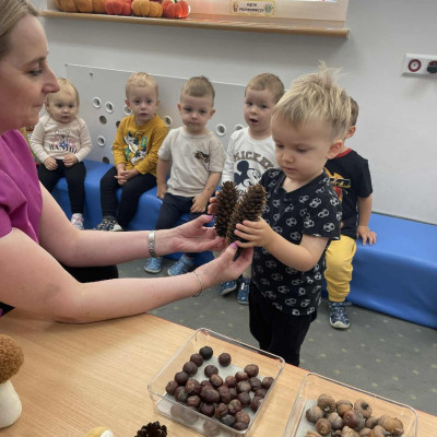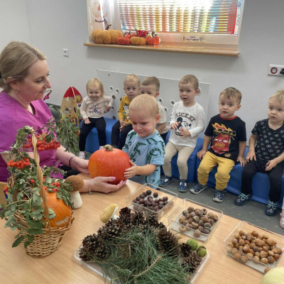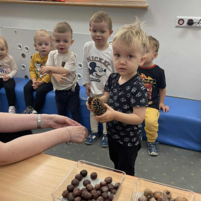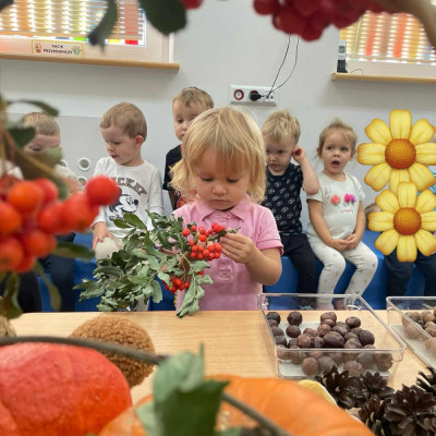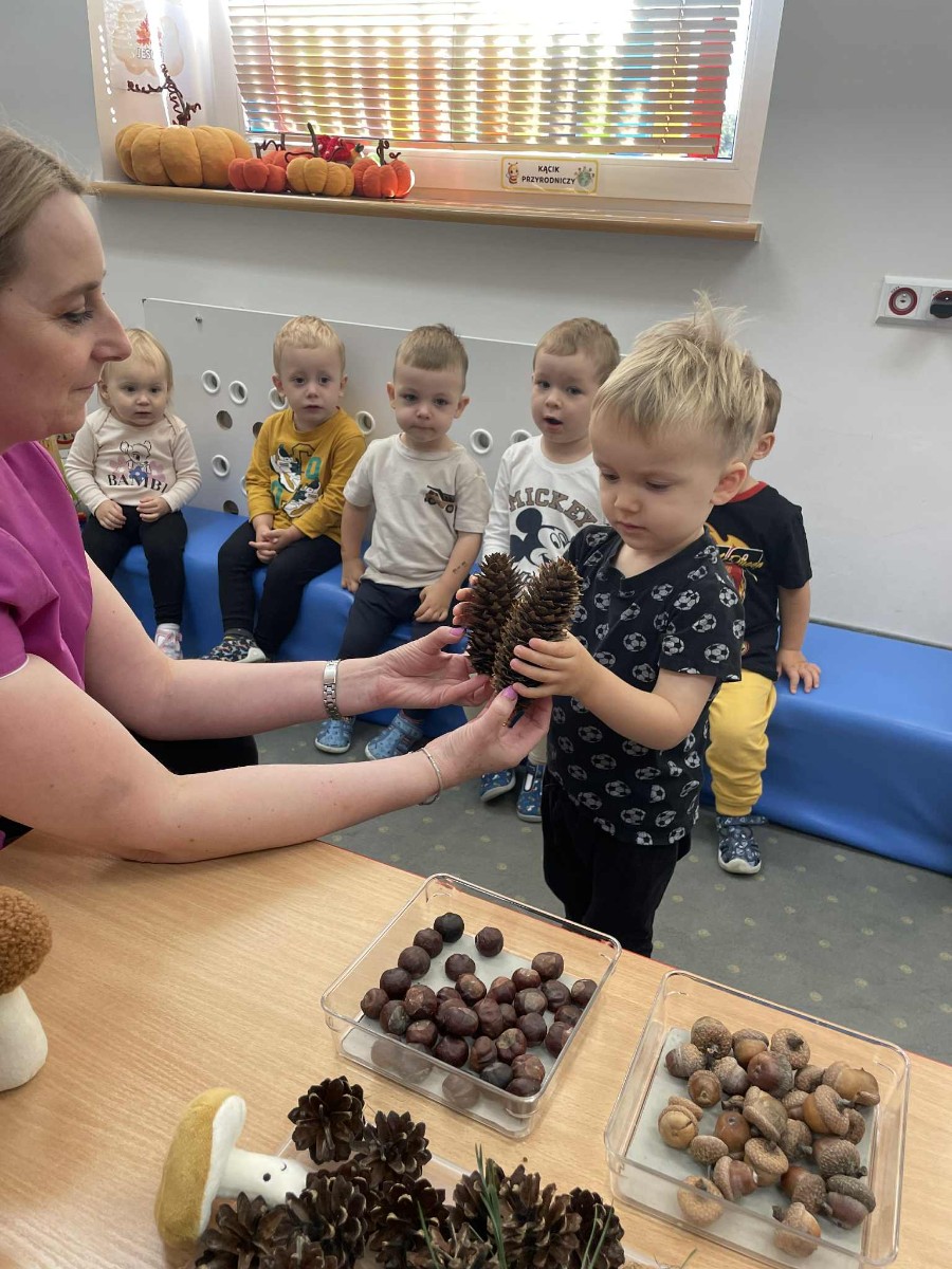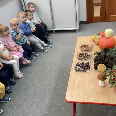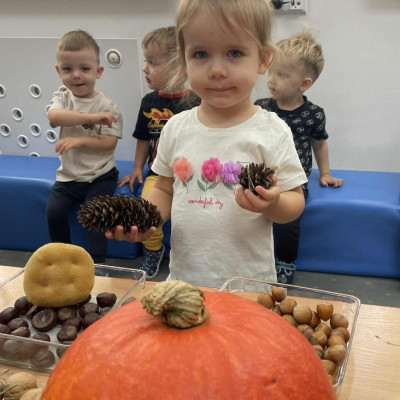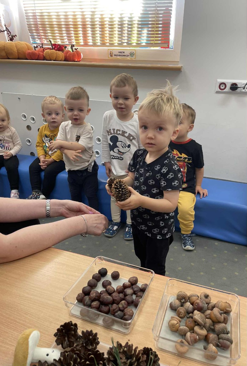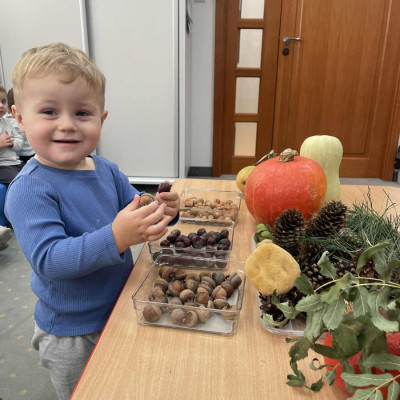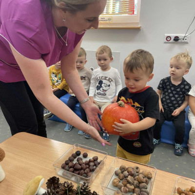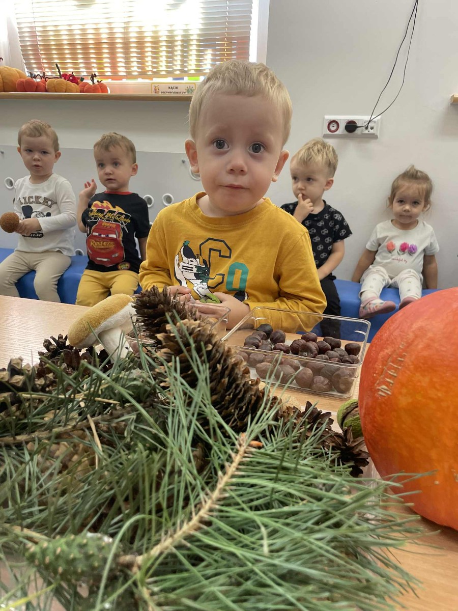 Nadeszła jesień – zrobiło się chłodniej, częściej pada deszcz i wieje wiatr. Dzieci z grupy „Pszczółki” poznały dary tej pięknej pory roku, które towarzyszyły im podczas wspólnych zabaw i zajęć.