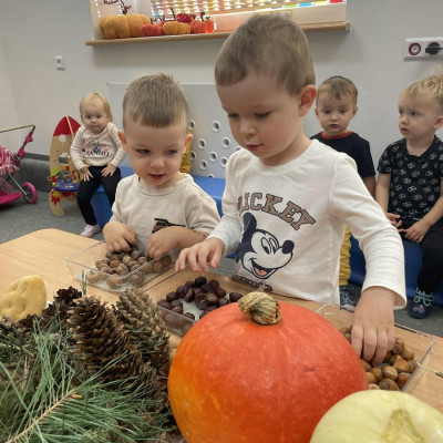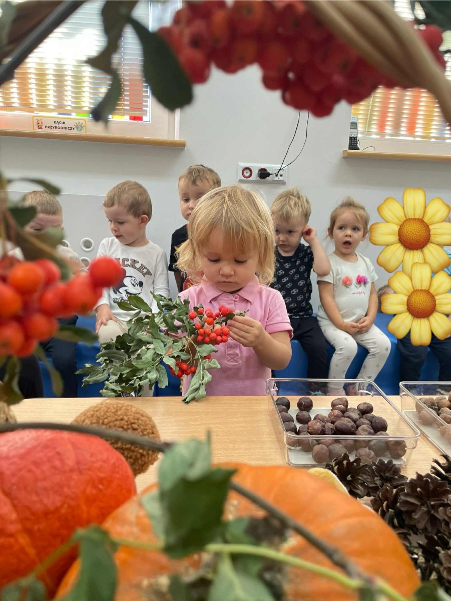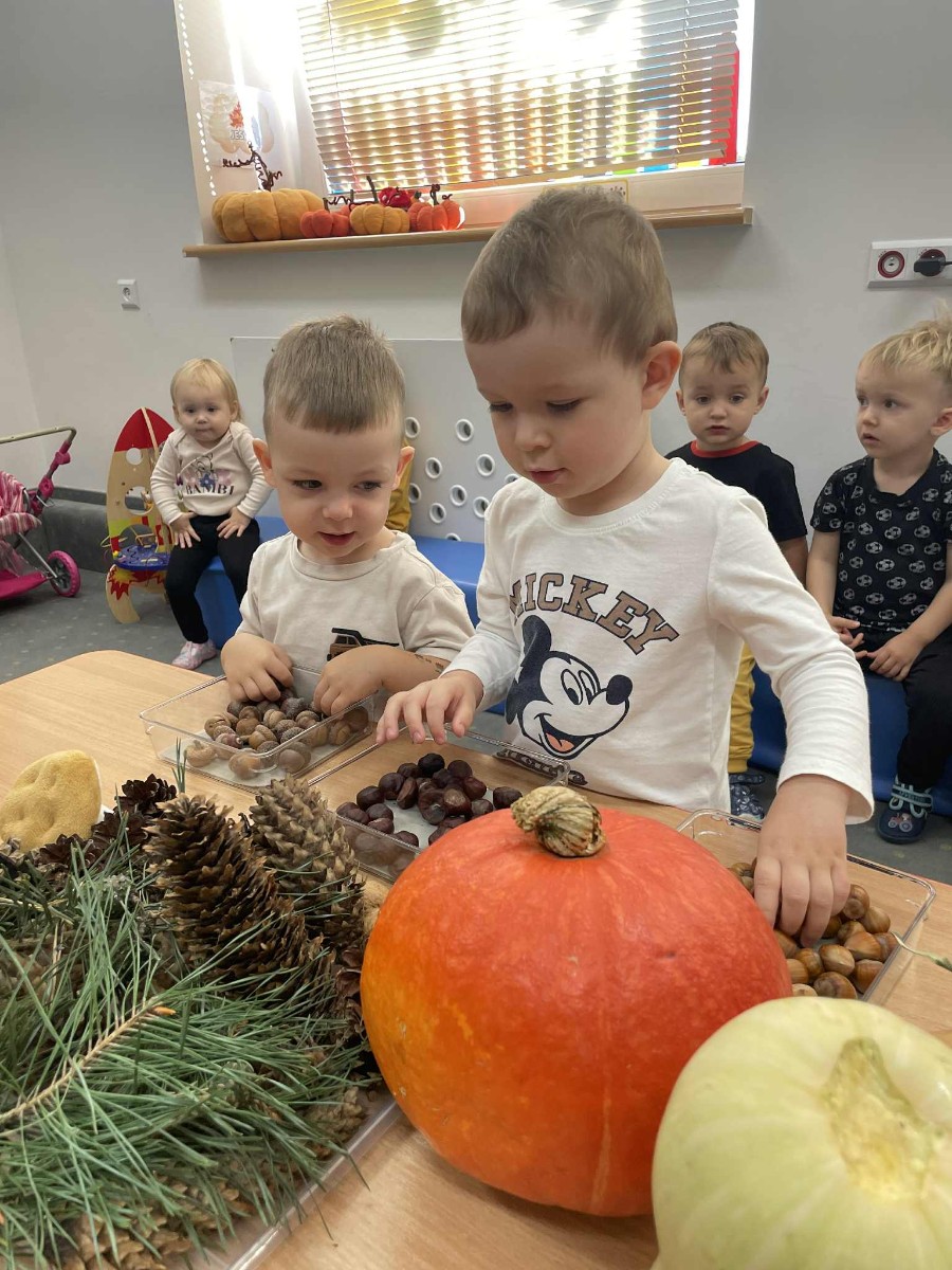 zdjęcie przedstawia dzieci podczas zajęć jesiennych