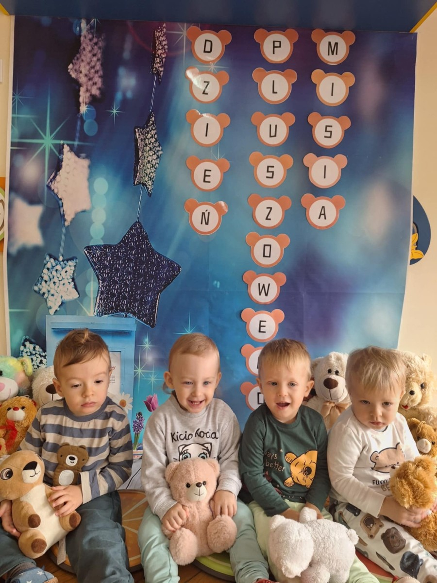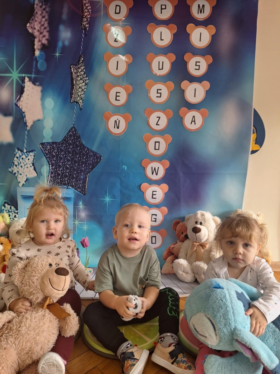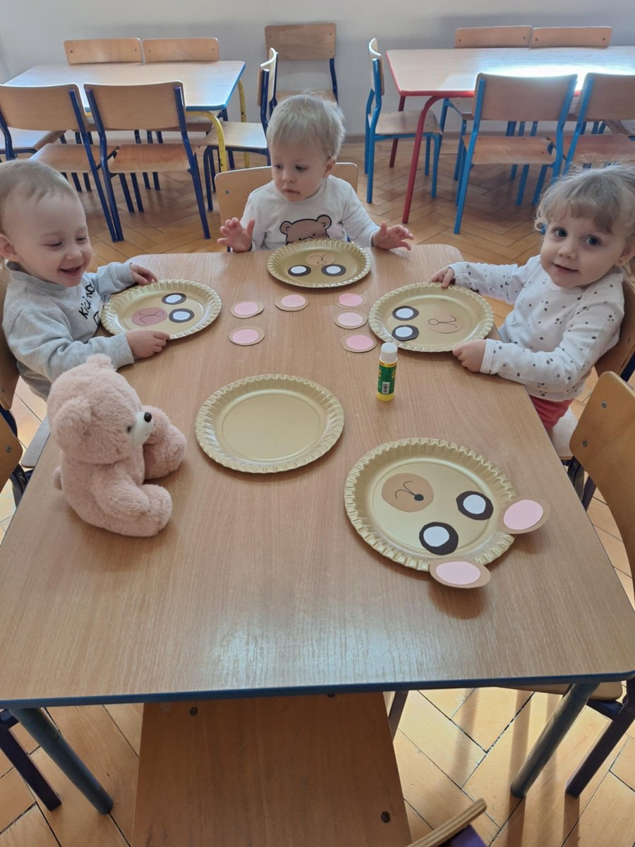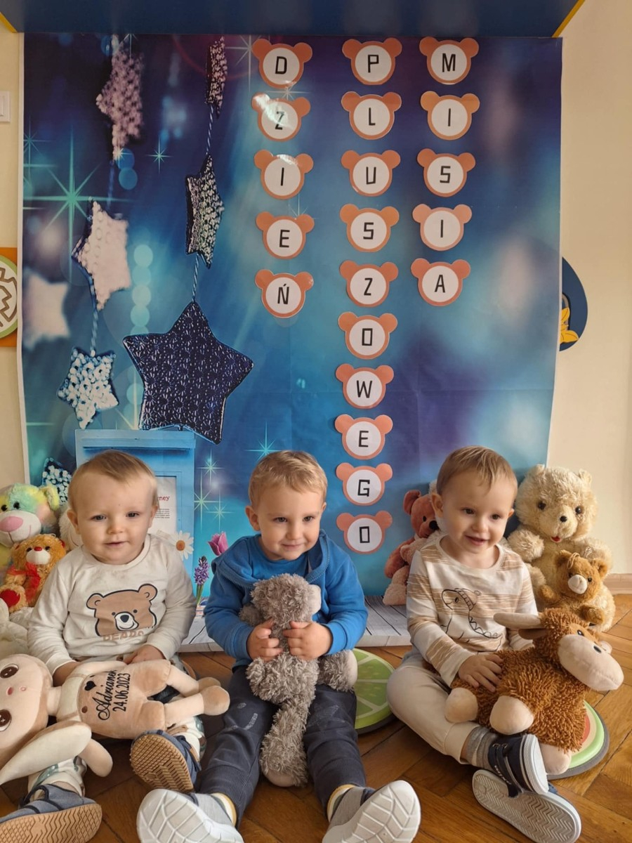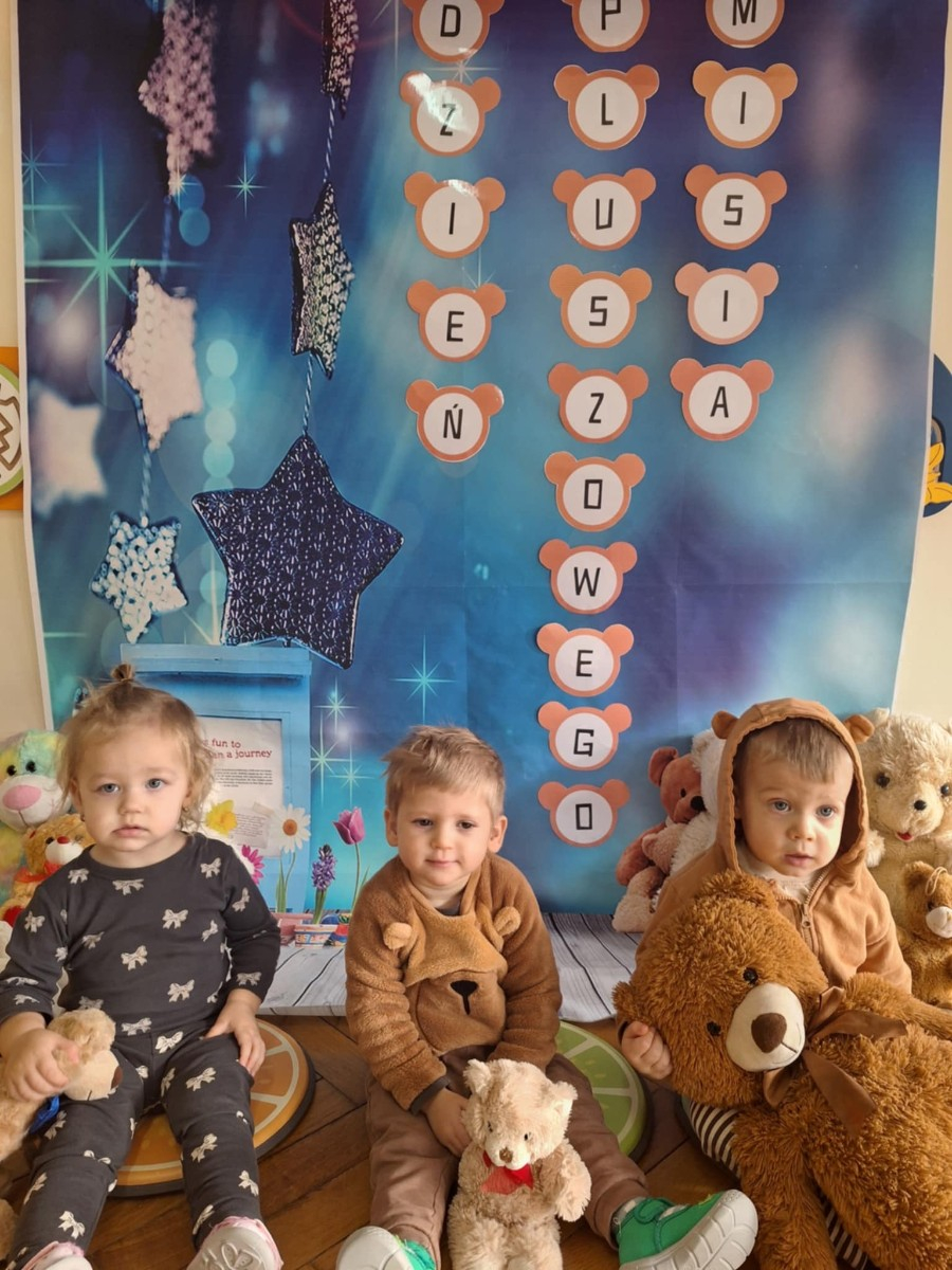 Zdjęcie przedstawia dzieci podczas zajęć w żłobku z okazji dnia misia