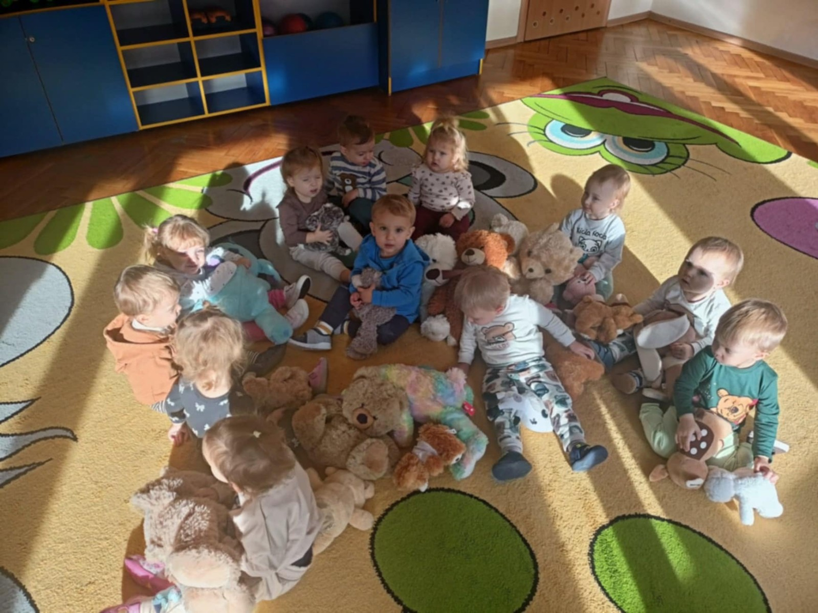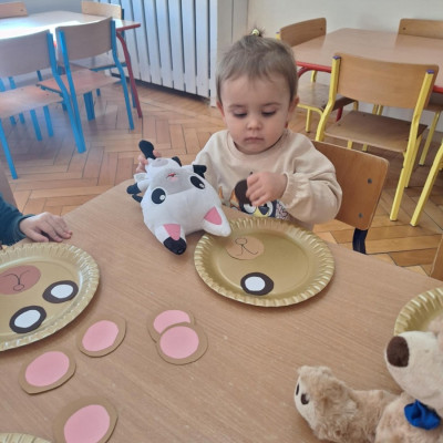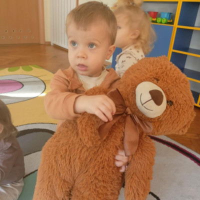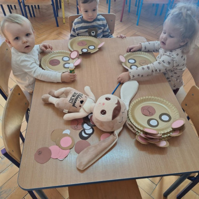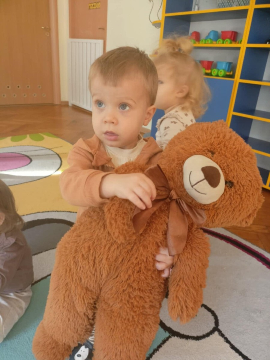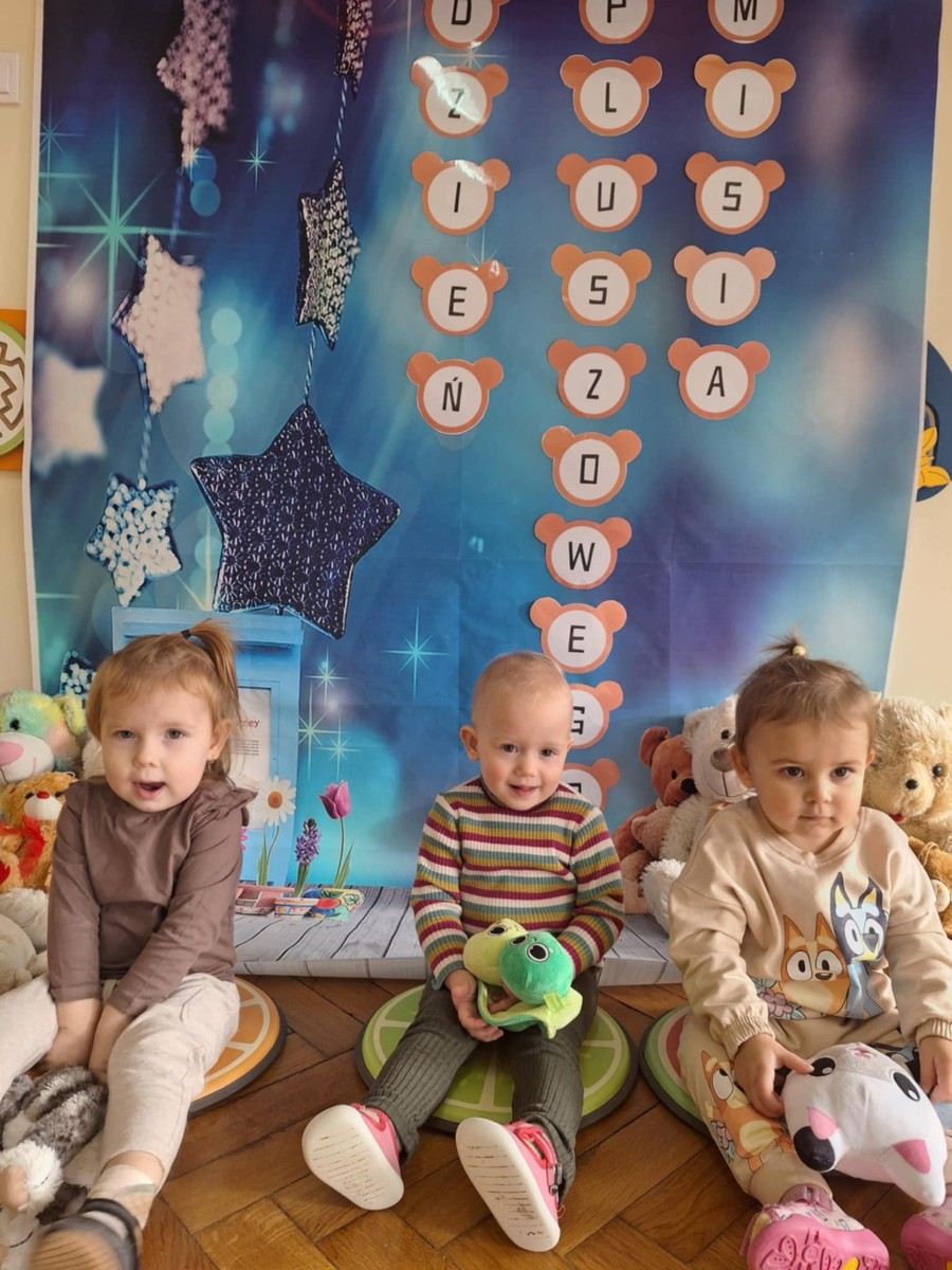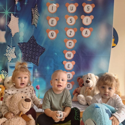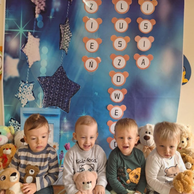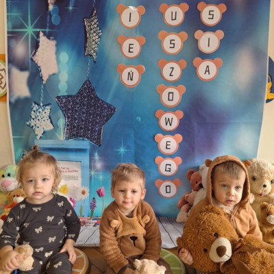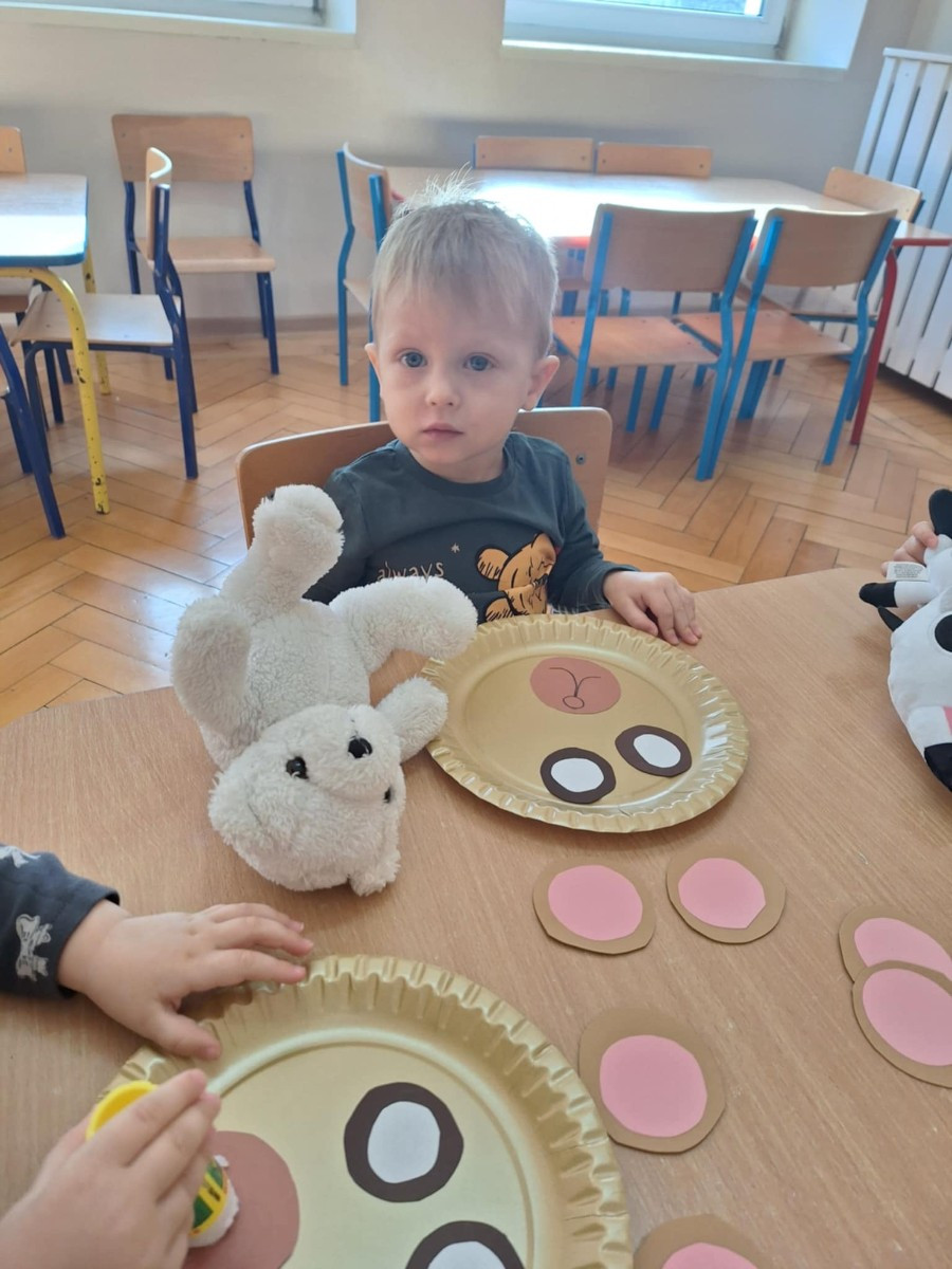 Zdjęcie przedstawia dzieci podczas zajęć w żłobku z okazji dnia misia