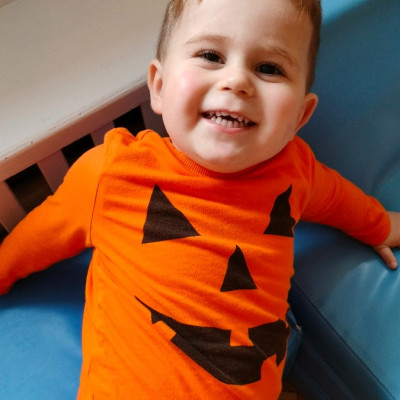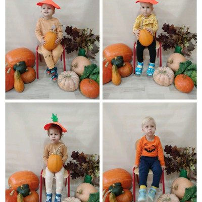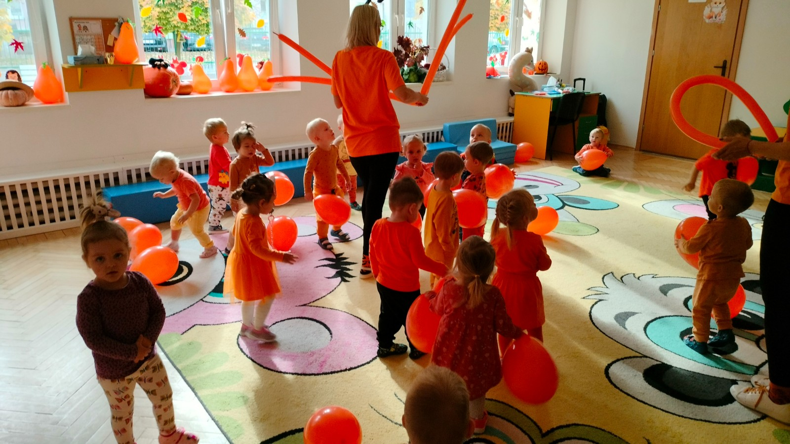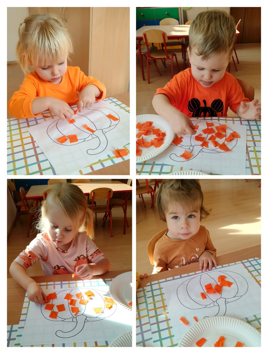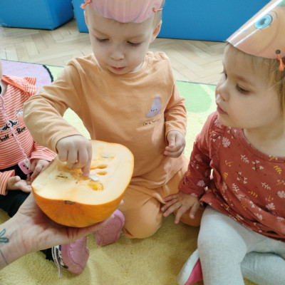 Zdjęcie przedstawia dzieci podczas zajęć w żłobku z okazji święta dyni