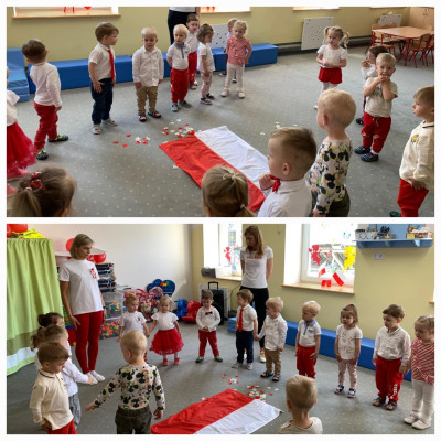 Zdjęcie przedstawia dzieci świętujące 3 maja
