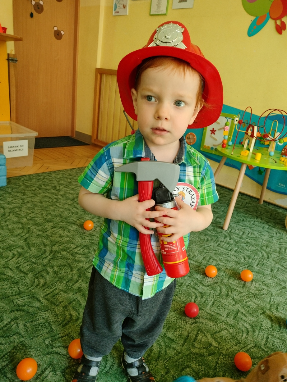 Z tej okazji "ciocia praktykantka" starała się przybliżyć dzieciom zawód strażaka oraz ukazać przydatność tego zawodu. Był to dzień, który miał uhonorować pracę strażaków i przypomnieć nam wszystkim jaka jest ona niebezpieczna, a jednocześnie bardzo potrzebna. Podczas zabaw dzieci poznały zagadnienia trudnej i niebezpiecznej pracy strażaków oraz sprzętu, który służy im podczas wykonywania codziennej pracy.