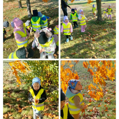 Podczas jesiennego spaceru dzieci obserwowały drzewa, zbierały kolorowe liście i poznawały ich różne kształty🍁🍂. Spacer był okazją do rozmów o zmianach zachodzących w przyrodzie oraz do aktywnego spędzania czasu na świeżym powietrzu. Pozbierane natomiast listki były inspiracją do pracy plastycznej, która miała na celu utrwalenie informacji o obecnej porze roku oraz dominujacych barw tej złotej aury🍂🍁🍂.