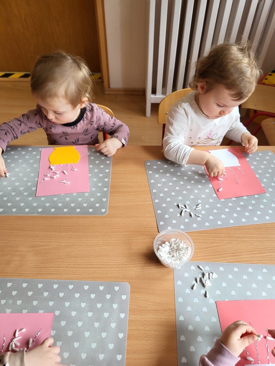 Misie zrobiły piękną pracę plastyczną związaną z pierwszymi oznakami wiosny. Przy okazji poćwiczyły sprawność swoich paluszków.