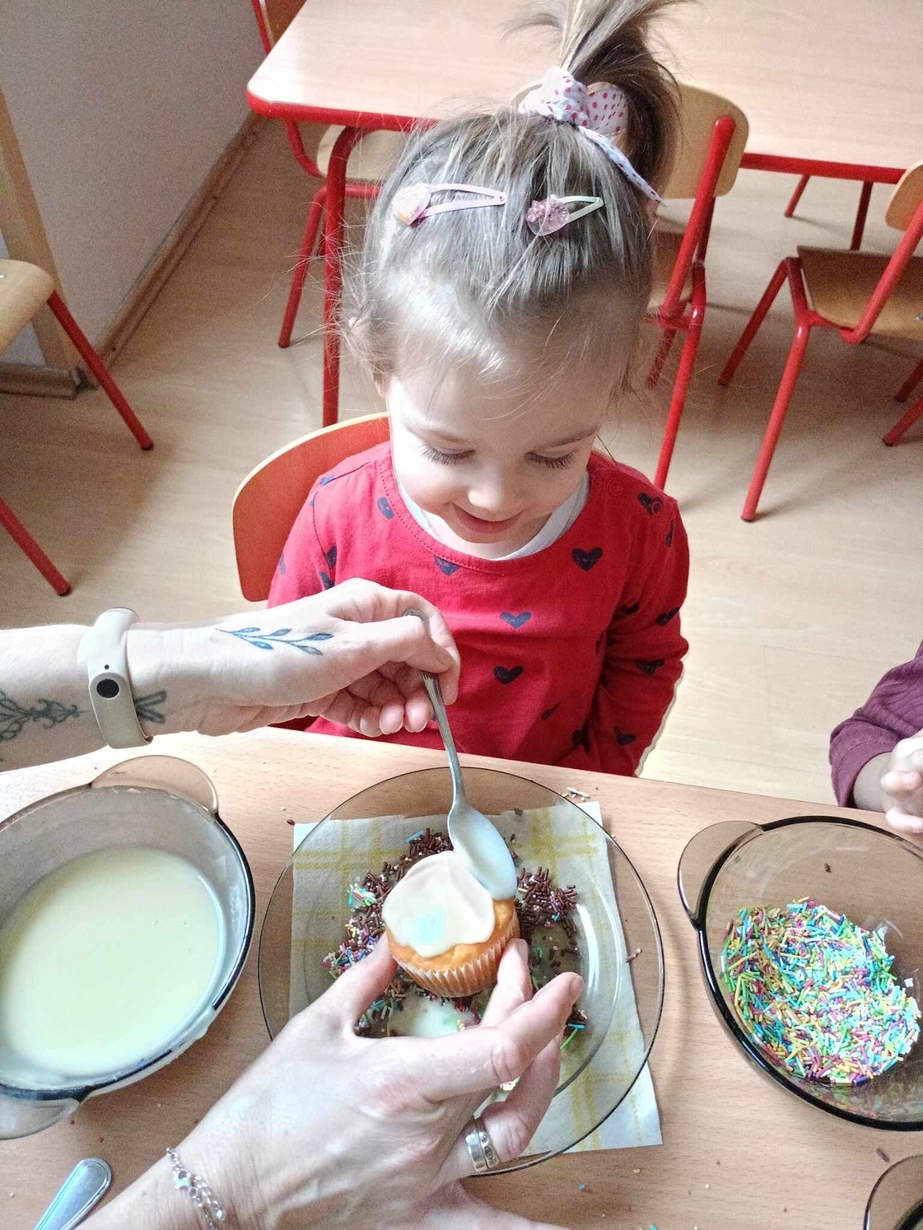 Misie ? dekorowały swoje babeczki ? lukrem i kolorowymi, cukrowymi posypkami.
