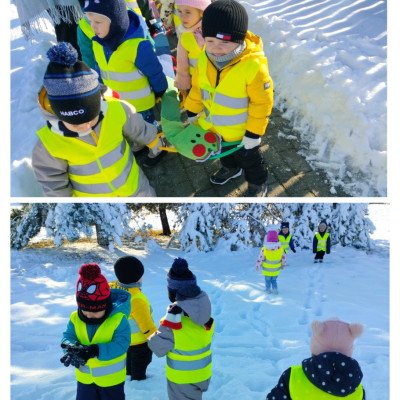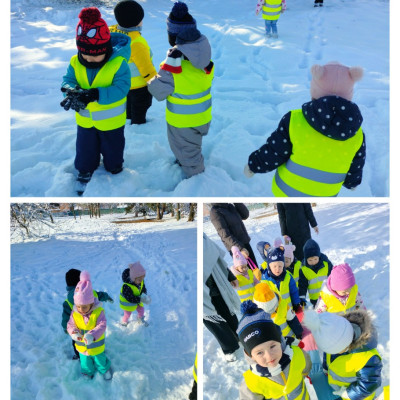 Dziś maluszki wybrały się na swój pierwszy spacer w śniegu❄️☃️. Z zaciekawieniem obserwowały białe płatki, słuchały ich skrzypienia pod butami i odkrywały zimowy świat❄️❄️❄️. Było dużo radości, uśmiechów i nowych wrażeń.