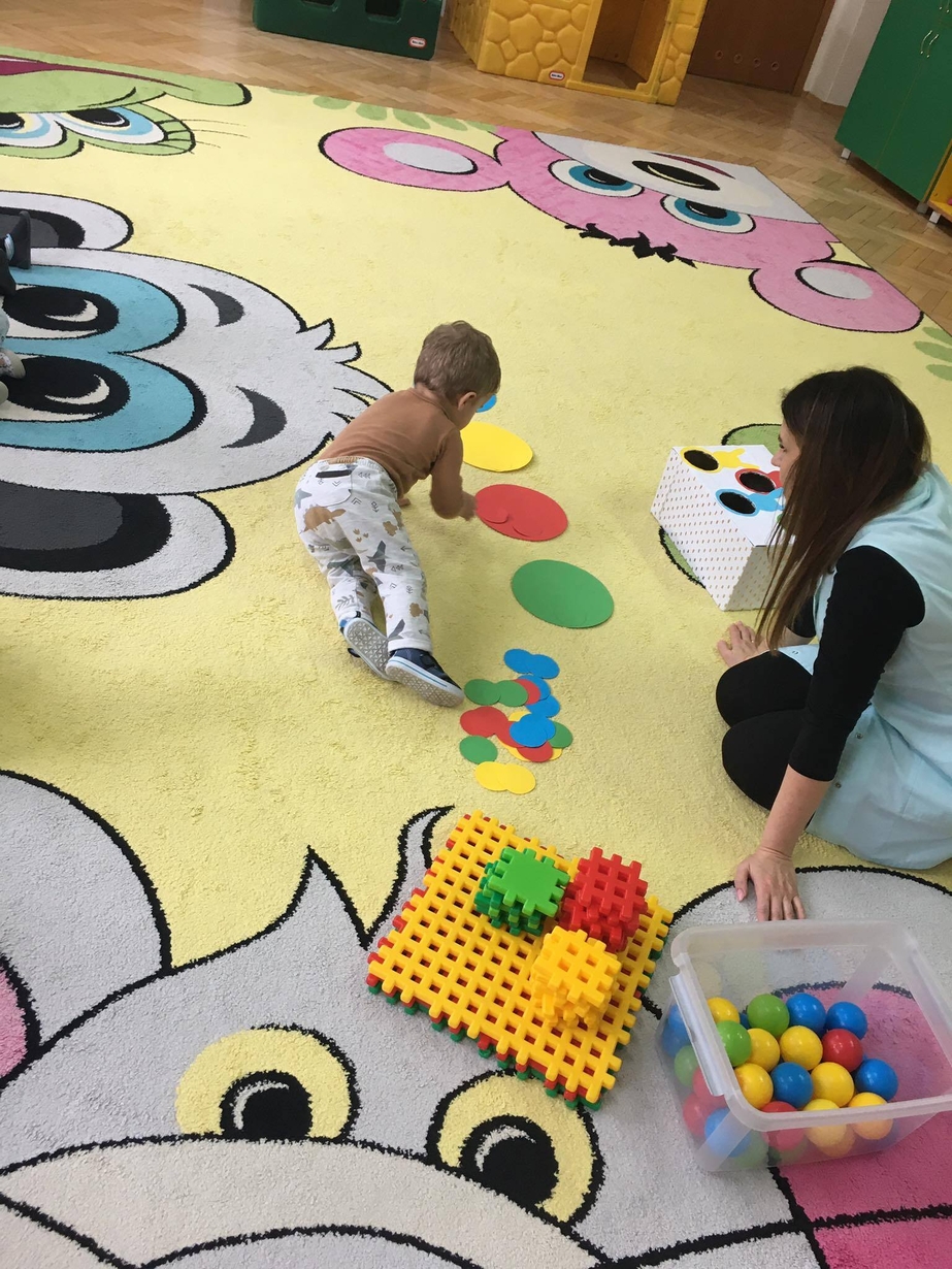 Podczas zajęć MISIE utrwalały umiejętności rozpoznawania kolorów .