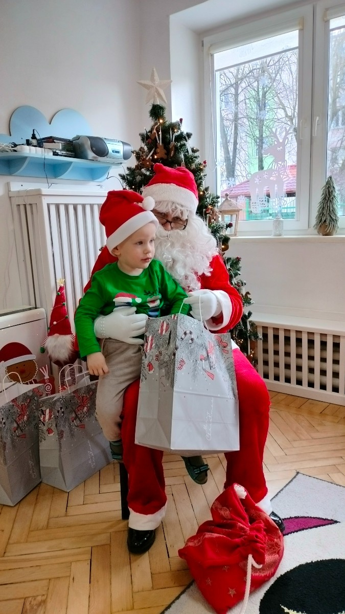 Już od samego rana długo wyczekiwany gość witał naszych podopiecznych uśmiechem i cukierkami. Mimo braku śniegu ❄️przybył do naszych milusińskich, żeby obdarować ich prezentami🎁. Wszystkie dzieci były bardzo odważne i z uśmiechem przywitały Świętego Mikołaja ♥️🎅. Dziękujemy Mikołaju za piękne prezenty. Obiecujemy być grzeczni cały rok żebyś znowu mógł do nas wrócić z podarkami.