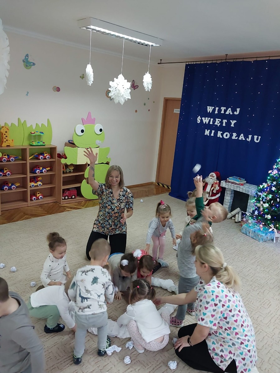 -zabawy kulkami śnieżnymi zrobionymi z papieru.