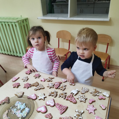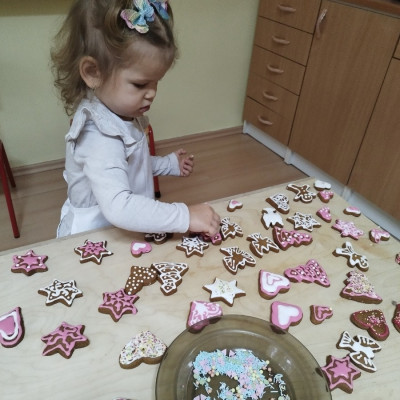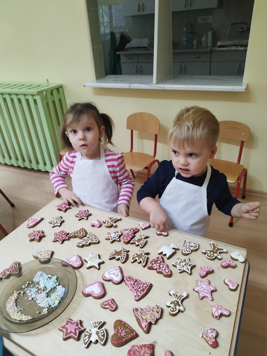Zdjęcie przedstawia dzieci dekorujące pierniki