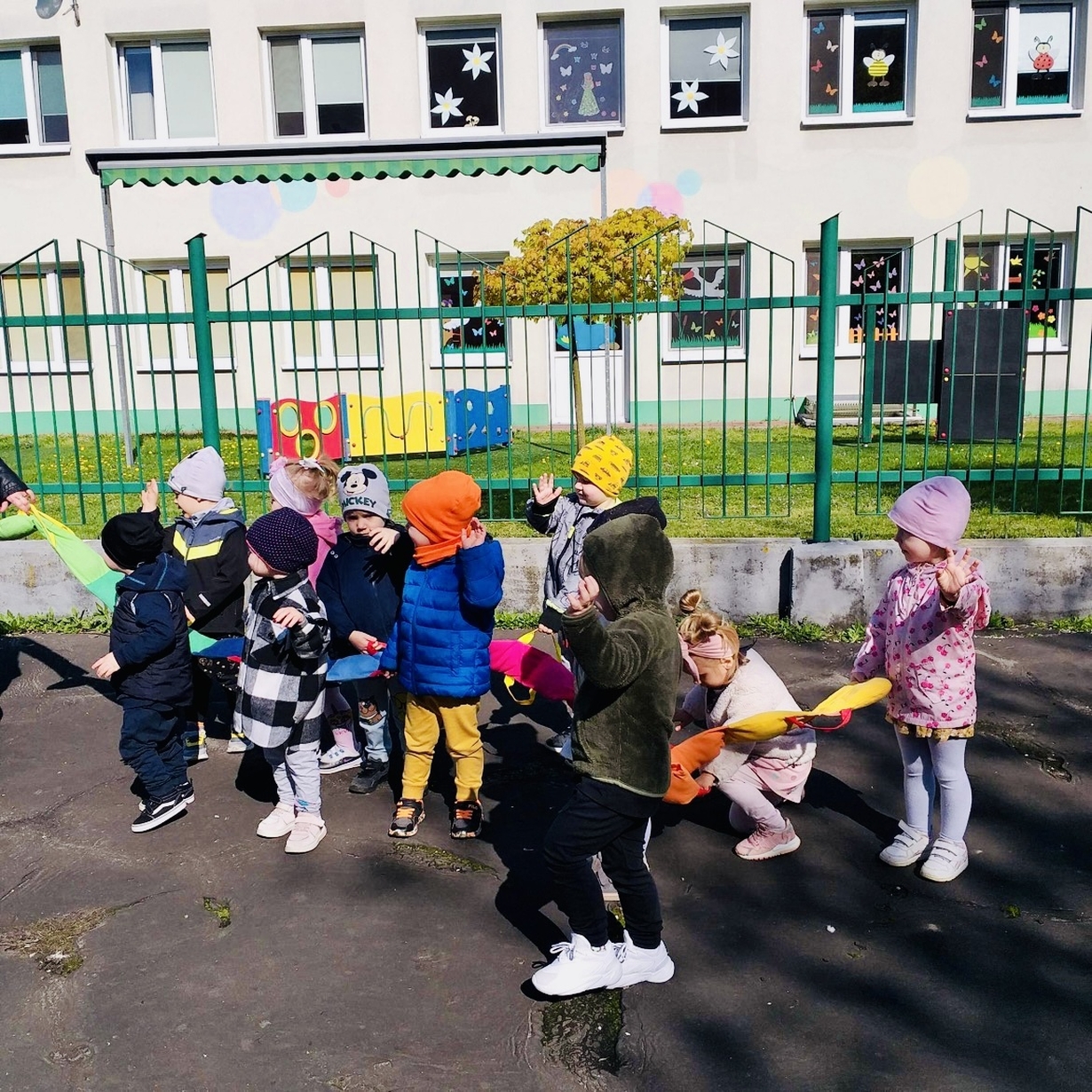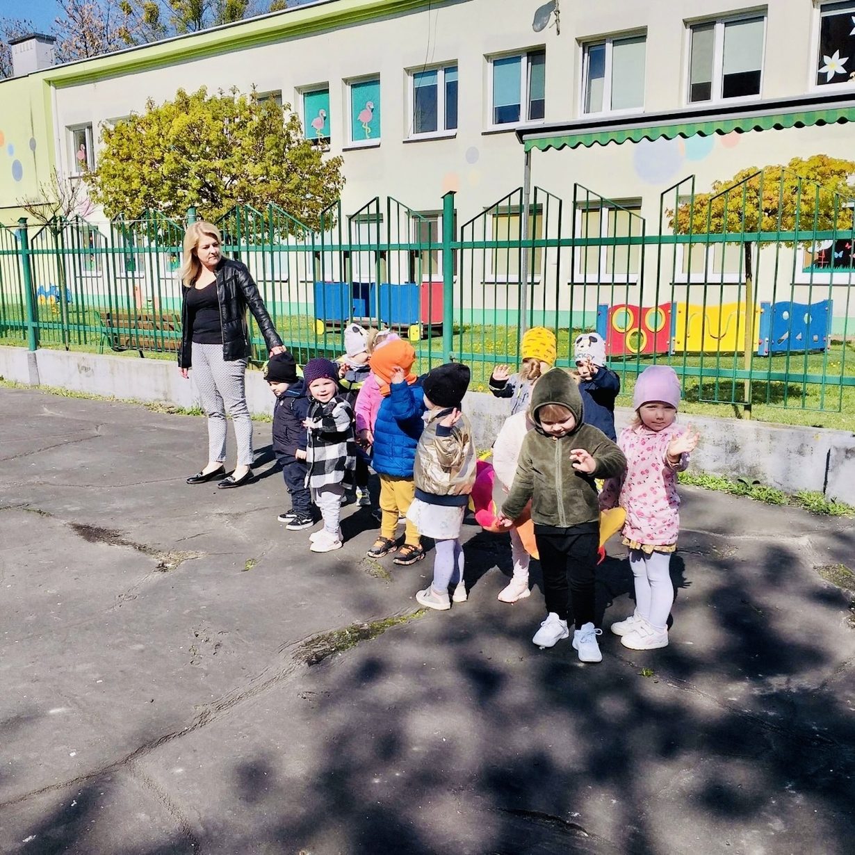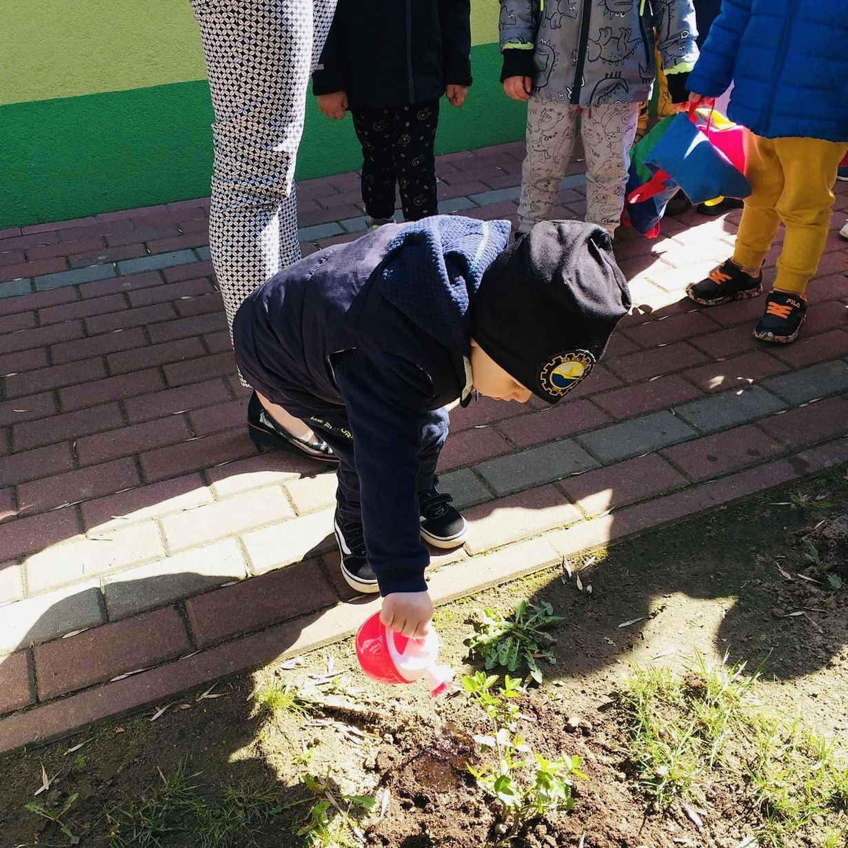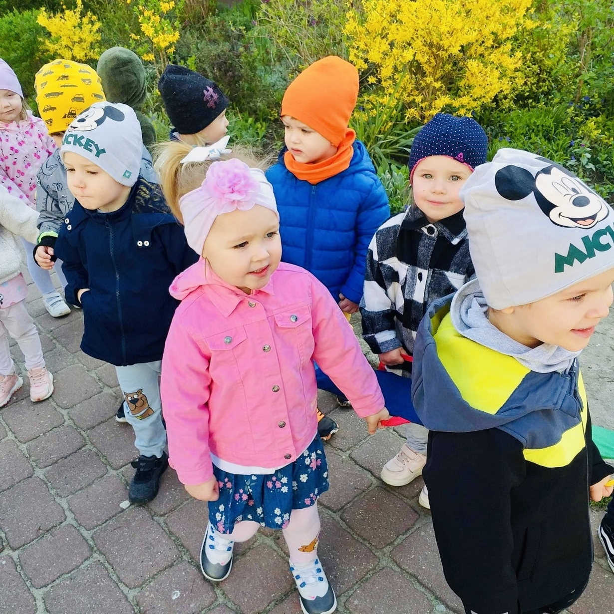 Korzystając z pięknej pogody Motylki ?wyruszyły na spacer w poszukiwaniu wiosny . Dzieciaczki w towarzystwie węża dzielnie wędrowały . Pełni energii i w radosnym nastroju wrócili na pyszny obiad do żłobka .
