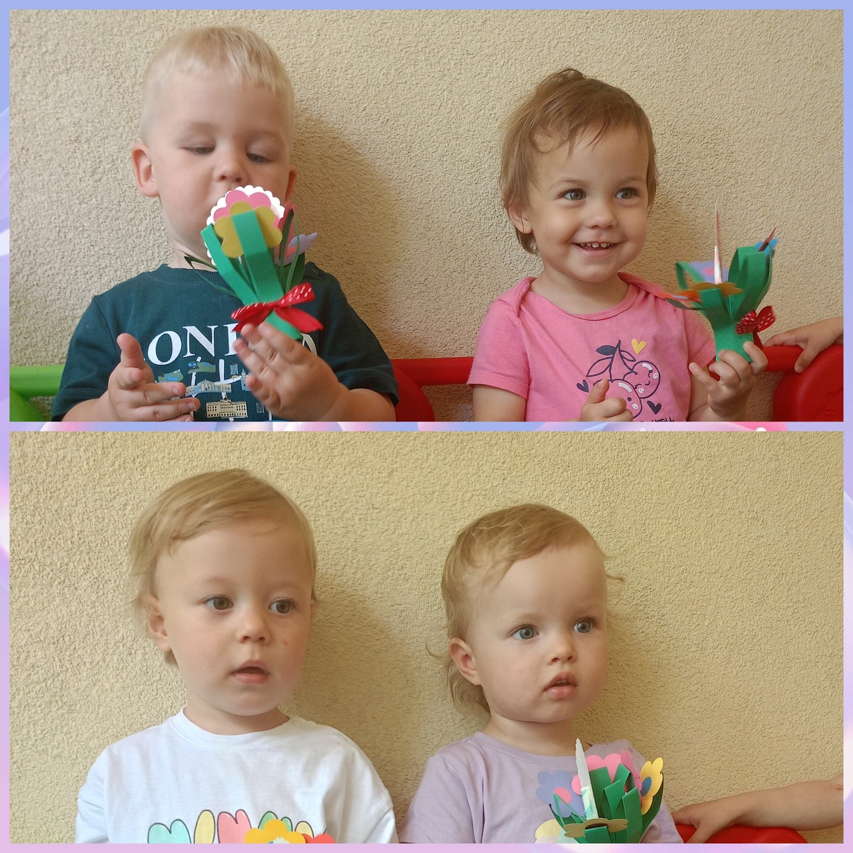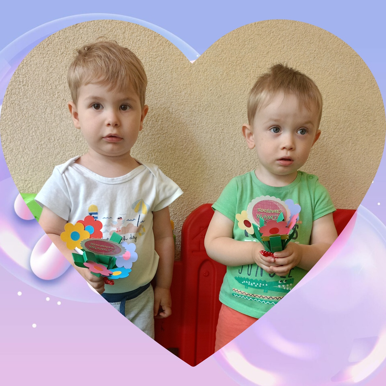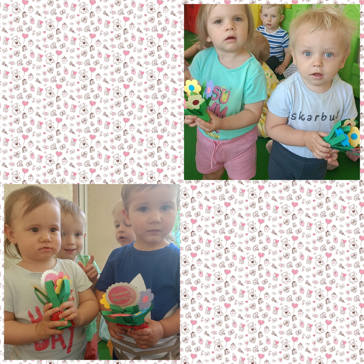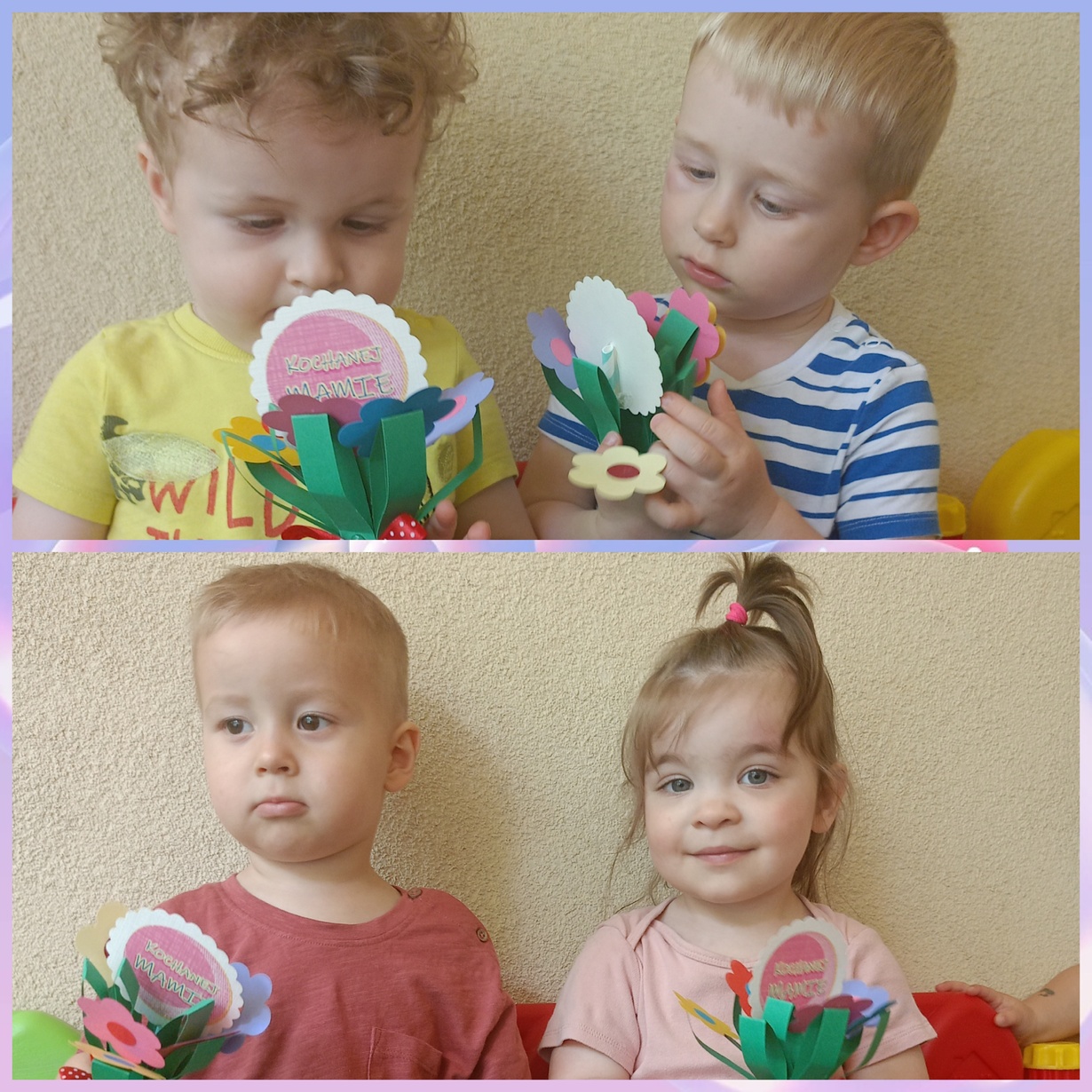 Naszym Kochanym Mamusiom życzymy Wszystkiego Najlepszego ofiarując bukieciki wykonanych z pomocą naszych cioć kolorowych kwiatów.