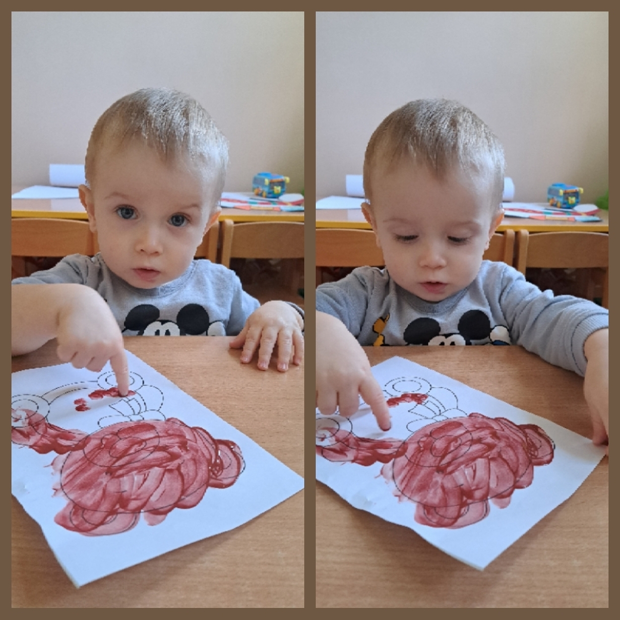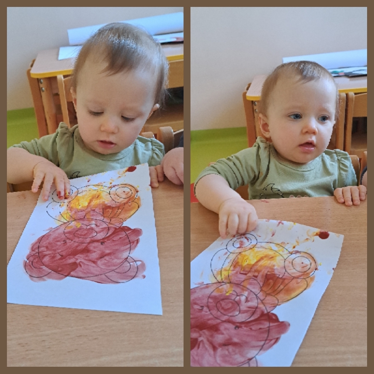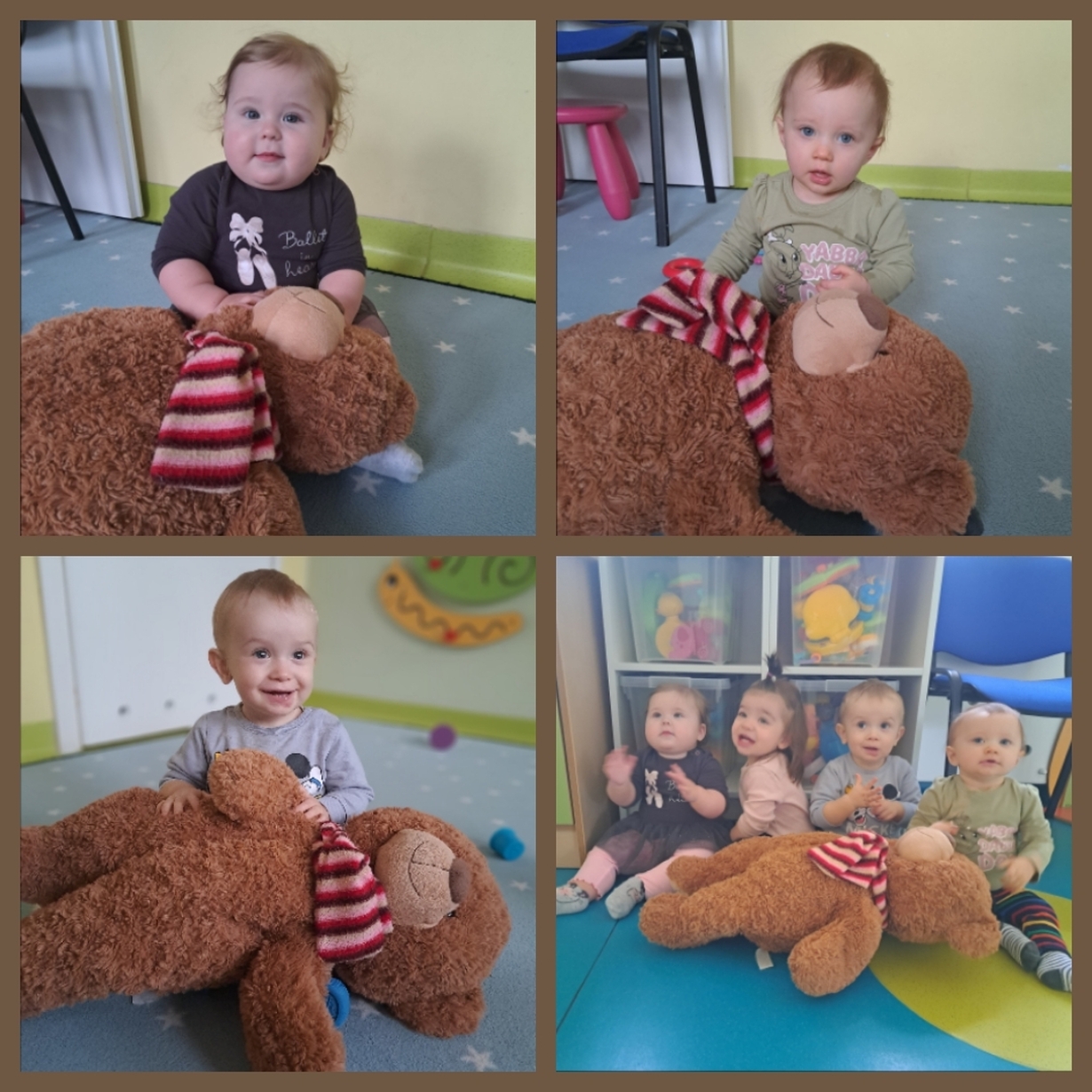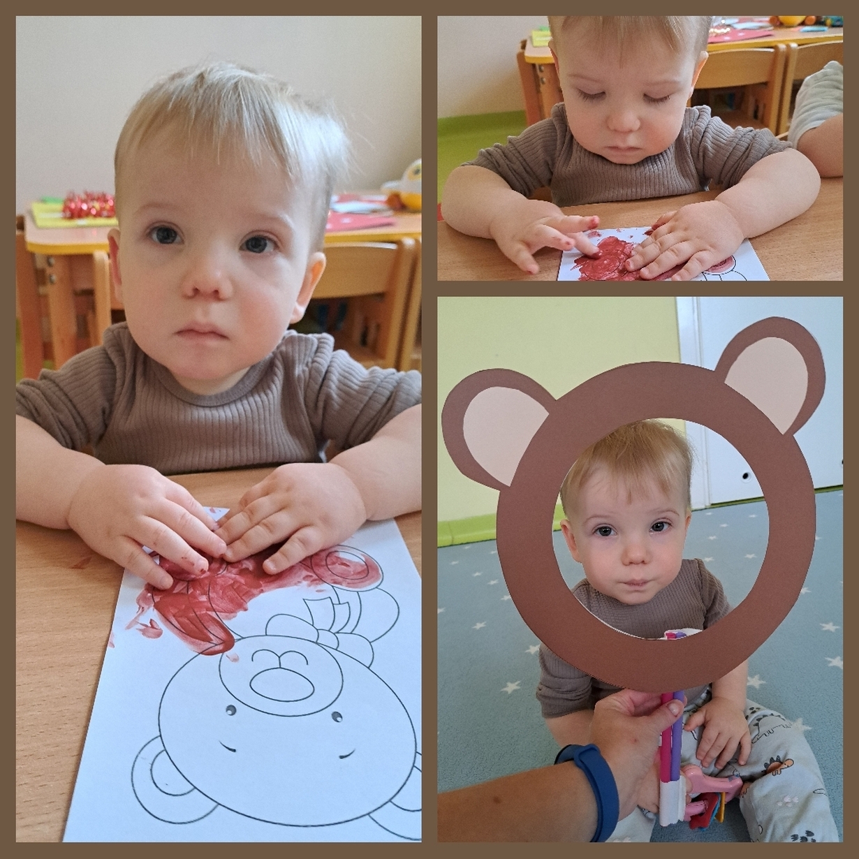Motylki również świętowały ten dzień w żłobku. Najpierw pozowały do misiowych zdjęć oraz miały okazję po raz pierwsze malować farbkami,