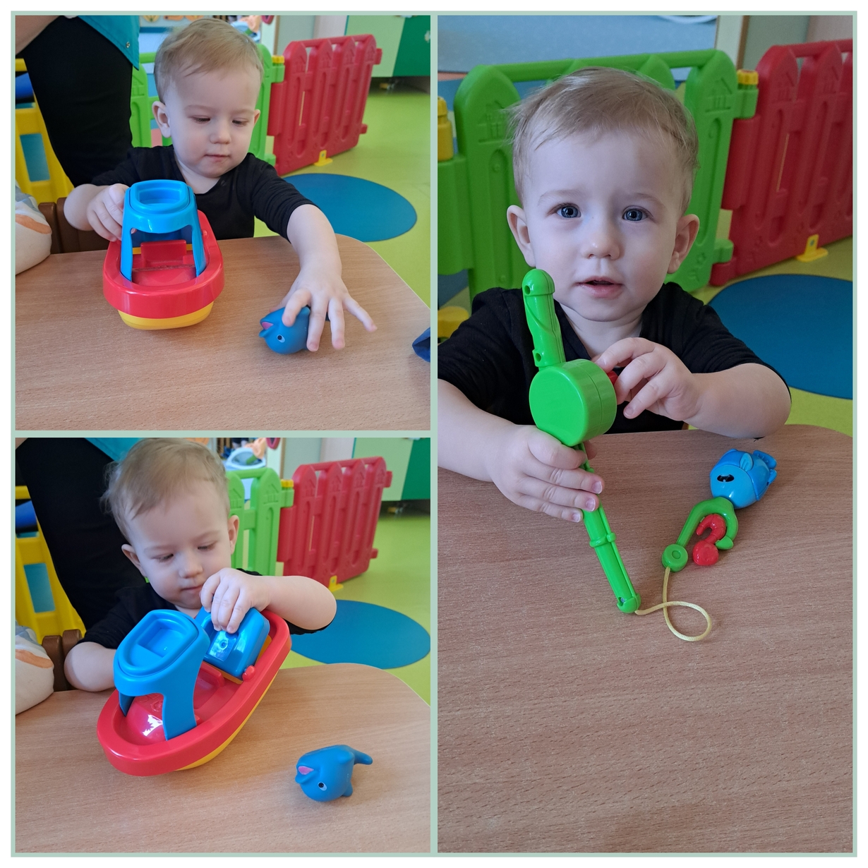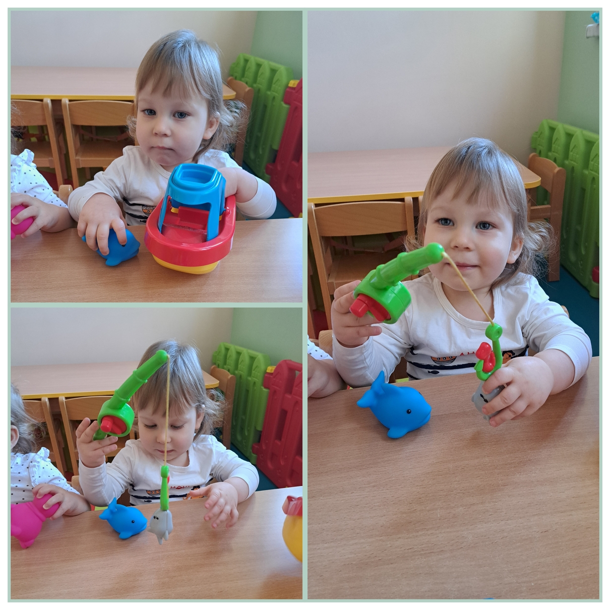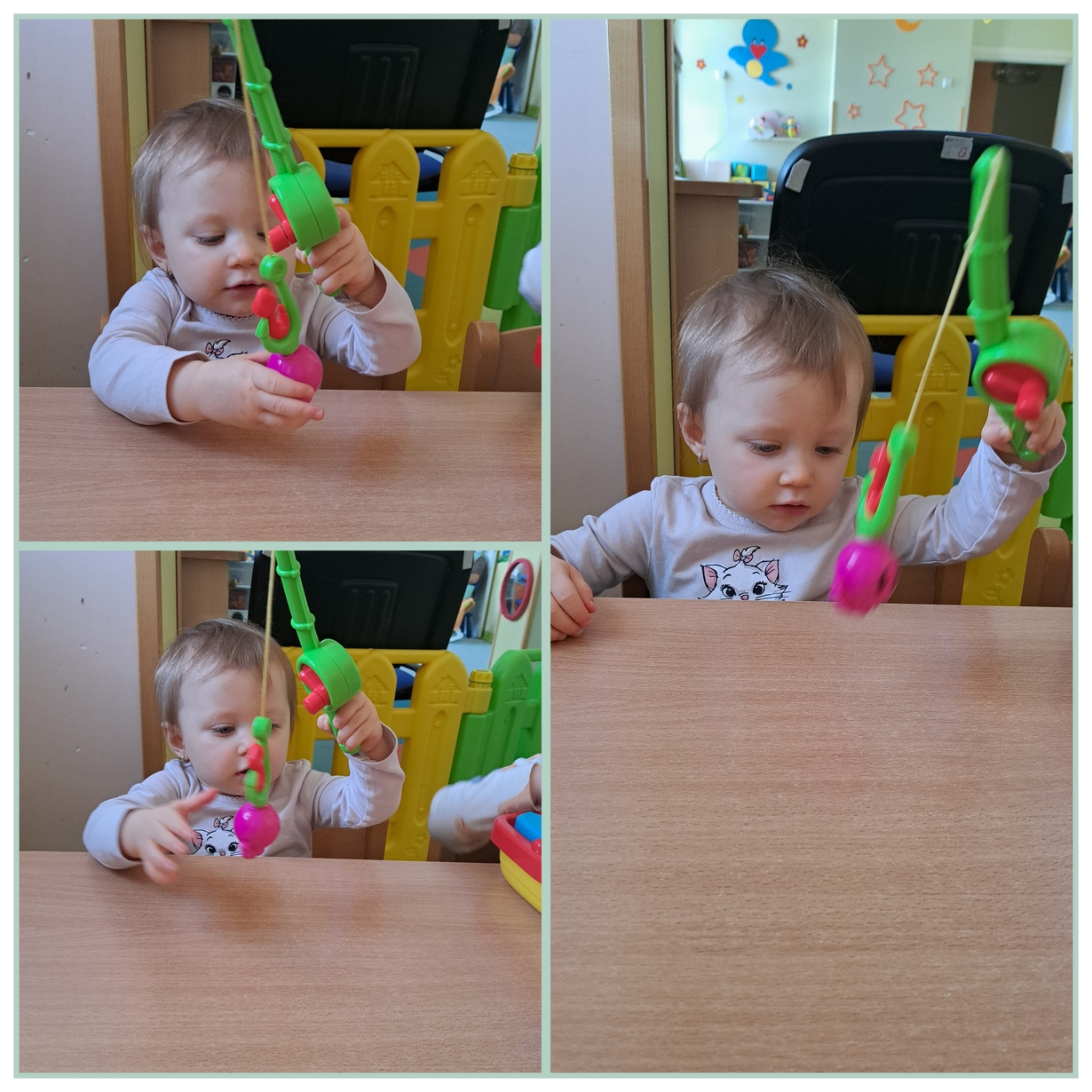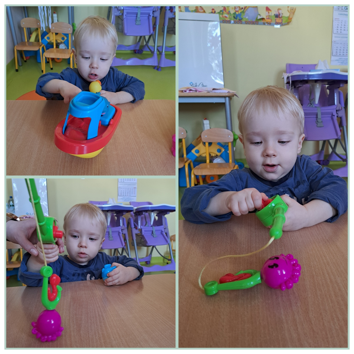 Następnie zamieniły się w wędkarzy i próbowały łowić kolorowe rybki, rozwijając tym samym koordynację wzrokowo-ruchową. Przekonały się, że złapać rybkę na wędkę to nie jest taka prosta sprawa. Starania opłaciły się i wszystkim udało się chociaż raz złowić rybkę. Zachwyt i duma z wykonanego zadania była bezcenna.