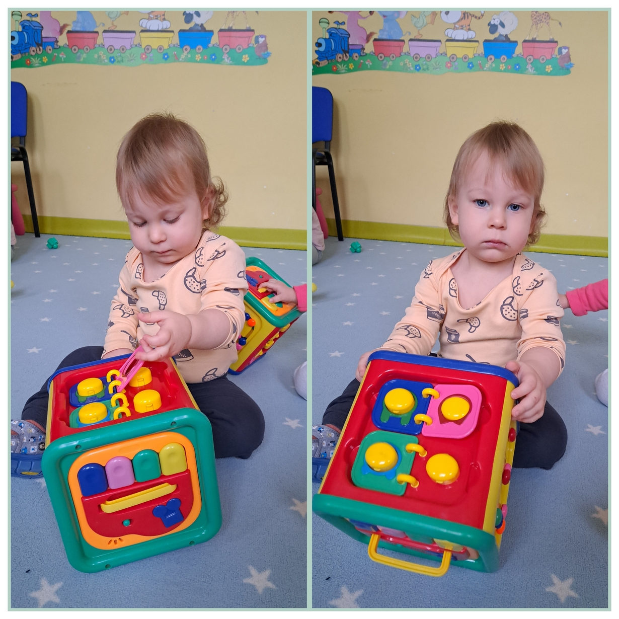 Dzisiaj na zajęciach z wykorzystaniem sorterów, kostek dydaktycznych oraz labiryntów i przeplatanek