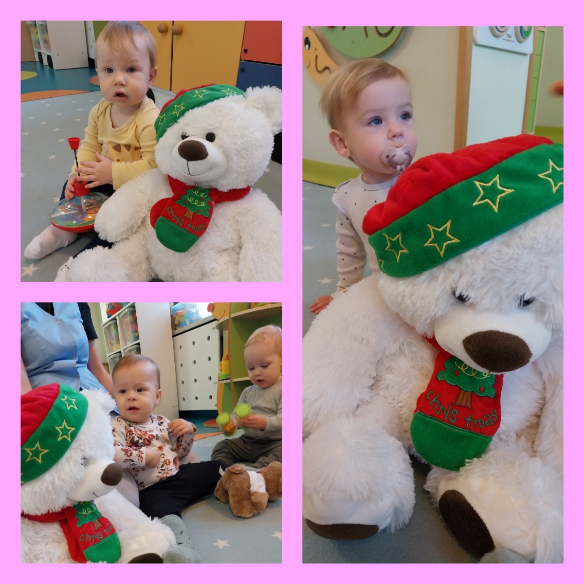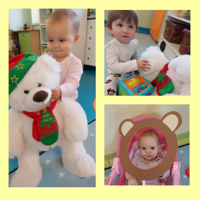 Zdjęcie przedstawia dzieci podczas zajęć w żłobku z okazji Dnia Misia