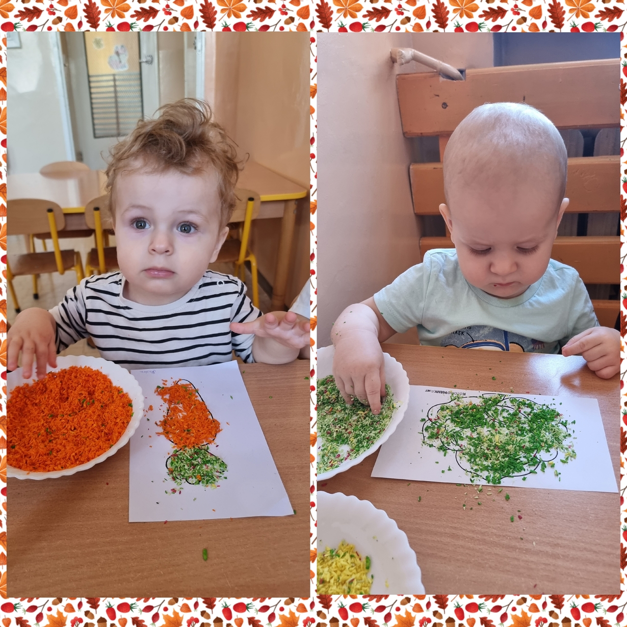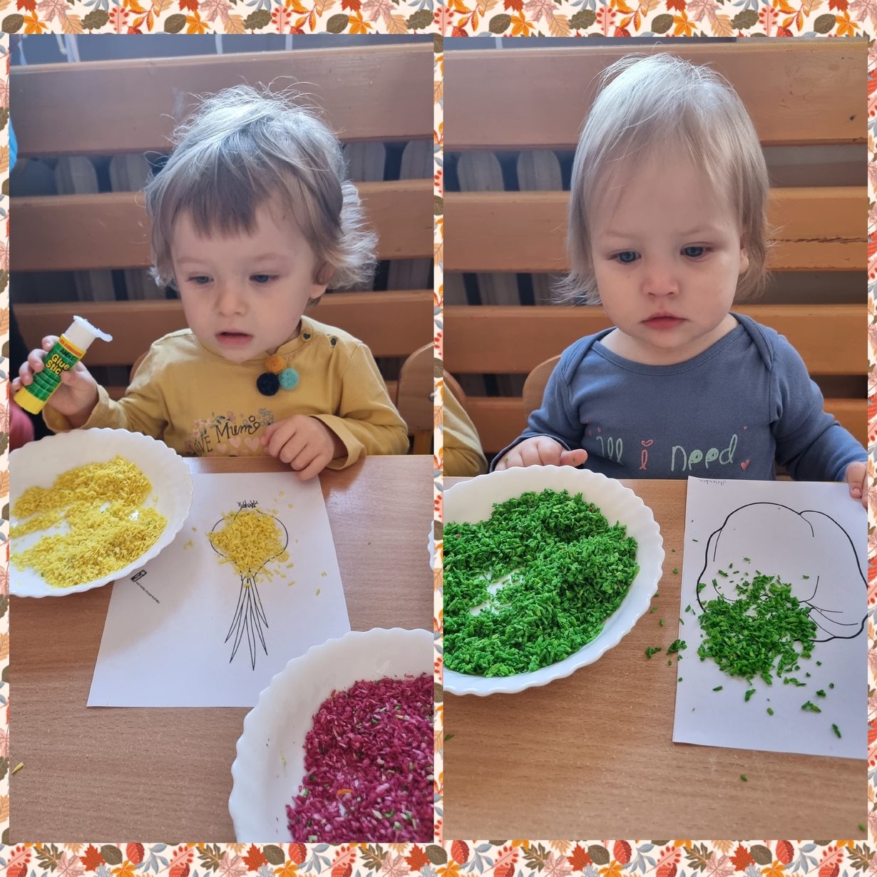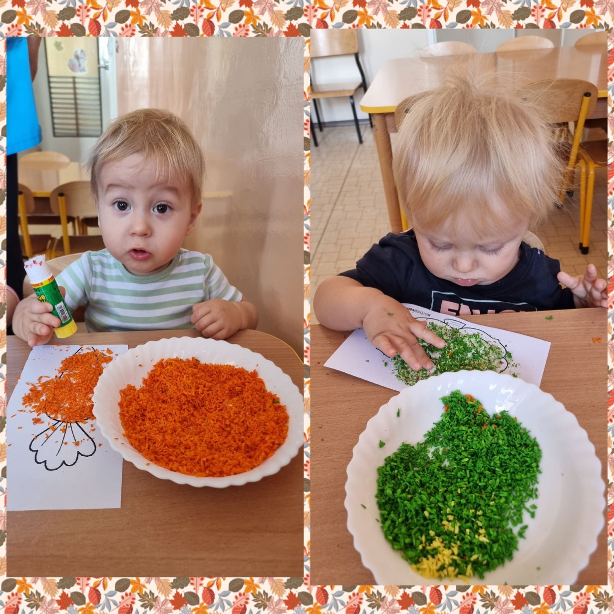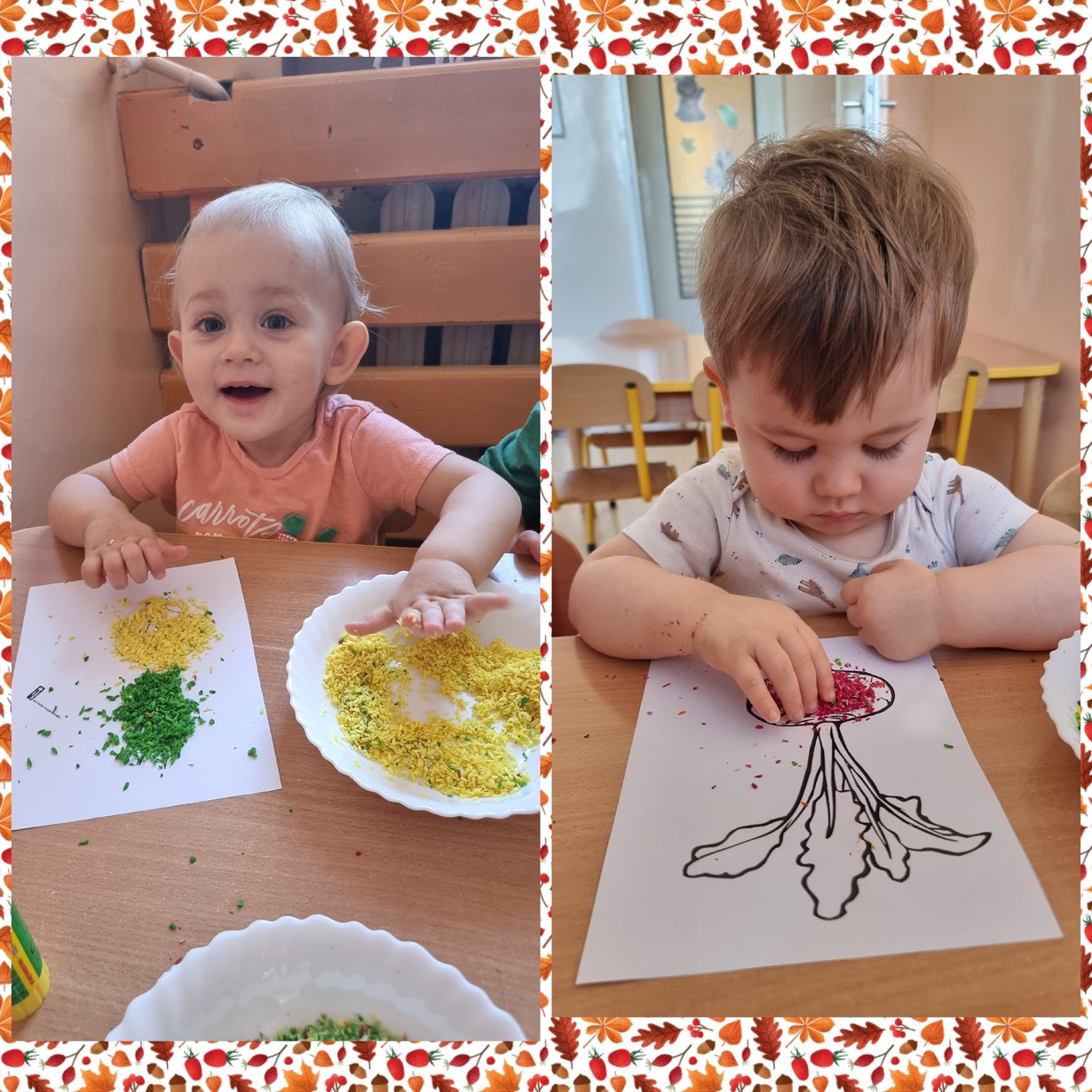 Na wydrukowane obrazki warzyw, dzieci przyklejały kolorowe wiórka kokosowe. Było smacznie i wesoło .?