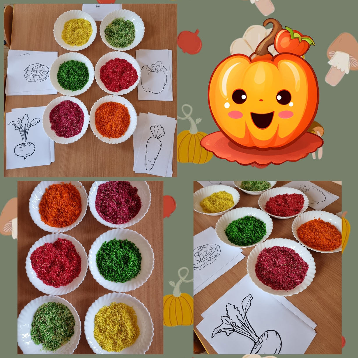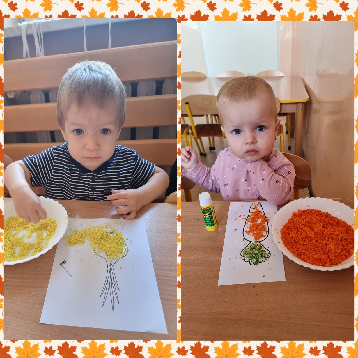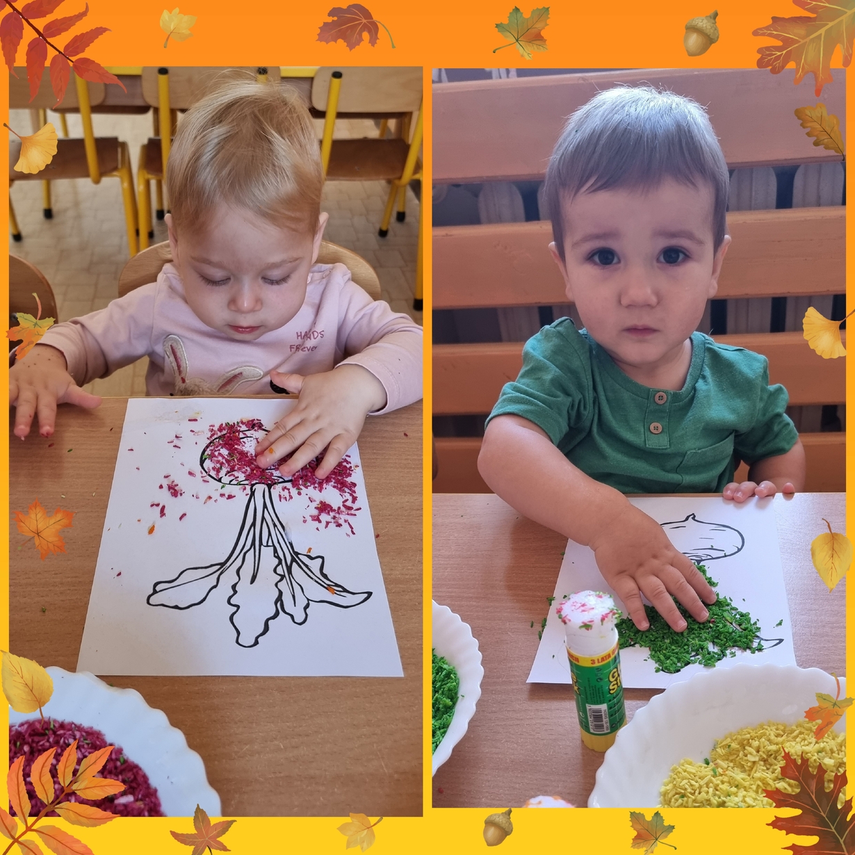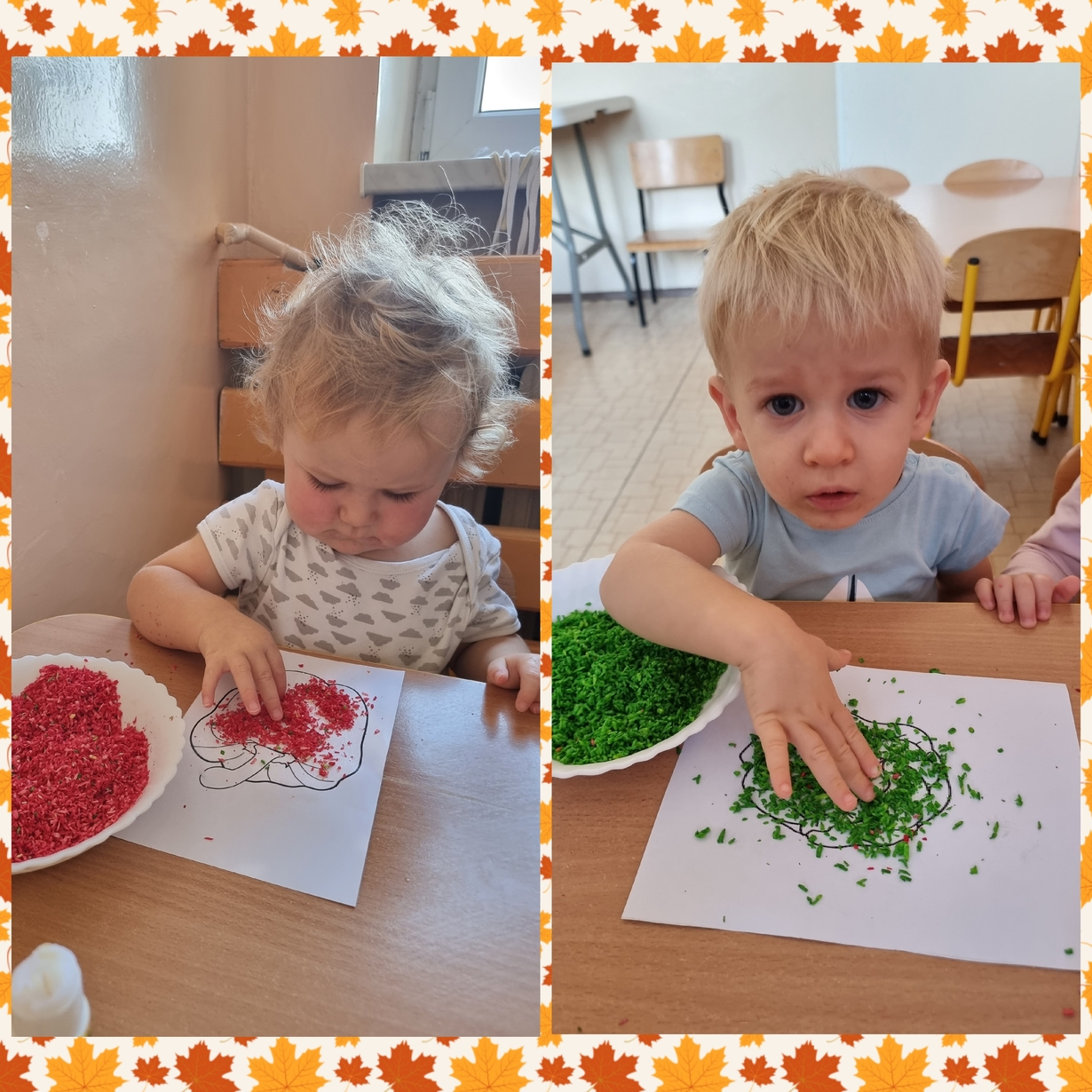 Na wydrukowane obrazki warzyw, dzieci przyklejały kolorowe wiórka kokosowe. Było smacznie i wesoło .?