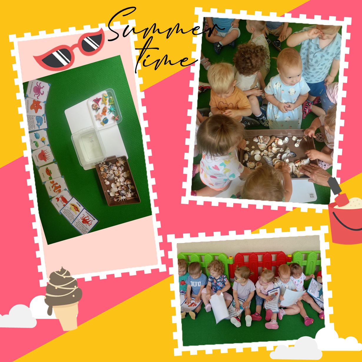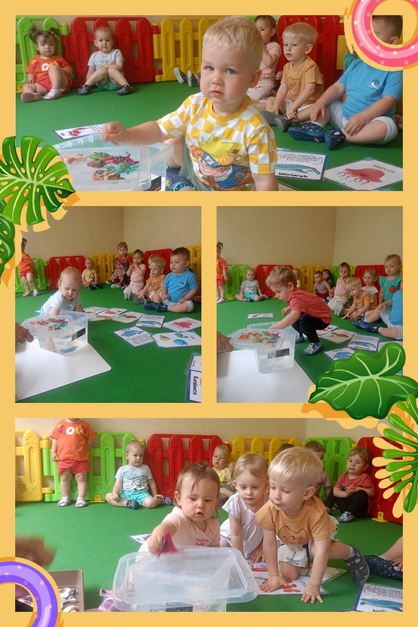 Nasze Pszczółki nie zapomniały o obchodzonym dziś Dniu Oceanów i wyruszyły w niezwykłą podróż po podwodnym świecie . Dzięki przygotowanym przez Ciocie kolorowym planszom, zapoznały się z wyglądem mieszkańców podwodnej krainy. Miały okazję wziąć do ręki prawdziwe muszelki, mające różne kształty oraz pobawić się małymi rybkami, wykonanymi z modeliny.