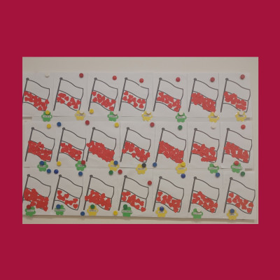 Pierwszy i Trzeci mają to  obchody Świąt Narodowych - Święto Flagi oraz Konstytucji 3 Maja. Budowanie świadomości narodowej oraz przywiązania do Ojczyzny jest ważne na każdym etapie życia, tak więc i nasze małe Pszczółki postanowiły uczcić te ważne dla Polski dni. Z tej okazji wykonaliśmy prace plastyczne, przedstawiające symbol narodowy jakim jest Flaga Polski. Piękne prace zobaczyć można na naszej tablicy, jak również w galerii zdjęć.