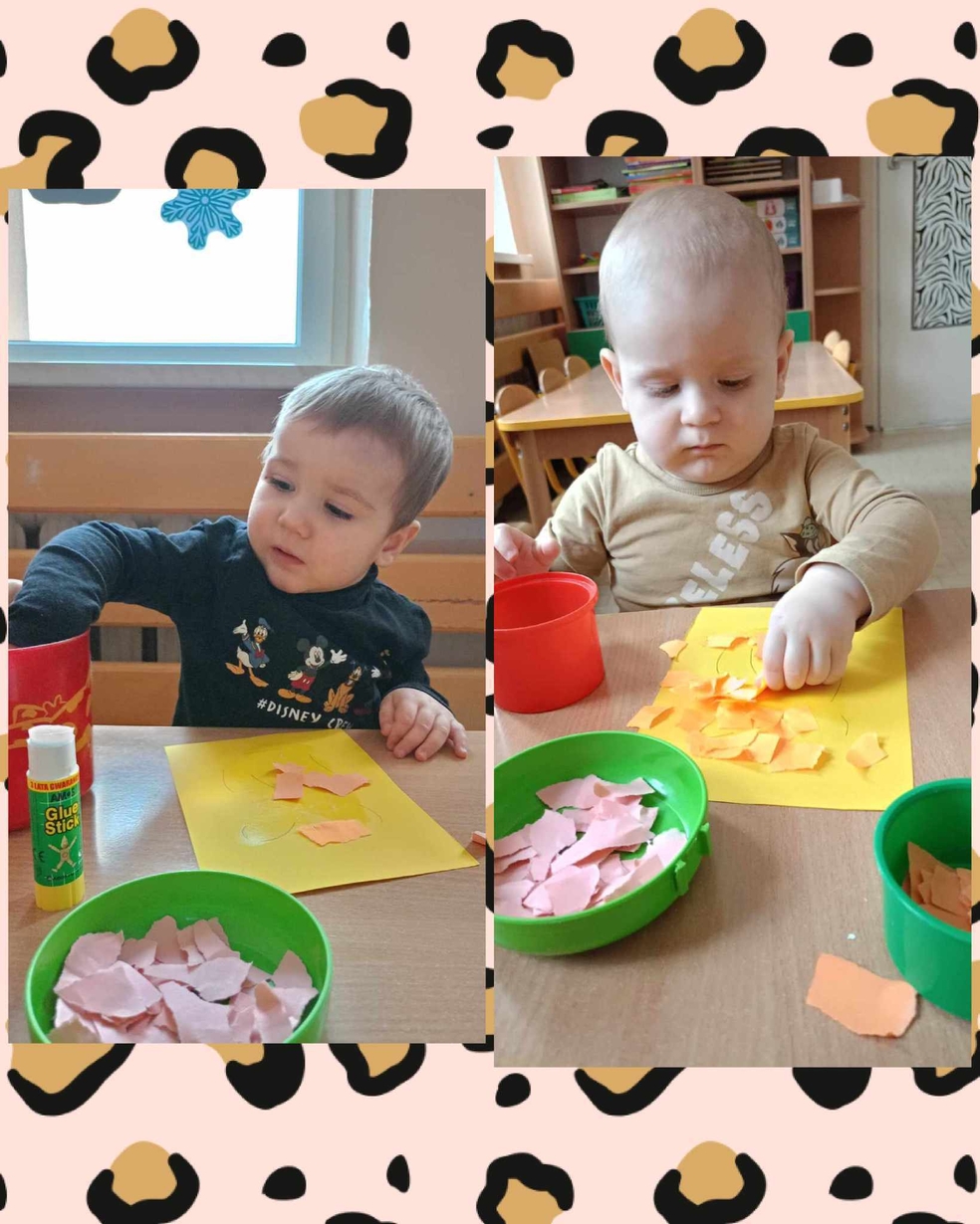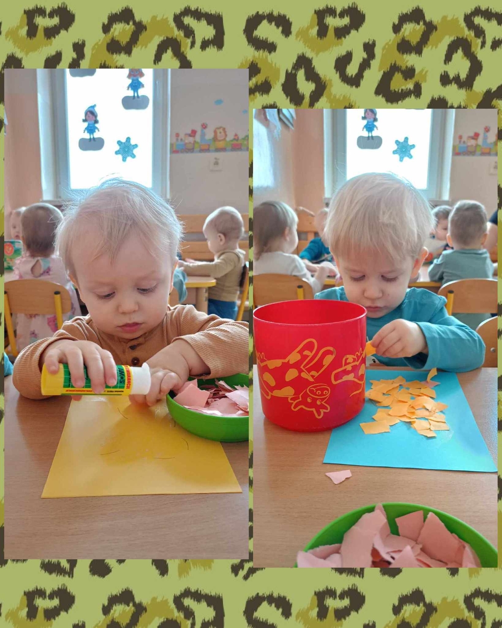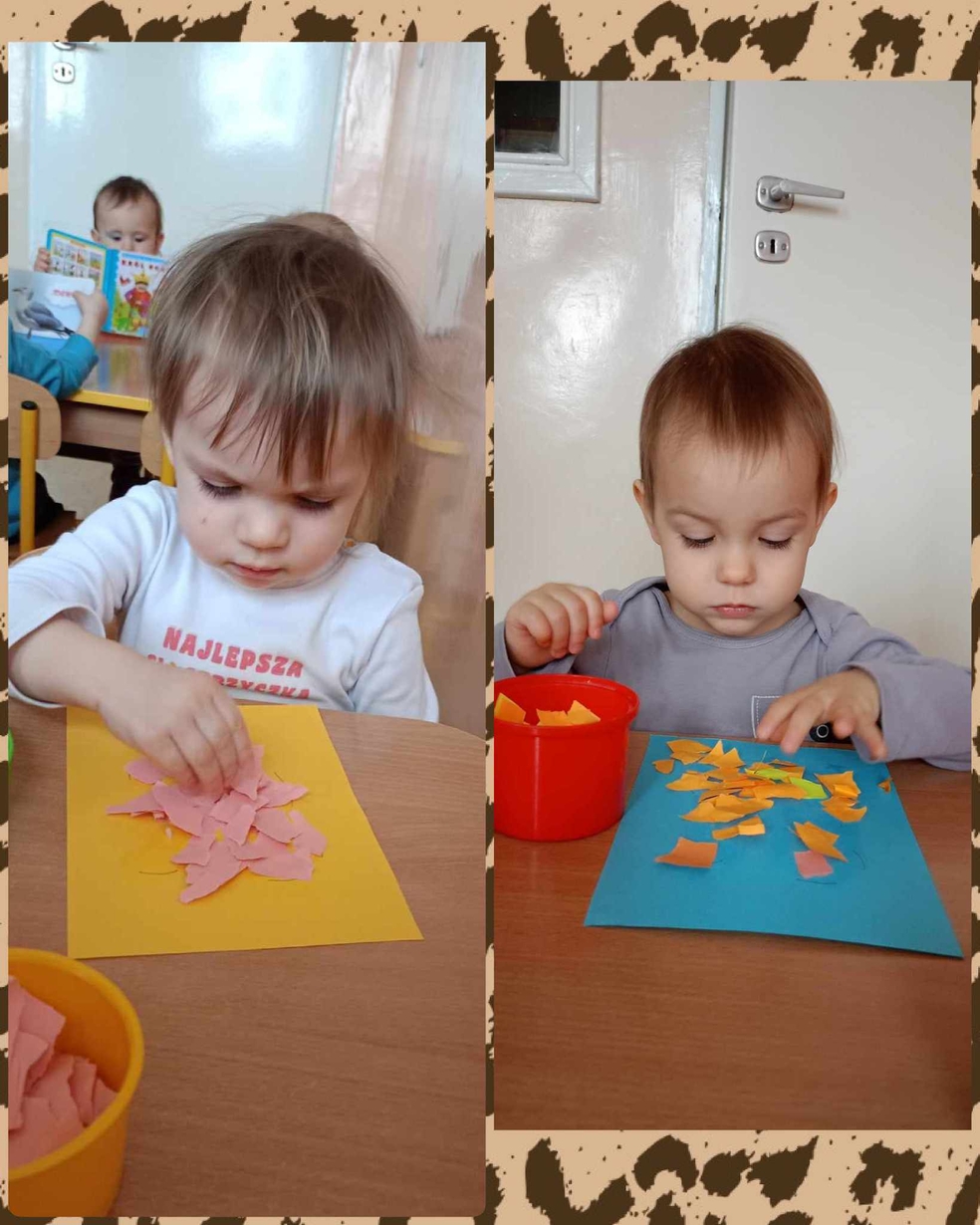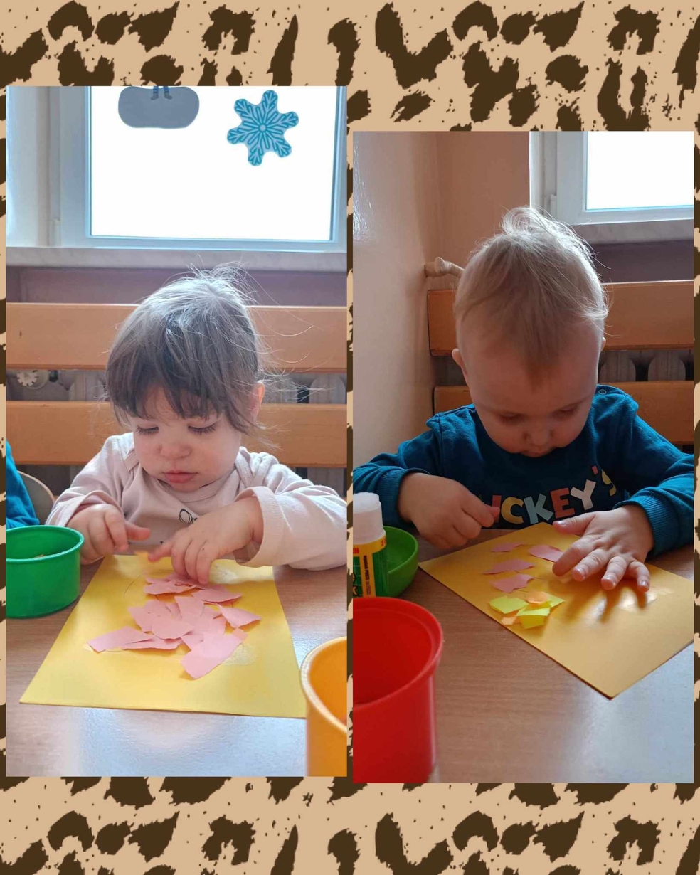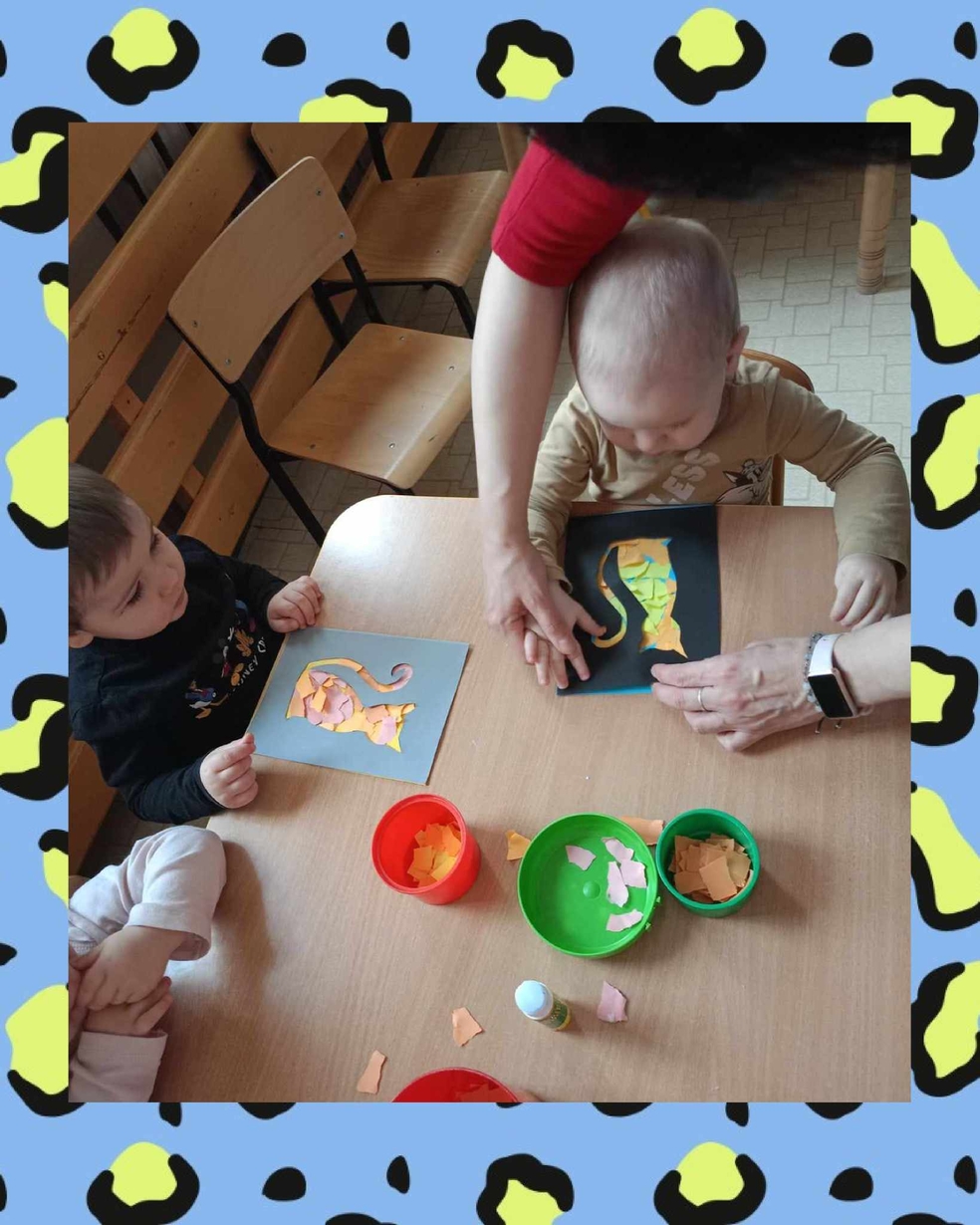 Na koniec Pszczółki zrobiły z pomocą Cioć prace plastyczne przedstawiające marmurkowego kotka z wydzieranki.