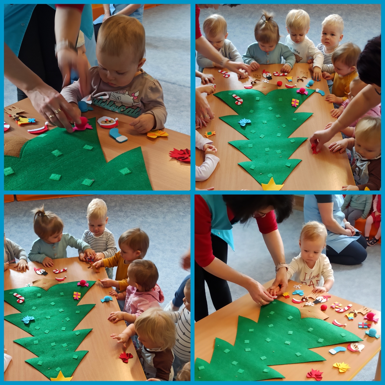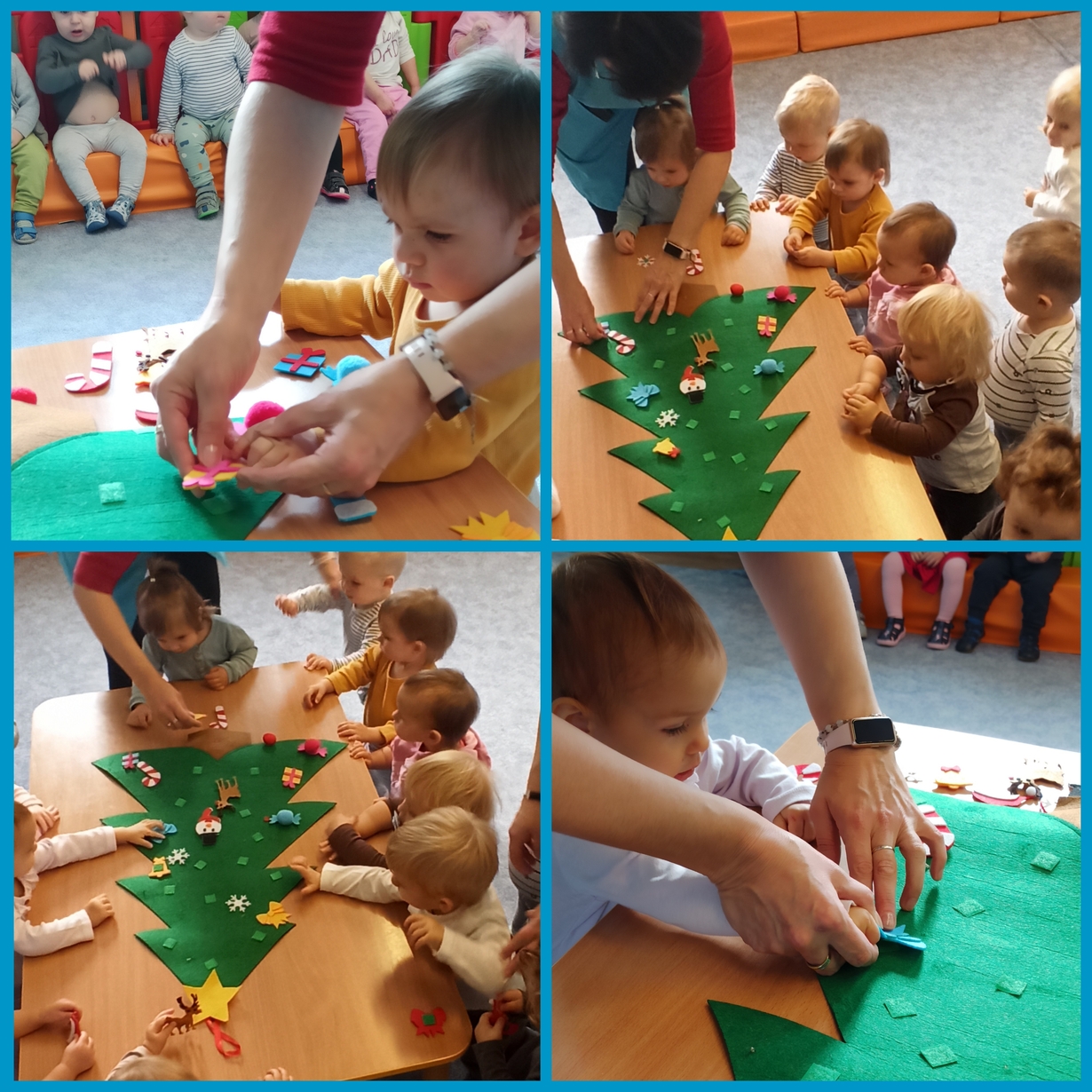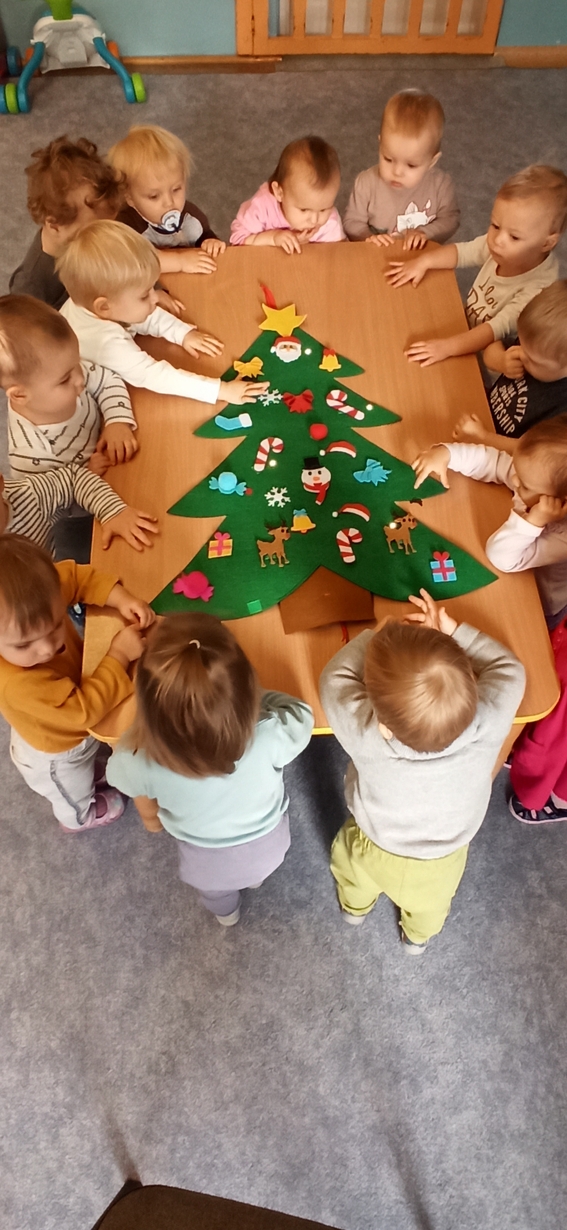 Dziś Pszczółki z wielkim zapałem przystąpiły do dekorowania dużej filcowej choinki.