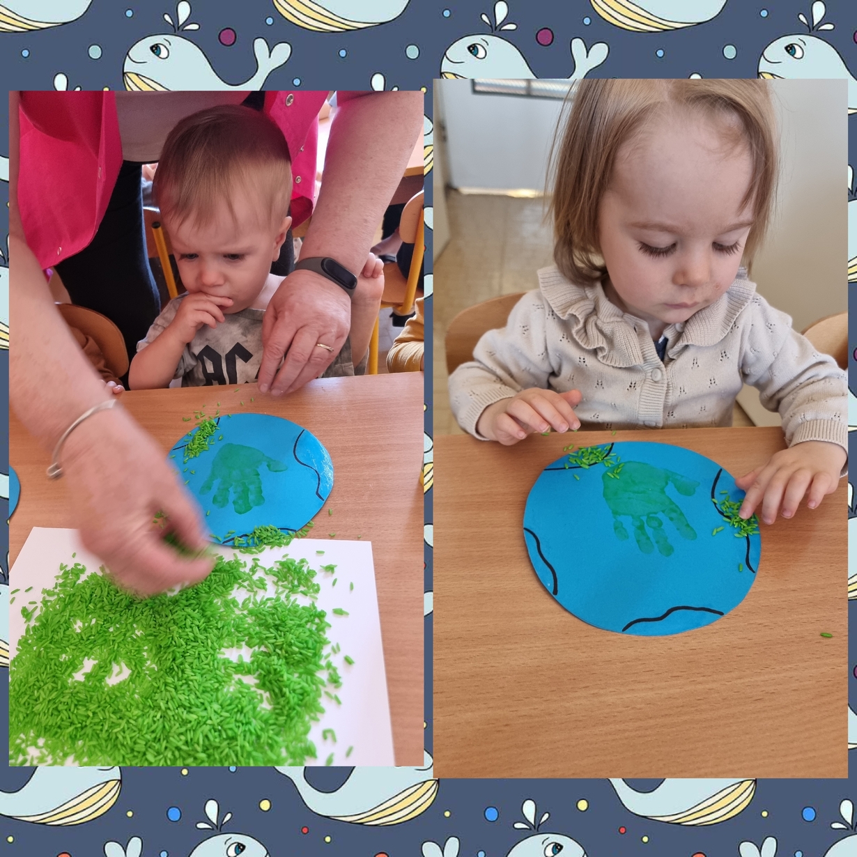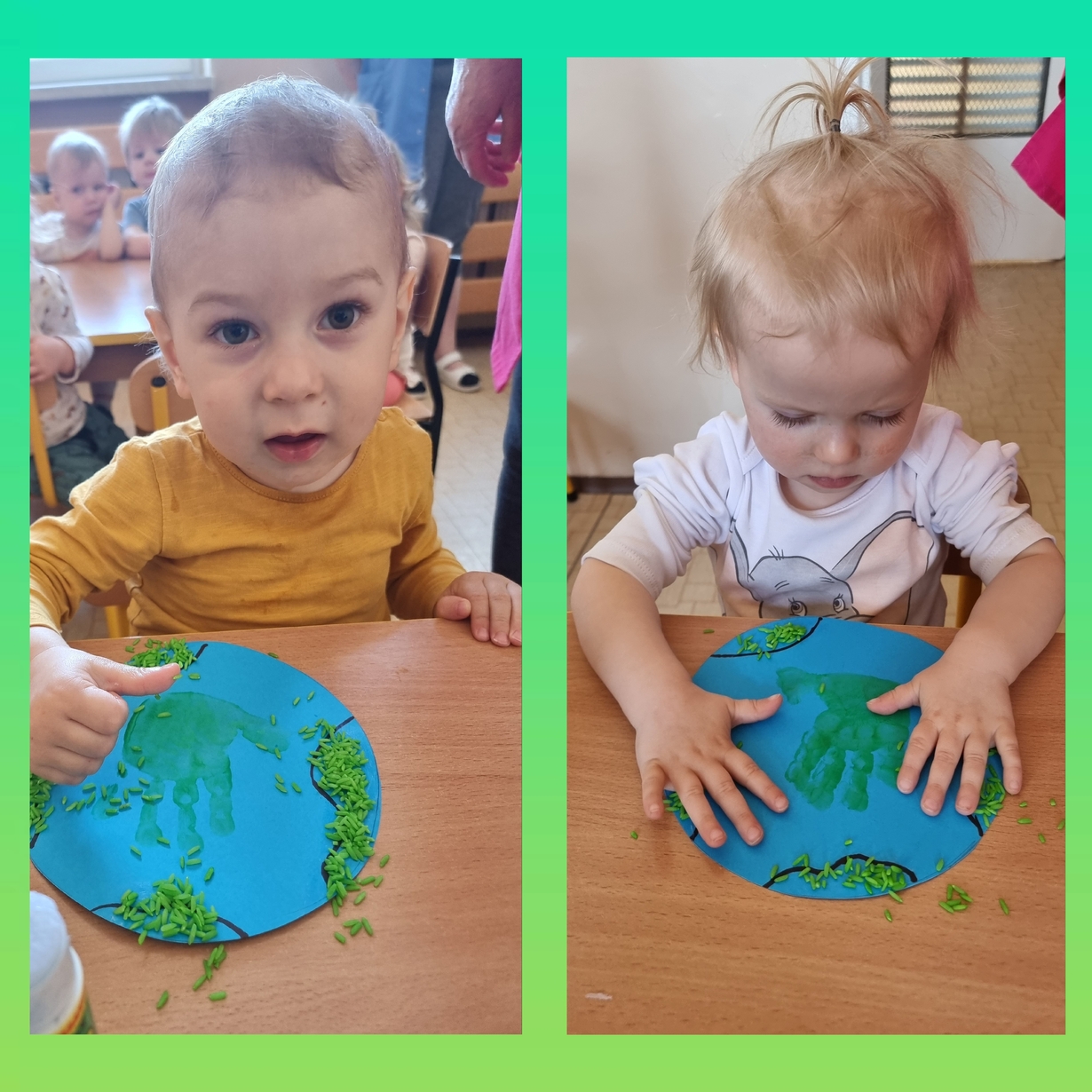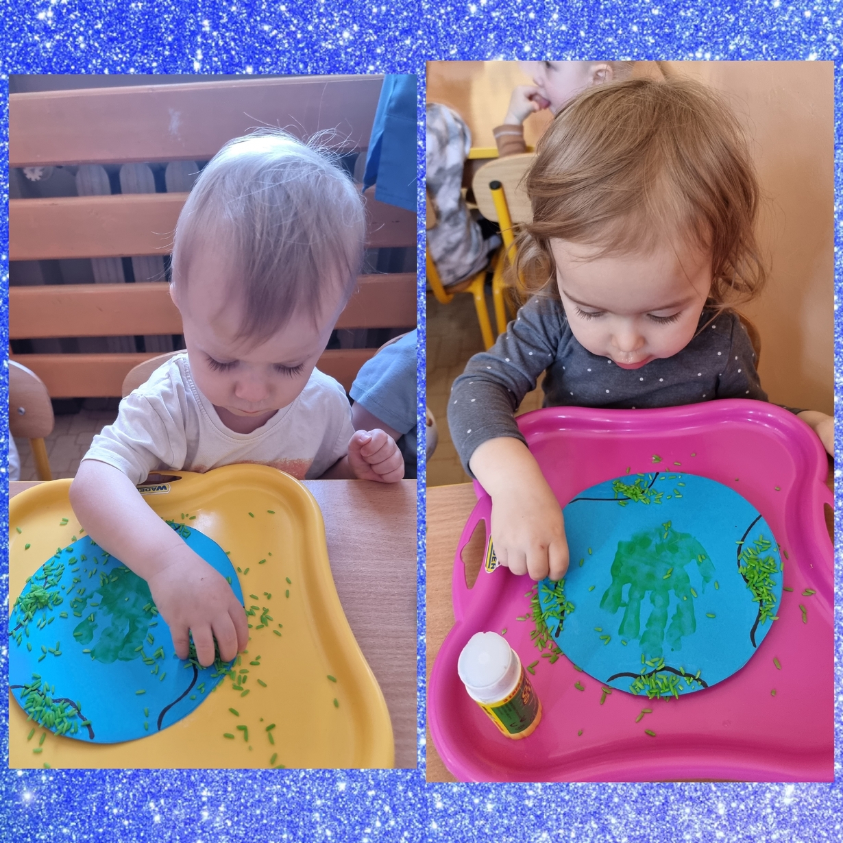 Na koniec powstały piękne prace plastyczne przedstawiające Ziemię z odbitą rączką nawiązującą do hasła