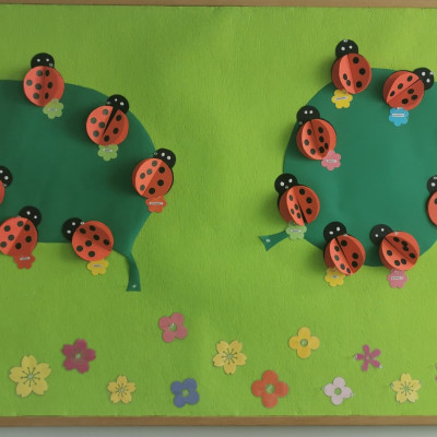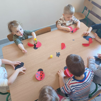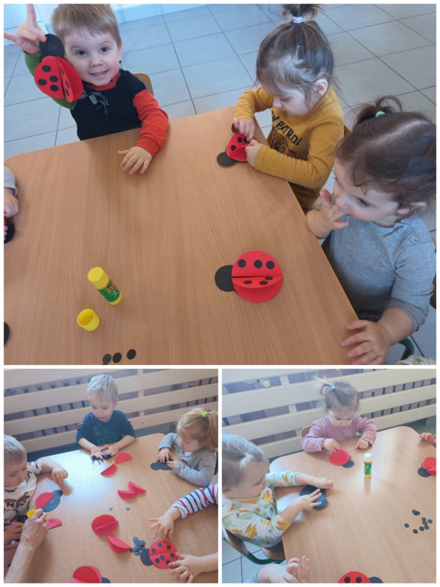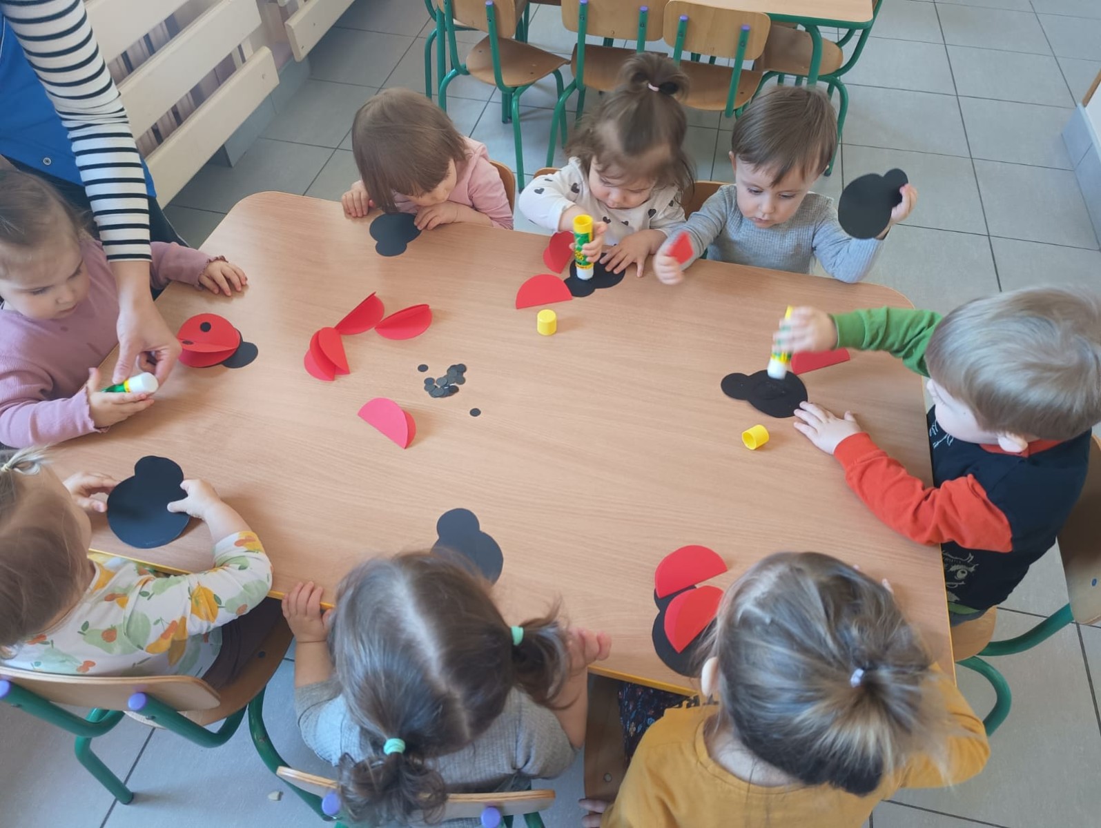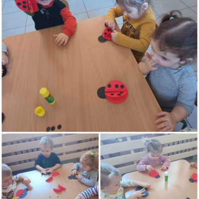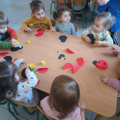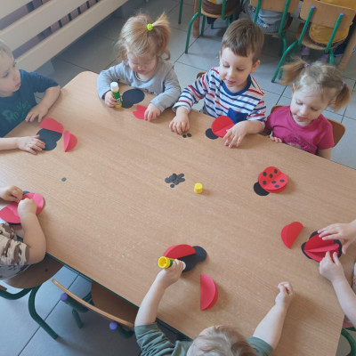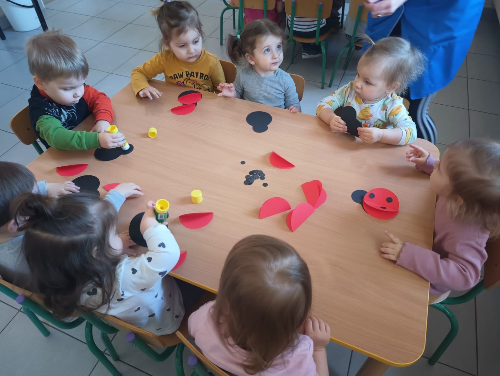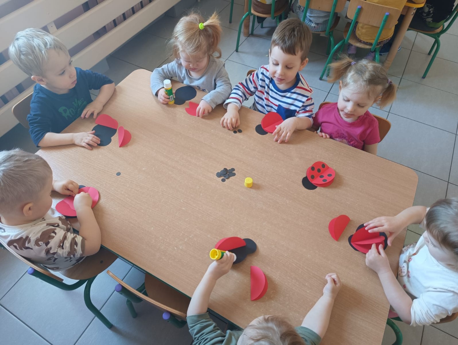 Dzisiaj w naszej grupie zrobiło się naprawdę wiosennie. Na grupową "łąkę" przyfrunęły małe biedronki, które z racji nazwy naszej grupy są dla Nas bardzo bliskie. Dzieci wykazały się swoimi zdolnościami plastycznymi i wykonały prace prezentujące te małe owady. Z gotowych elementów stworzyliśmy sylwetkę biedronki, następnie nakleiliśmy małe , czarne kropeczki. Teraz pięknie prezentują się na tablicy tworząc ciepły, wiosenny klimat. Zapraszamy do galerii zdjęć.